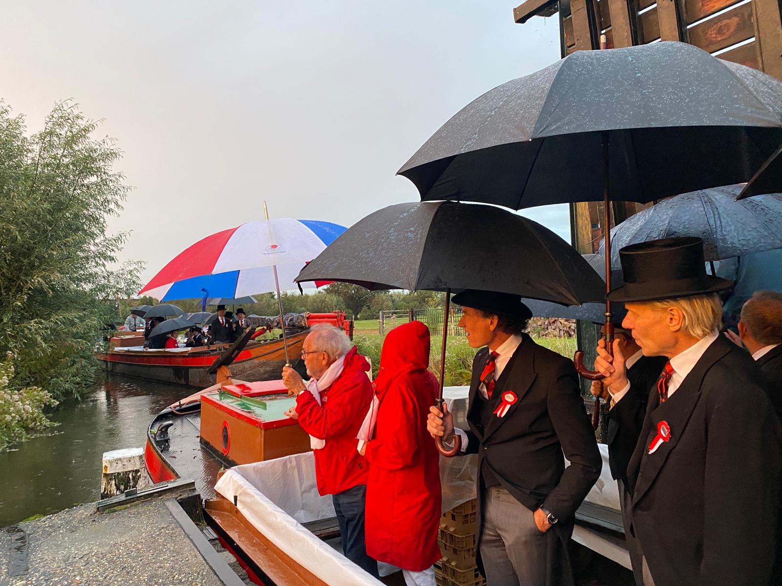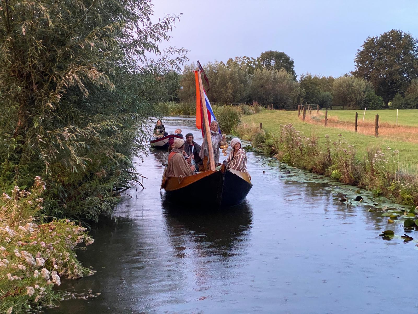 De Geuzen waren zaterdagavond na 450 jaar even terug in de Leidse regio. In 1574 verjoegen ze de Spanjaarden door het land om Leiden heen onder water te zetten. Dat moment werd gisteravond herdacht met een ludieke vaartocht door Zoeterwoude. Locoburgemeester Paul Olthof ontving uit handen van de voorzitter dan van de 3 October Vereeniging de traditionele haring en wittebrood. Aan excuus maken voor het feit dat er door de actie van de Geuzen toen weinig van Zoeterwoude over bleef moet de voorzitter echter niet denken. “Dat is aan het koninklijk huis”, grapt hij.