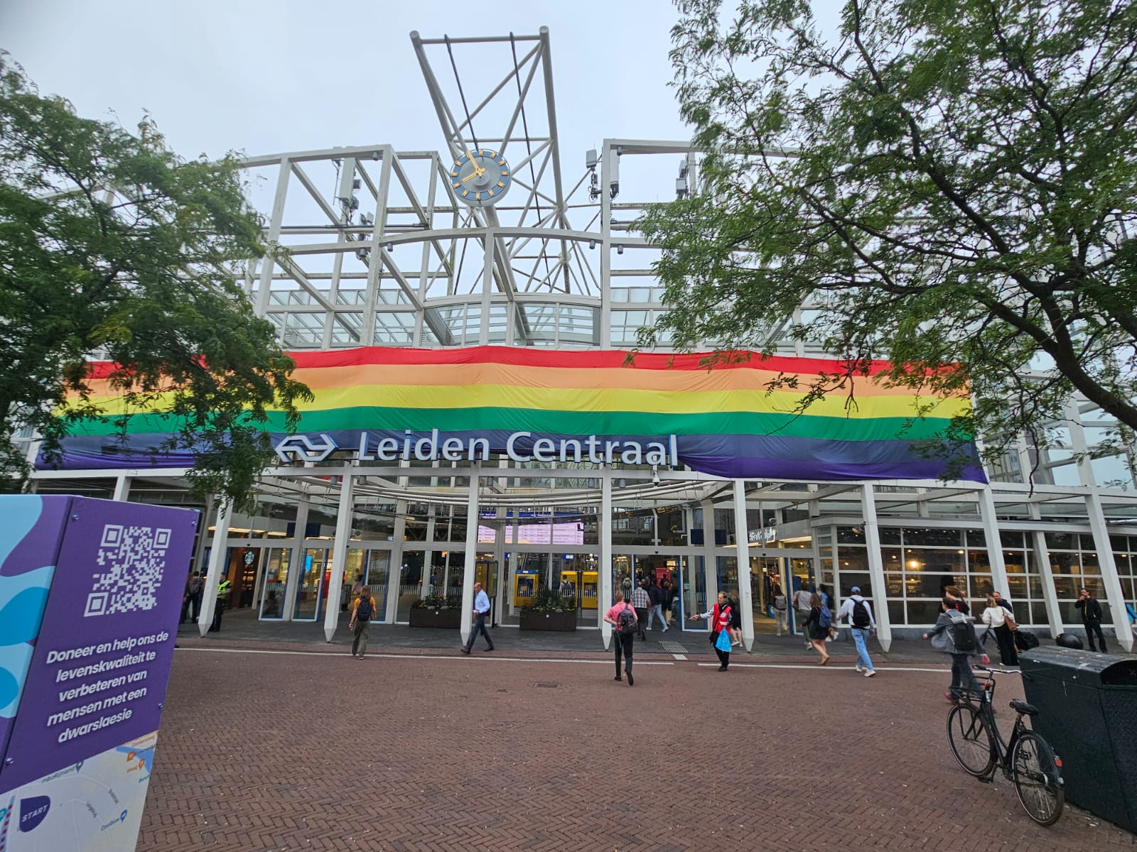 Verschillende plekken in de Sleutelstad, waaronder het centraal station, zijn versierd met de regenboogvlag. De kleurige vlag staat symbool voor diversiteit. De versieringen zijn opgehangen in de aanloop naar de Pride Leiden.