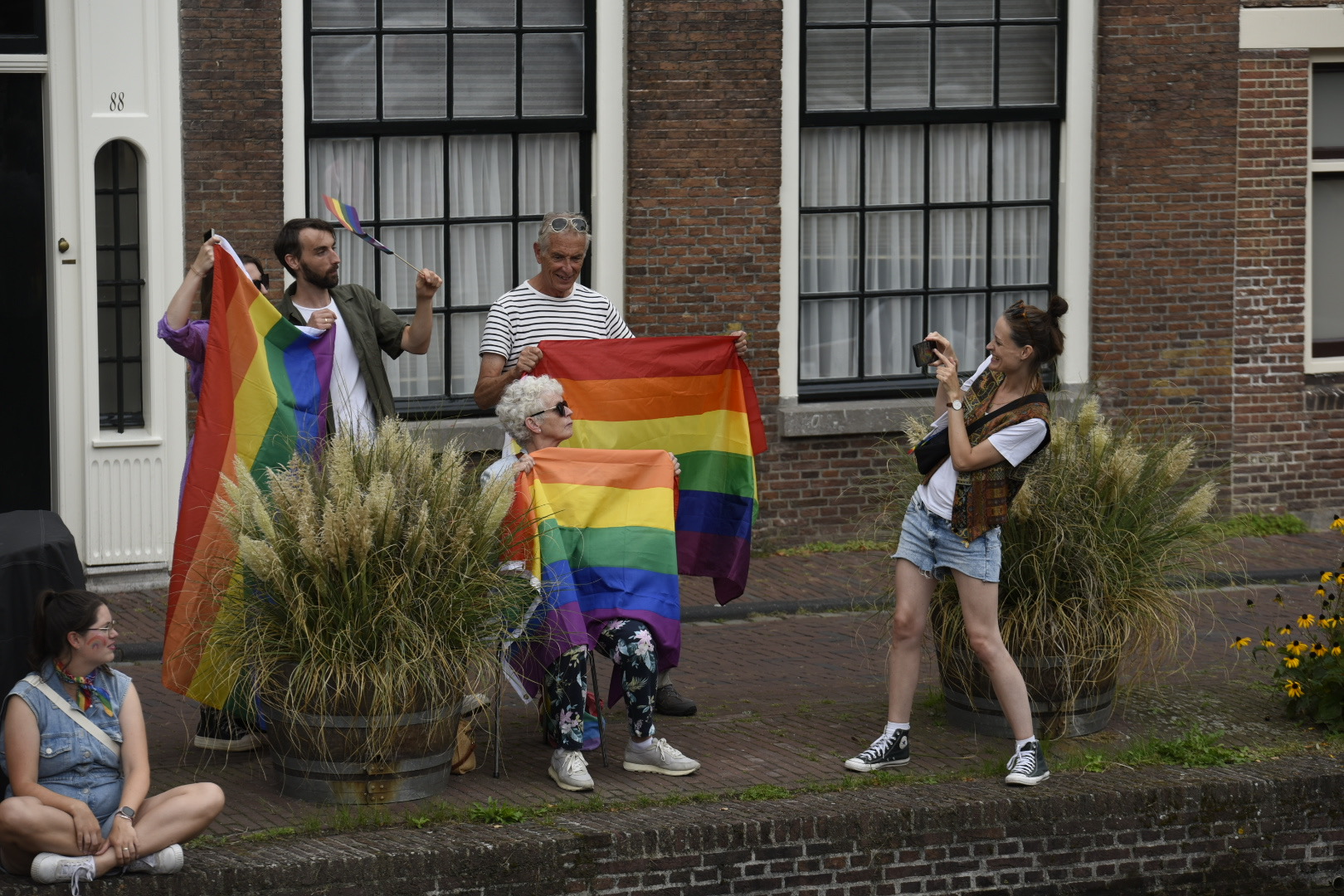 De tweede editie van de Leiden Pride trok zaterdag veel bezoekers naar de binnenstad van Leiden. Bijna 40 boten zorgden voor een feestelijke tocht door de Leidse grachten, vorig jaar deden er zo’n 20 boten mee.