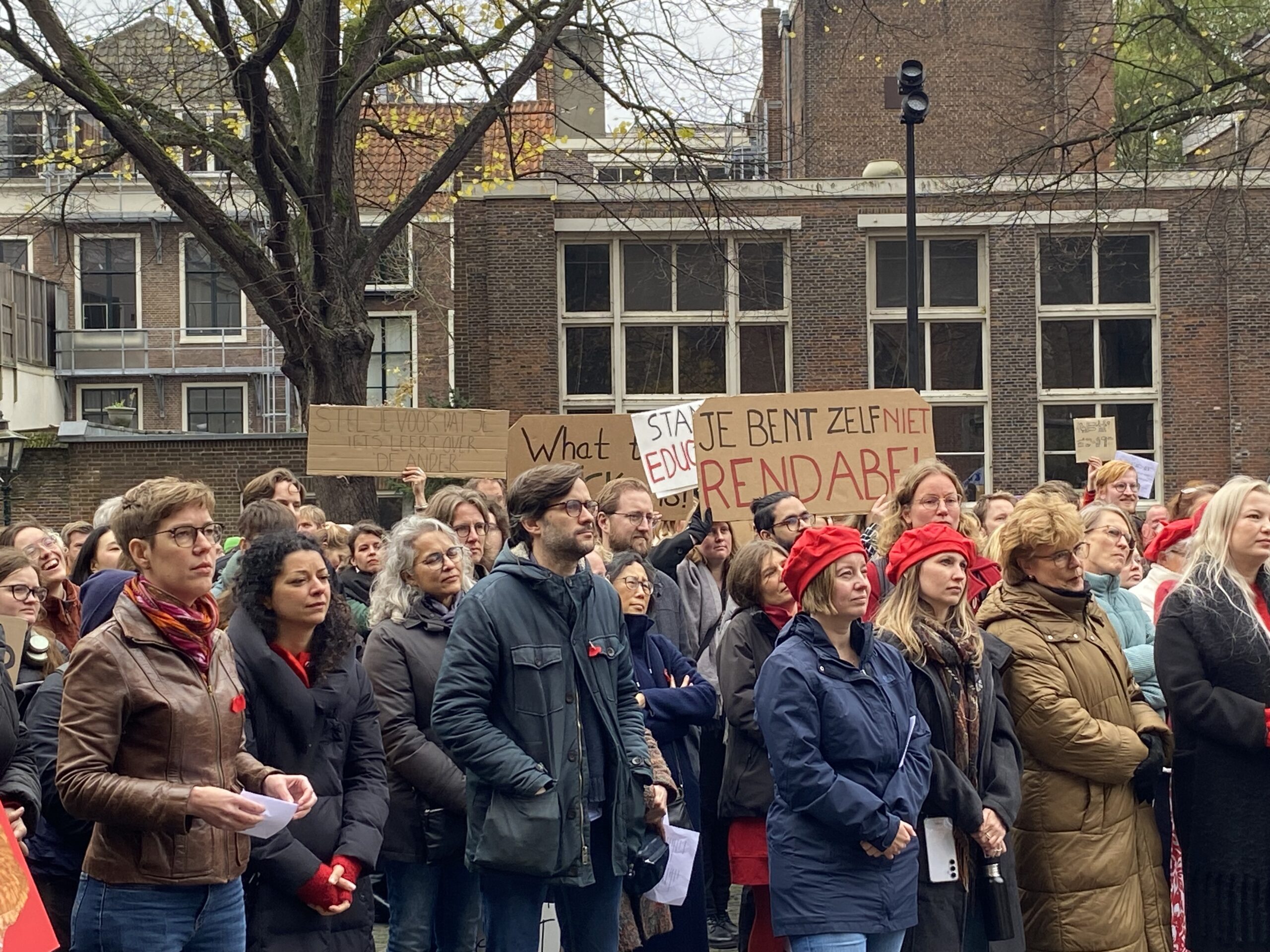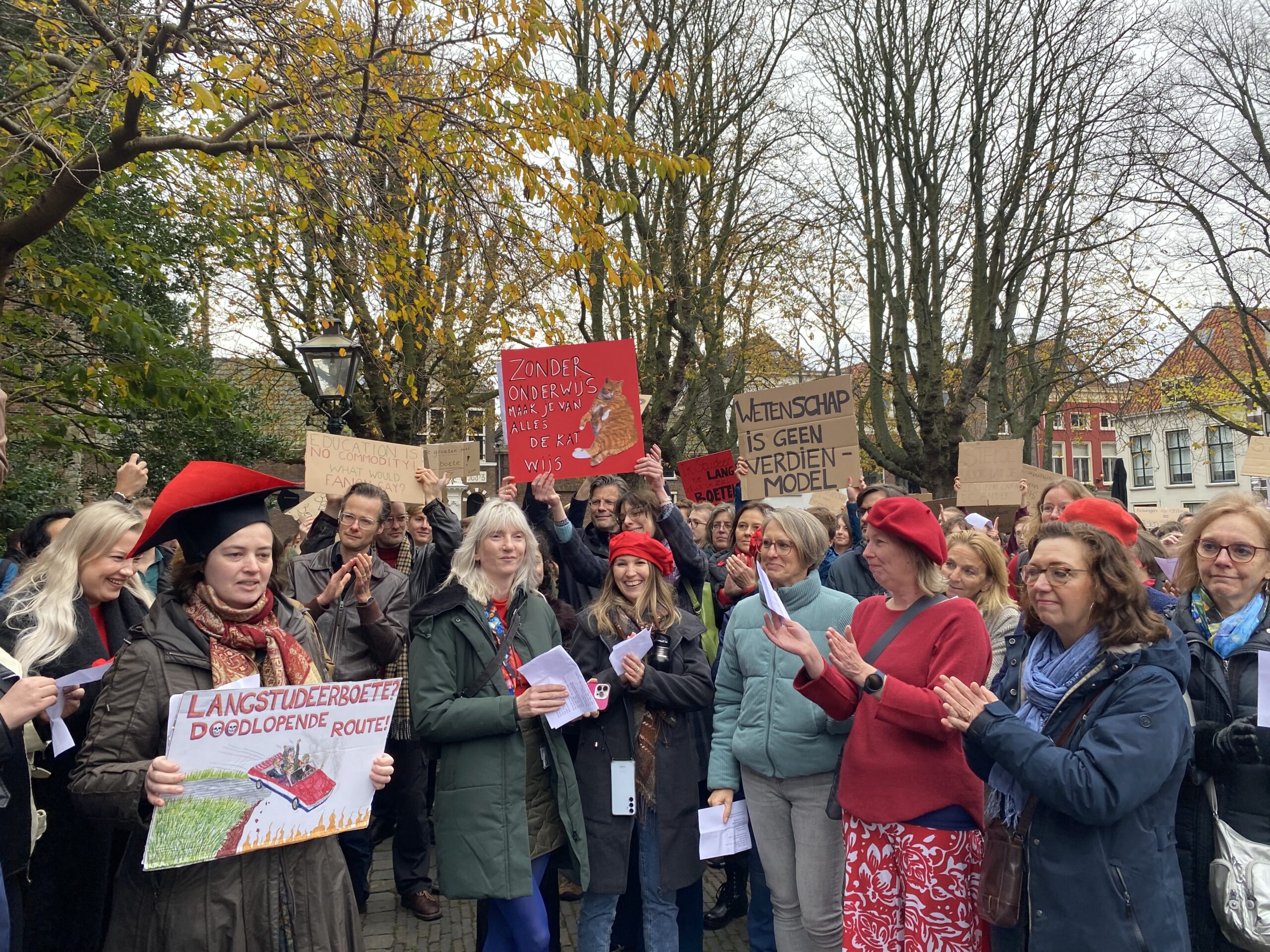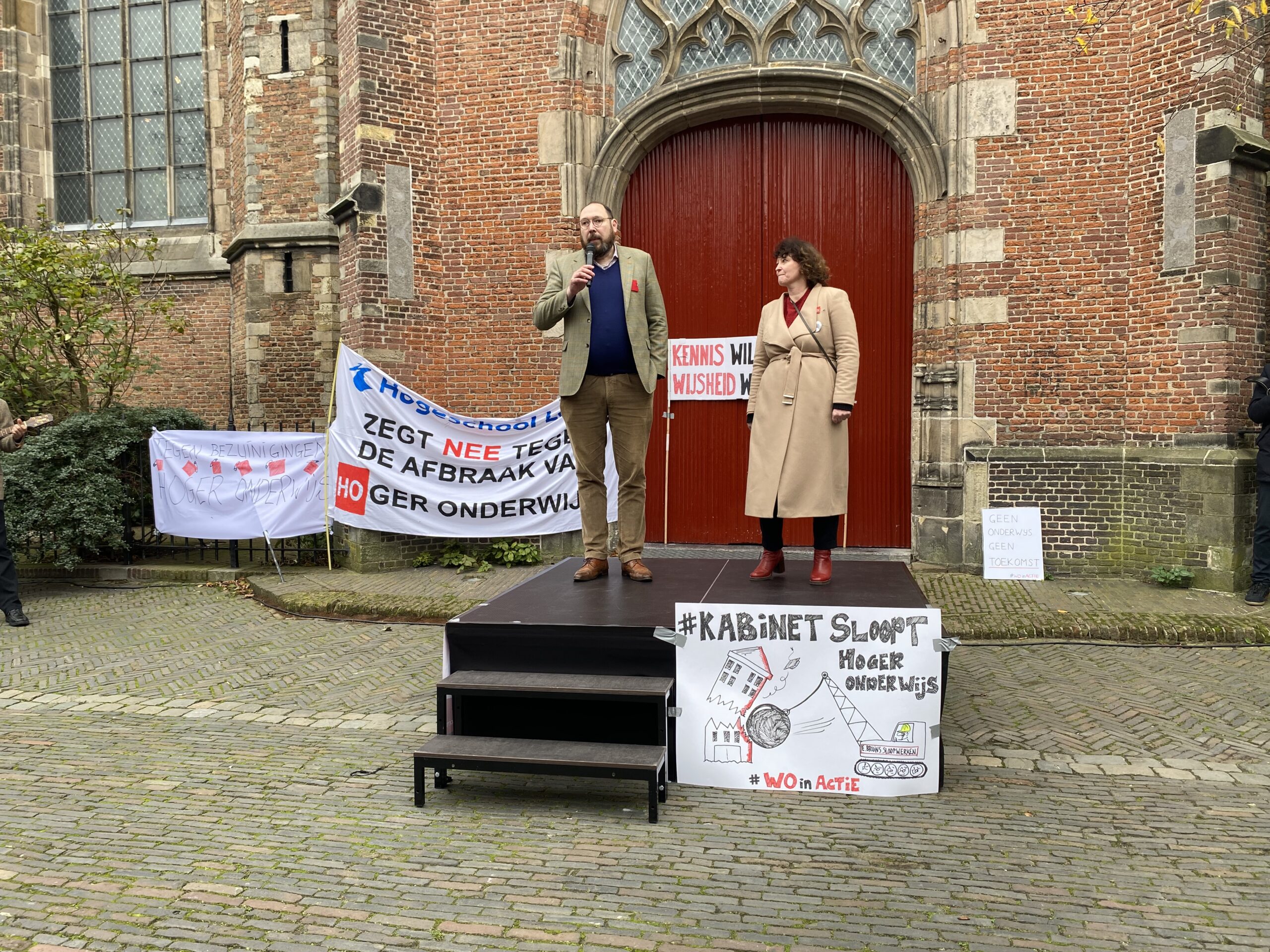 In de oproep voor de demonstratie die donderdagochtend schrijft de organisatie: “WOinActie blijft voor vandaag bij de lokale acties op de universiteiten zodat alle medewerkers en studenten zich veilig kunnen uitspreken tegen de bezuinigingen die het hoger onderwijs bedreigen. Wij roepen iedereen op om aan deze lokale acties mee te doen en vooral gemobiliseerd te blijven voor een grote, gezamenlijke demonstratie in Den Haag op heel korte termijn.”