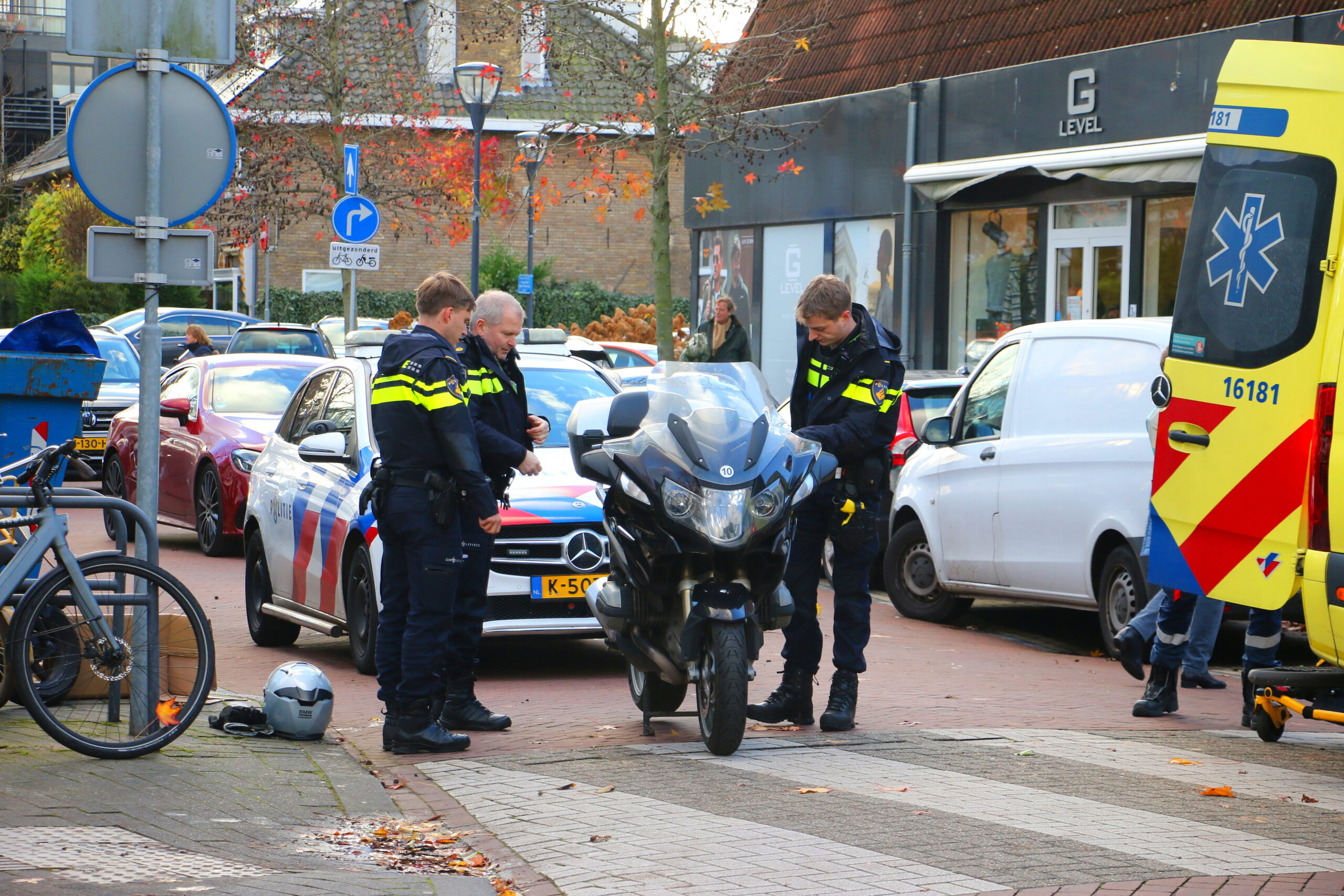 Na het ongeval ontstond er een flinke verkeersopstopping in het winkelcentrum van Oegstgeest.