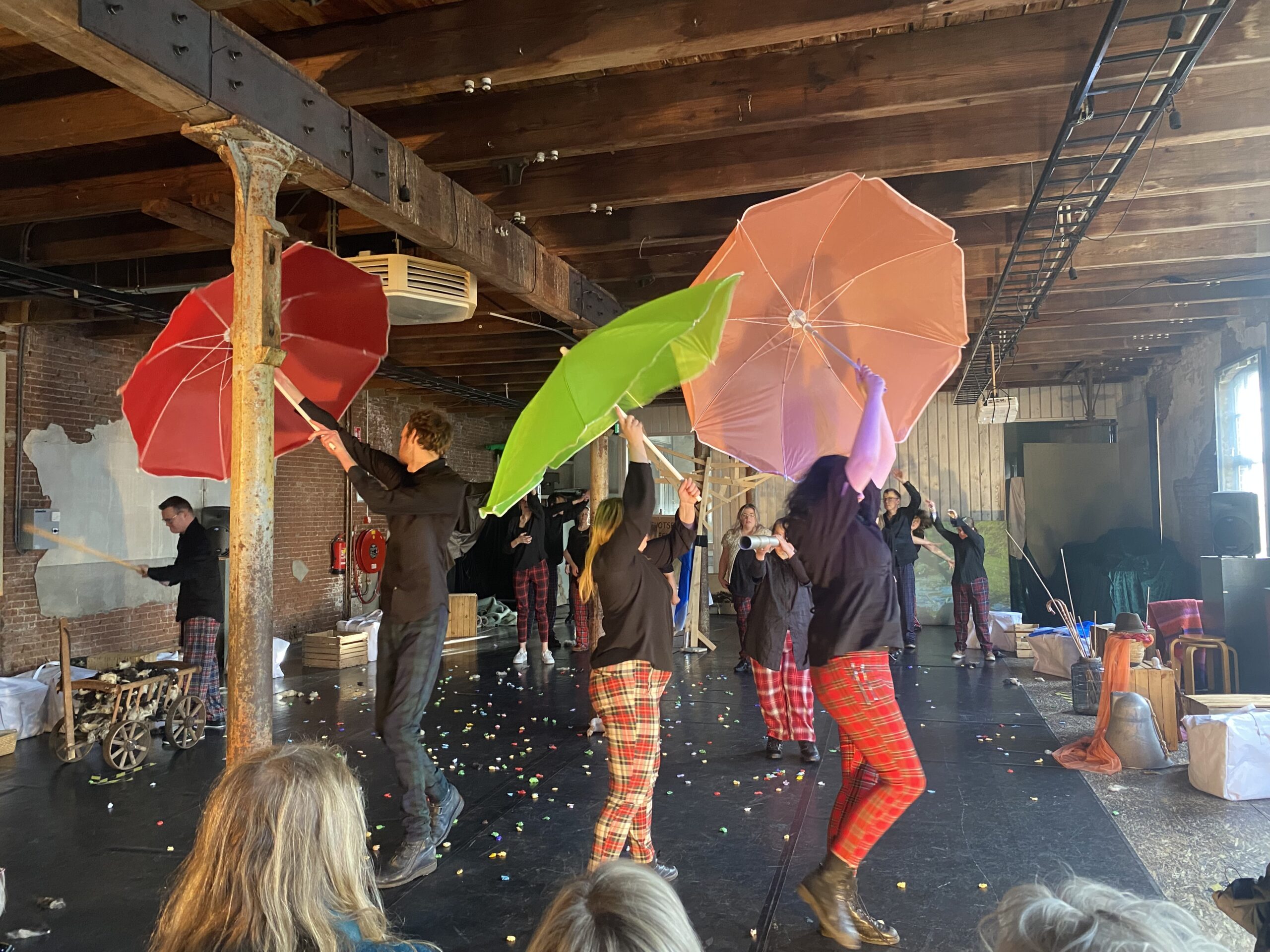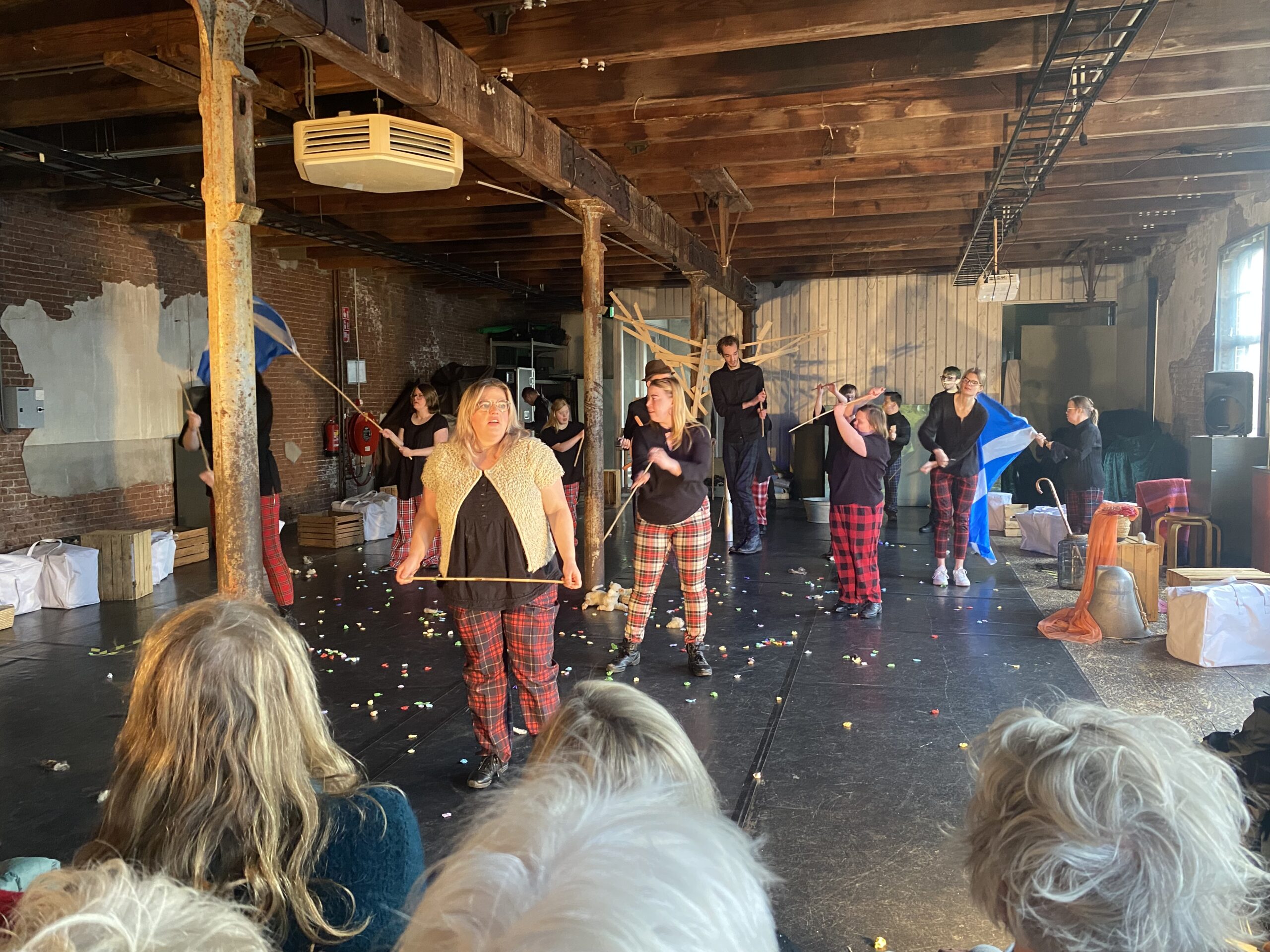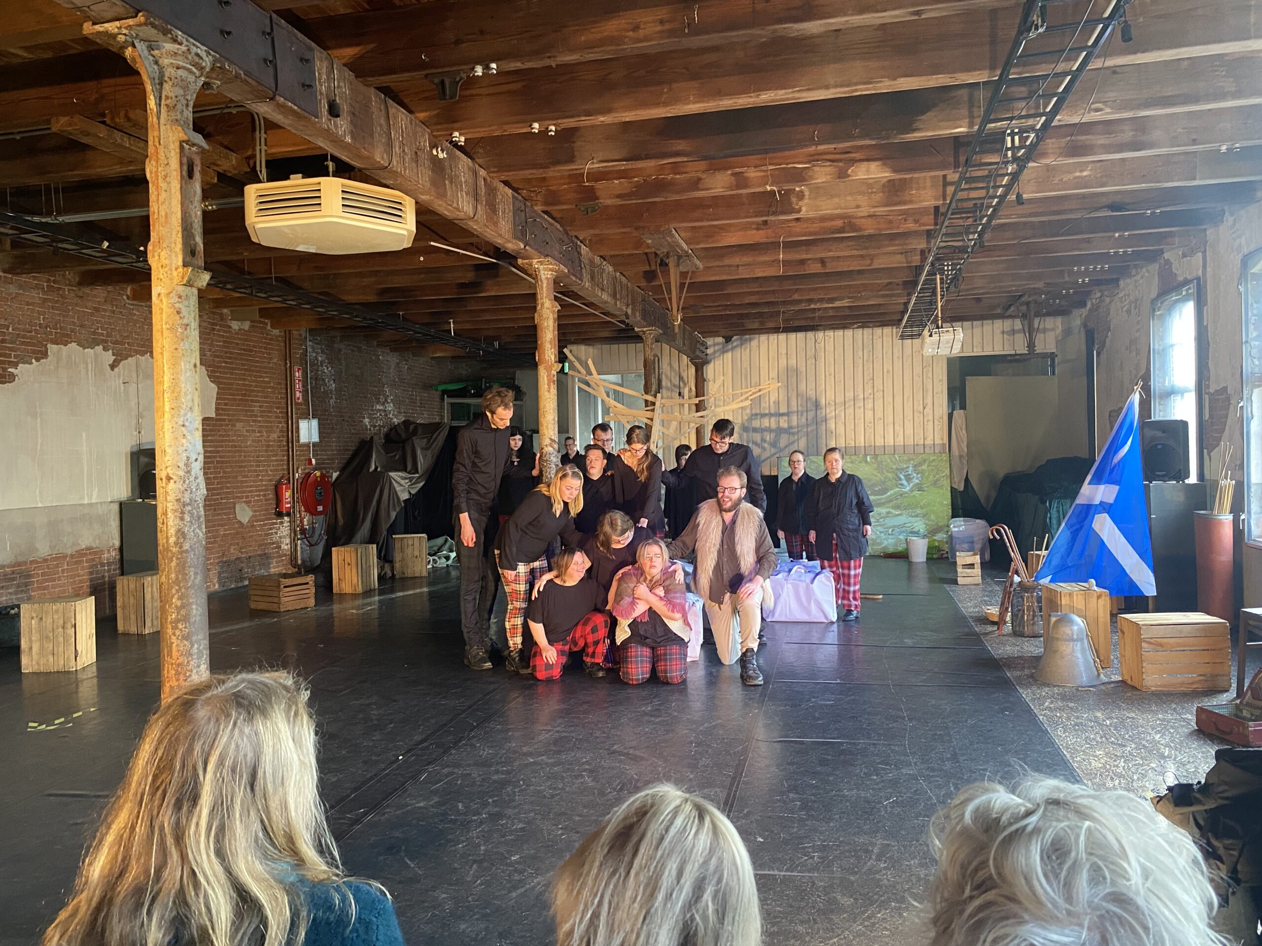 De lichten gaan uit, muziek klinkt en het spel begint. Gehuil komt uit de speakers en de boze grote wolf komt tevoorschijn. Verschrikt kijkt het publiek op en er klinkt wat geroezemoes. “Welkom allemaal, dit verhaal speelt zich af in Schotland”, vertelt één van de spelers.