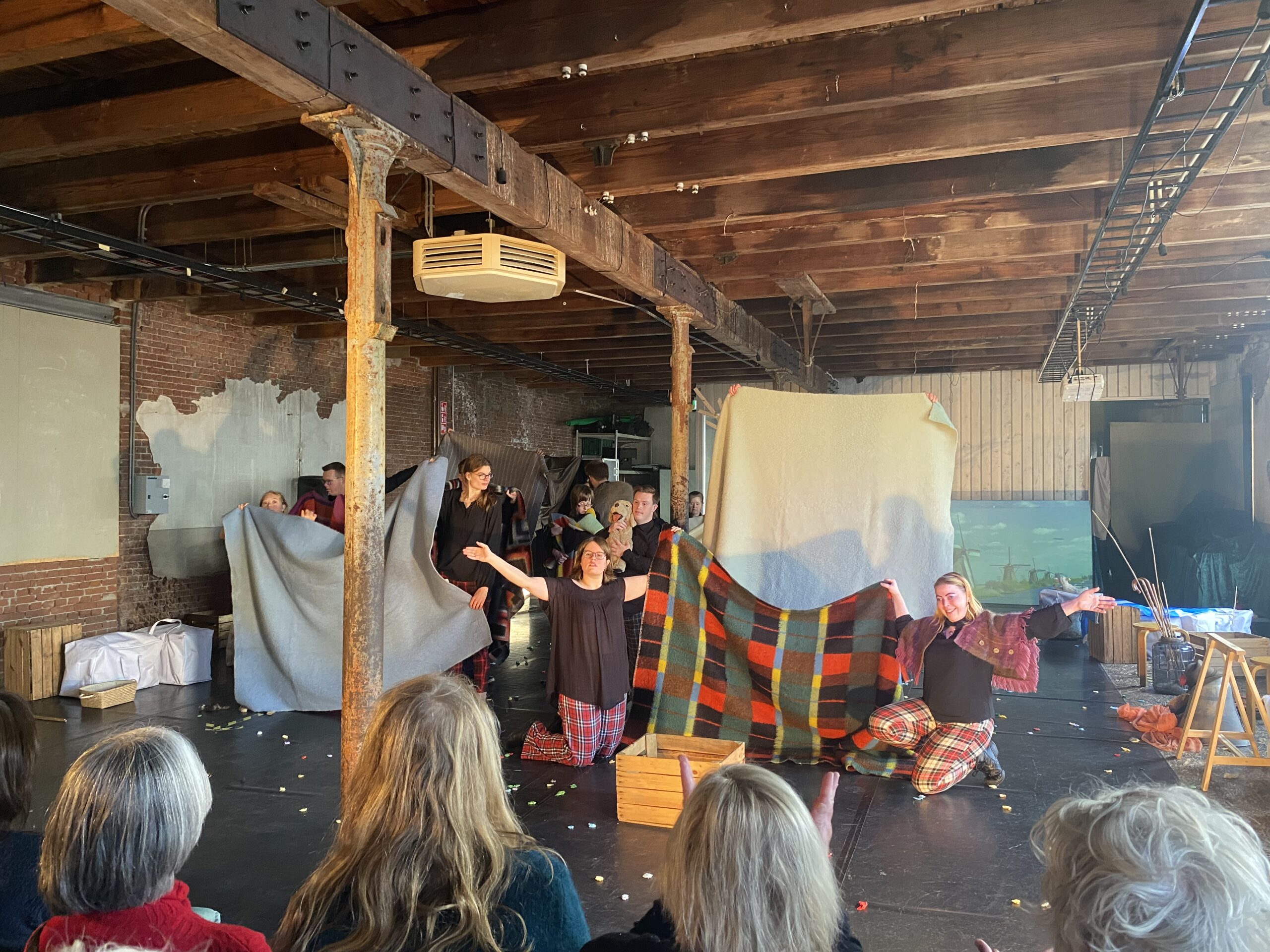Vorige week werd er nog hard geoefend door Theater Domino en afgelopen woensdag was het eindelijk zo ver: de voorstelling ‘Deken’ in de voormalige dekenfabriek Scheltma. Ongeveer vijftig mensen zijn afgekomen op de voorstelling. “Ze doen het ontzettend goed”, vindt Jaap Matzlar. “Zo mooi heb ik het nog niet gezien.”