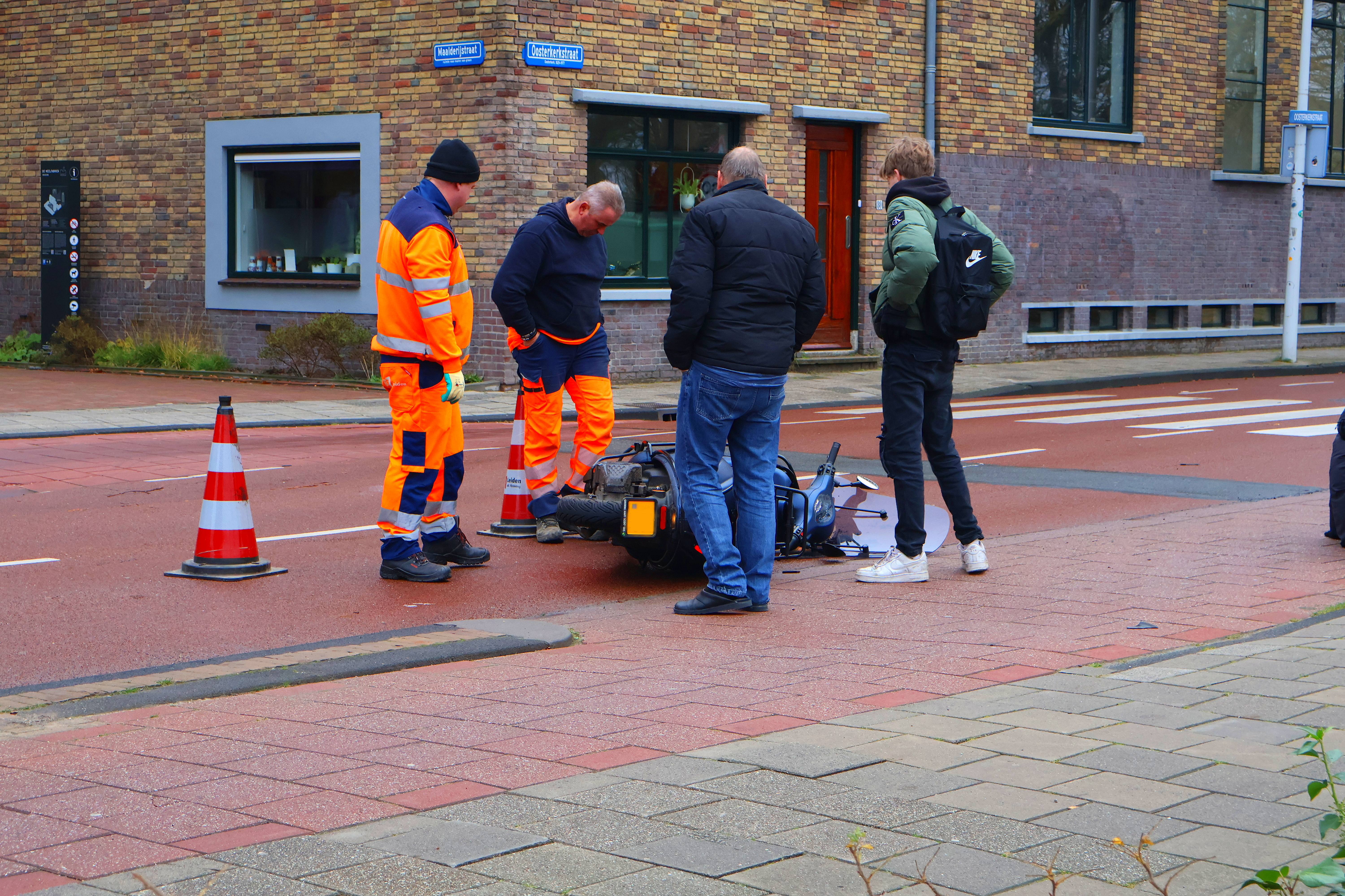 In de Oosterkerkstraat in Leiden heeft maandagmiddag om 14.50 uur een botsing plaatsgevonden tussen een scooter en een stilstaande bestelbus. Er zijn geen gewonden gevallen. Wel raakten beide voertuigen beschadigd.