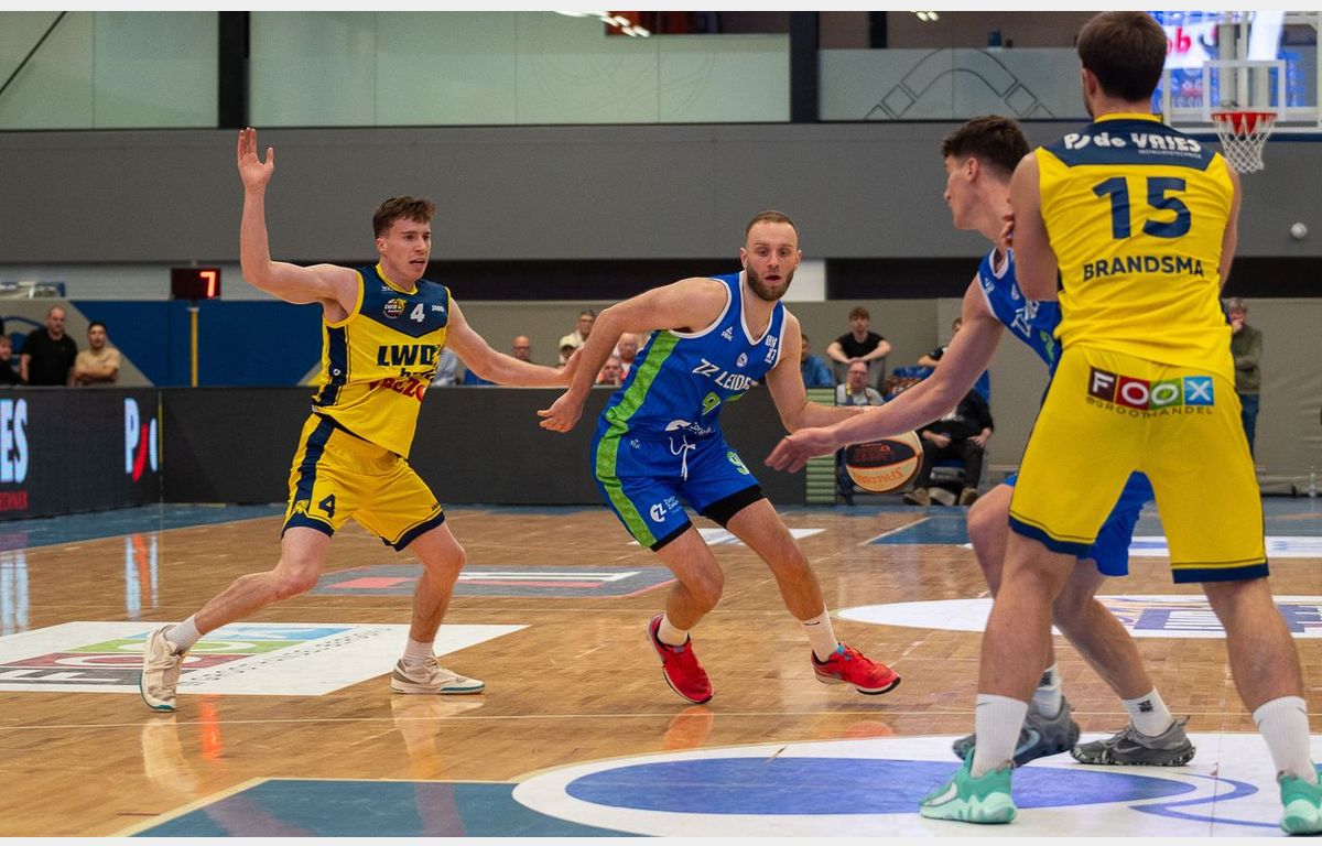 De eredivisie basketballers van Zorg en Zekerheid Leiden hebben zondagmiddag in Sporthal Kalverdijkje in Leeuwarden gewonnen van LWD Basket. Met een 81-81 stand werd verlengd. De Leidenaren wisten te winnen met 92-95.