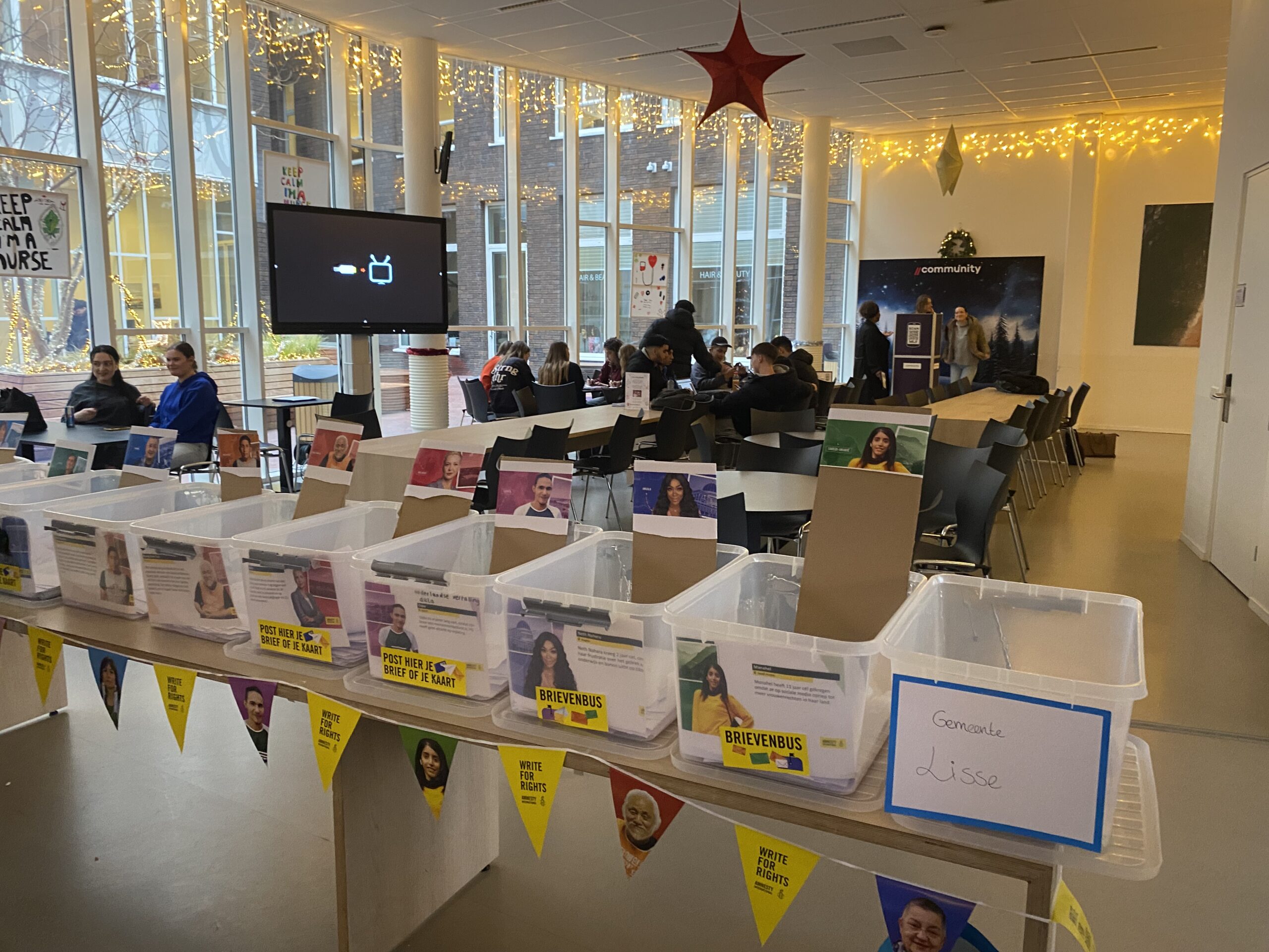 Studenten van mboRijnland schreven tijdens de actie Write for Rights honderden brieven voor gevangenen in het buitenland. De gevangenen zitten volgens Amnesty Leiden onterecht vast. Om hen een hart onder de riem te steken, en in het kader van de Dag van de Mensenrechten, worden op verschillende locaties in Leiden brieven geschreven, zo ook op mboRijnland aan de Breestraat.