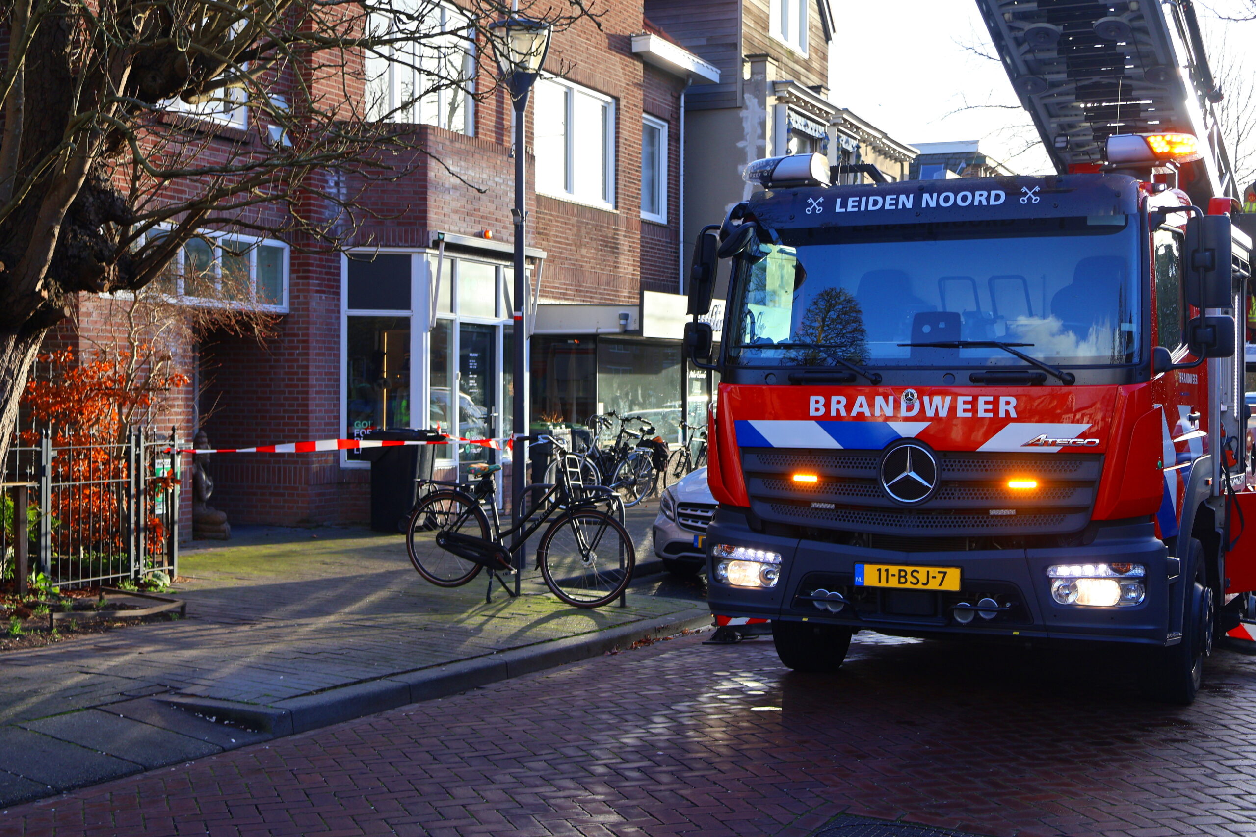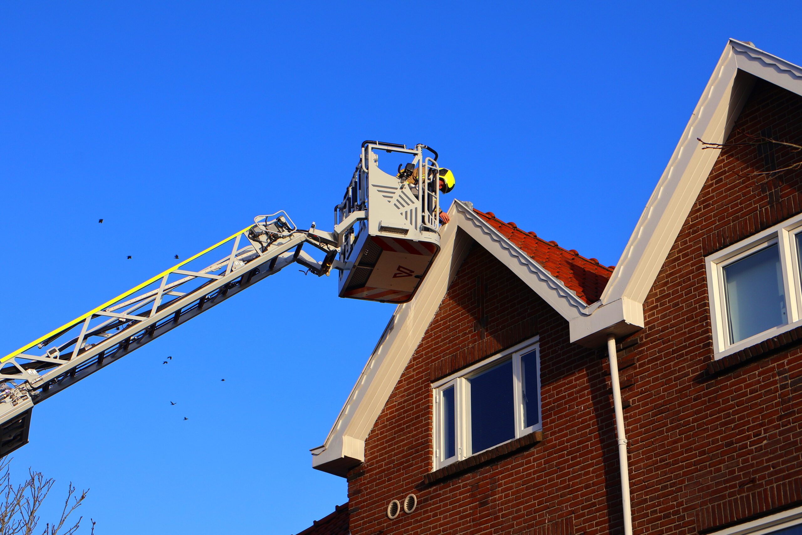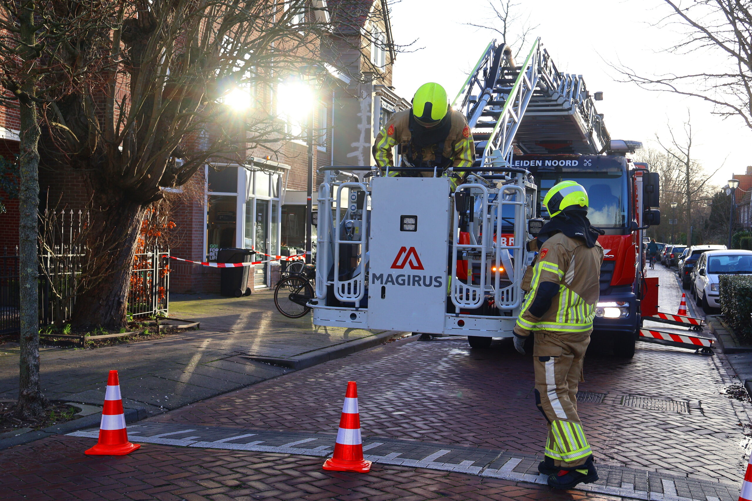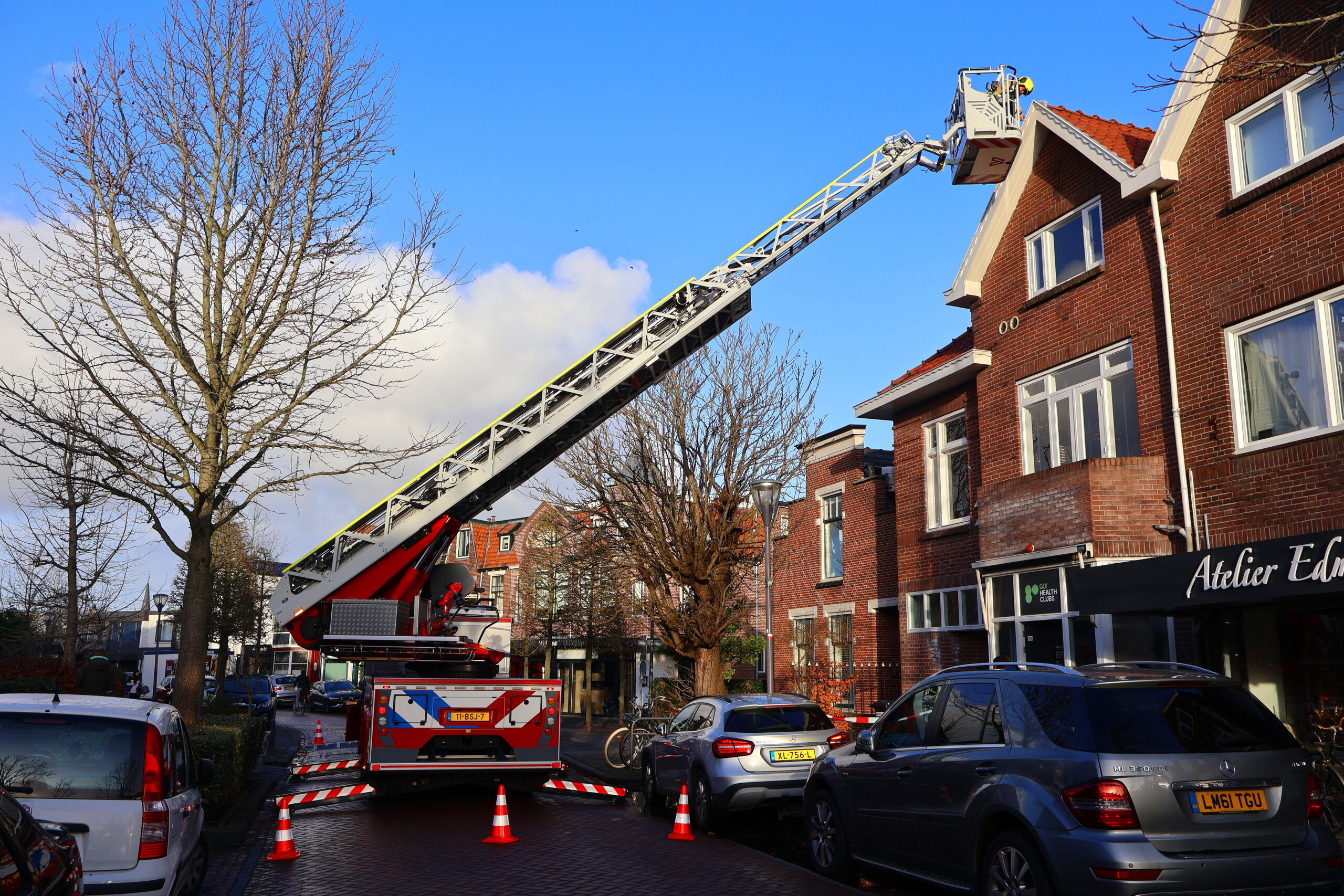 Een losgeraakte daklijst van een woning zorgde maandagochtend voor spanning in de De Kempenaerstraat in Oegstgeest. De brandweer zette een deel van de winkelstraat af en kwam met een ladderwagen ter plaatse om de lijst weer vast te zetten. Ondertussen keken voorbijgangers angstig naar boven.