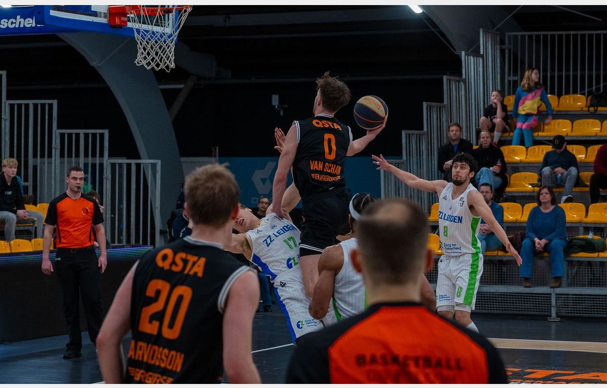 Zorg en Zekerheid Leiden heeft zich zondag in de laatste seconde van de wedstrijd tegen QSTA United weten te plaatsen voor de halve finale van de TOTO Basketball Cup.