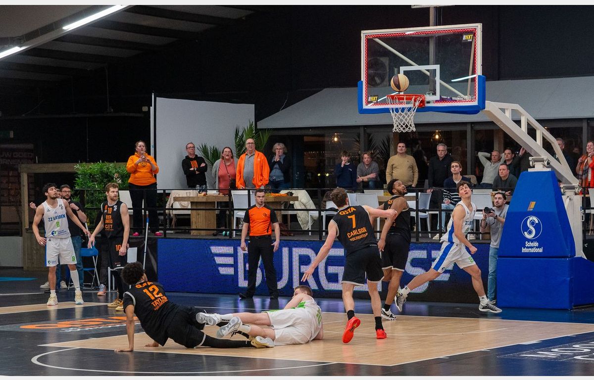 Met nog 0.9 seconden te gaan op de klok scoorde Keime Helfrich een driepunter waarmee QSTA United op een 74-73 voorsprong kwam te staan. In de hierop volgende time-out wist Patrick Cartier alsnog de winnende treffer voor de Leidenaren te maken. De einduitslag werd 74-75 voor ZZ Leiden.