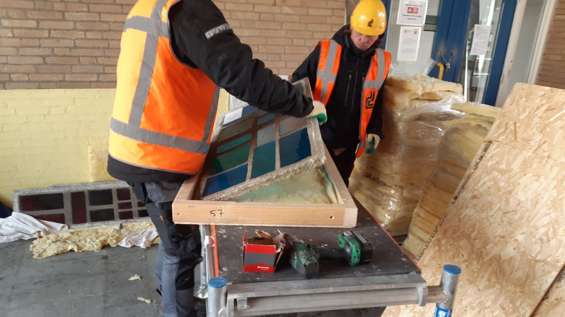 “Herplaatsing is natuurlijk moeilijk omdat het zo groot is en dan kost het natuurlijk ook veel”, weet Meine Jansen. Het kunstwerk bestaat uit 126 gekleurde ramen, gemaakt uit drie centimeter dik handgemaakt glas. Deze ramen liggen nu tijdelijk opgeslagen, want het belastingkantoor wordt gesloopt.