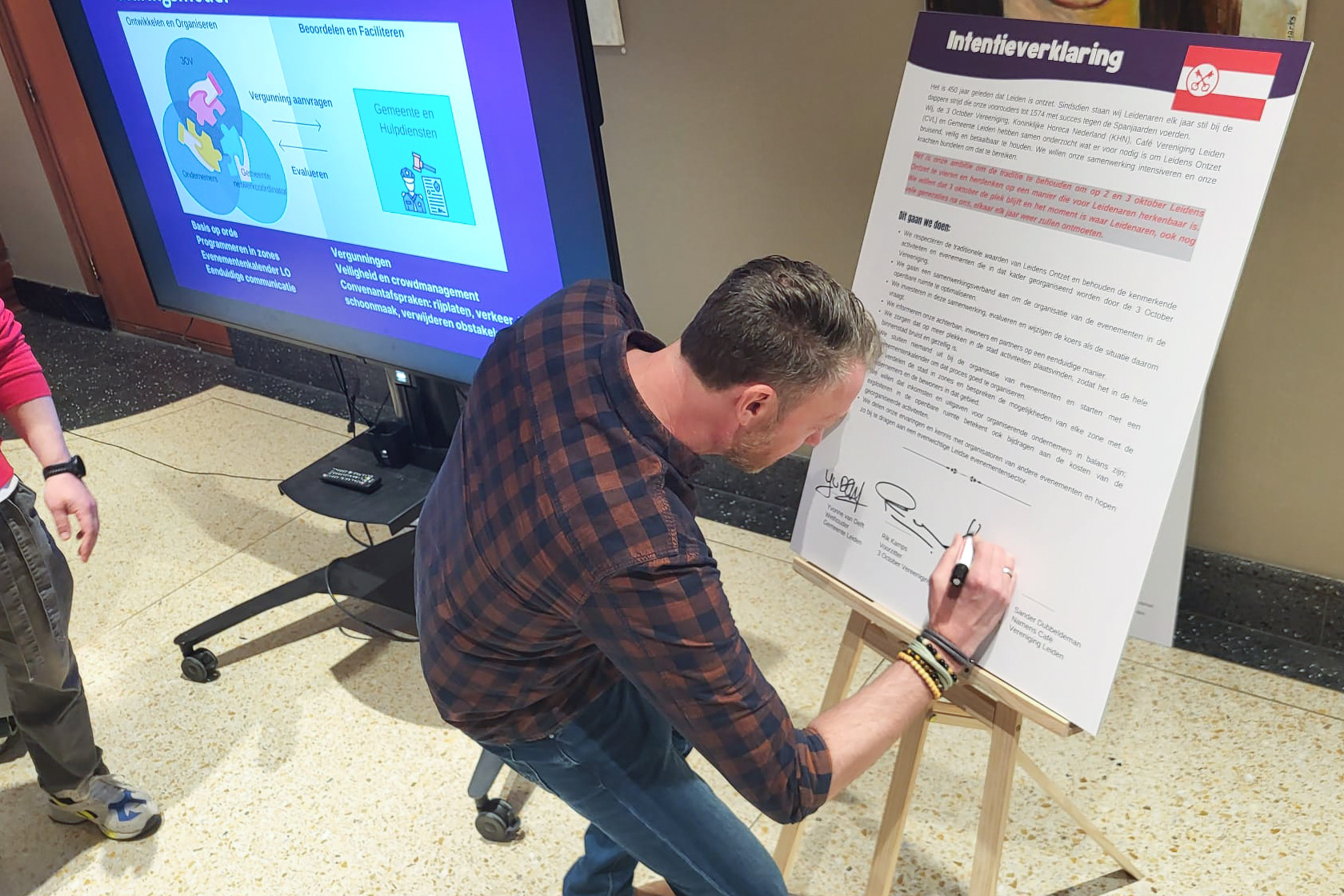 De gemeente Leiden, Koninklijke Horeca Nederland (regio Leiden), Café Vereniging Leiden en de 3 October Vereeniging hebben een intentieverklaring getekend die Leidens Ontzet ’toekomstbestendig’ moet maken. “We kijken hoe we 3 oktober beter kunnen organiseren”, zegt wethouder Yvonne van Delft tevreden. “Door samen te werken met horeca, verenigingen en bewoners spreiden we evenementen en maken we het feest veiliger en betaalbaarder”.