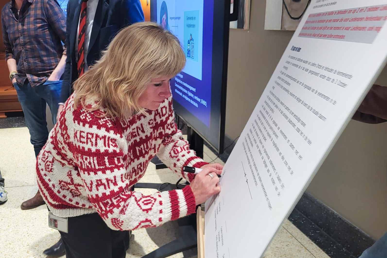 Brigit Disseldorp in gesprek met Yvonne van Delft over de intentieverklaring.