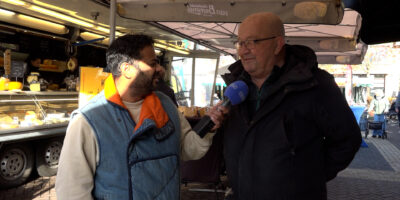 Verslaggever Kris Freke in gesprek met loodgieter Gijs Varkevisser.