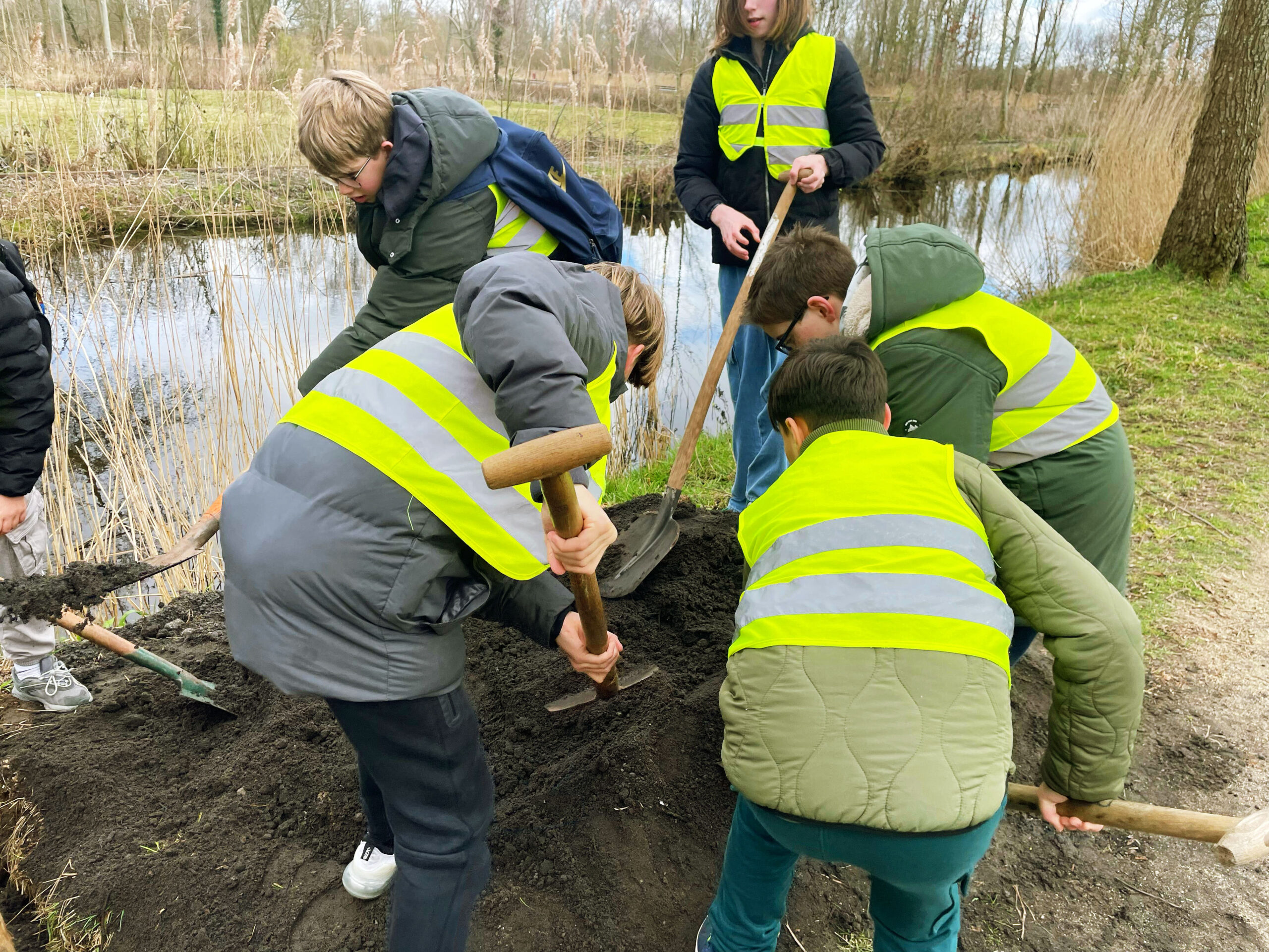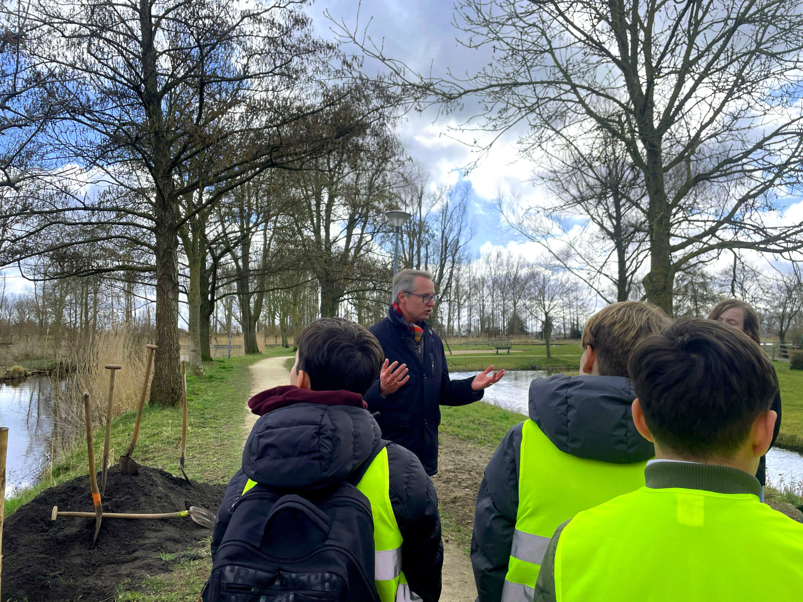 Tijdens zijn bezoek gaf wethouder Schokker de leerlingen van groep acht uitleg over het belang van bomen, natuur, en een groene leefomgeving in Voorschoten. Na deze informatie staken de kinderen samen met de wethouder de handen uit de mouwen. Gewapend met scheppen gingen ze aan de slag en gaven ze de jonge boom een plek in de Voorschotense bodem. De boom is geplant aan het Verzetsstrijderspad ter hoogte van de Jan Wagtendonkstraat.