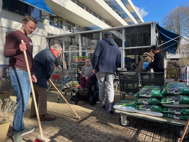 Wethouder Ritske Bloemendaal werkte samen met bewoners, familieleden, vrijwilligers en medewerkers aan het opfrissen van de buitenruimtes van woonzorglocatie Amarosa. De beplanting werd gesnoeid, tuinen werden aangeharkt en balkons en meubels grondig schoongemaakt. Daarnaast werden vroege voorjaarsbloemen geplant om de ruimtes een kleurrijk en uitnodigend uiterlijk te geven. Dankzij deze inspanningen kunnen bewoners binnenkort genieten van een nette en groene omgeving.