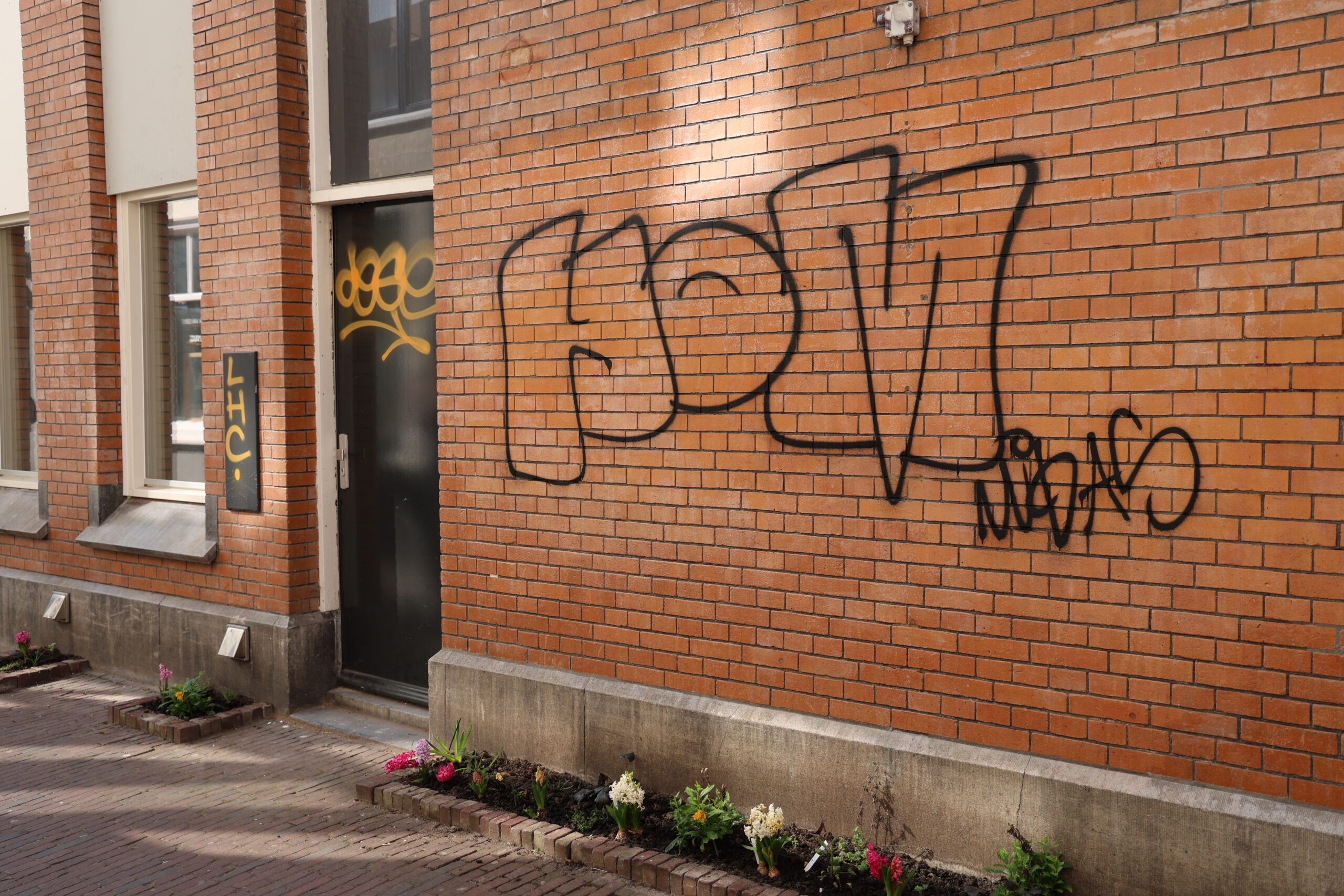 Vandalen hebben in de nacht van woensdag op donderdag op verschillende plekken de binnenstad van Leiden graffiti gespoten. Tussen 1.30 uur en 4.00 uur zijn er verschillende ’tags’ op deuren, muren en afvalbakken gezet.