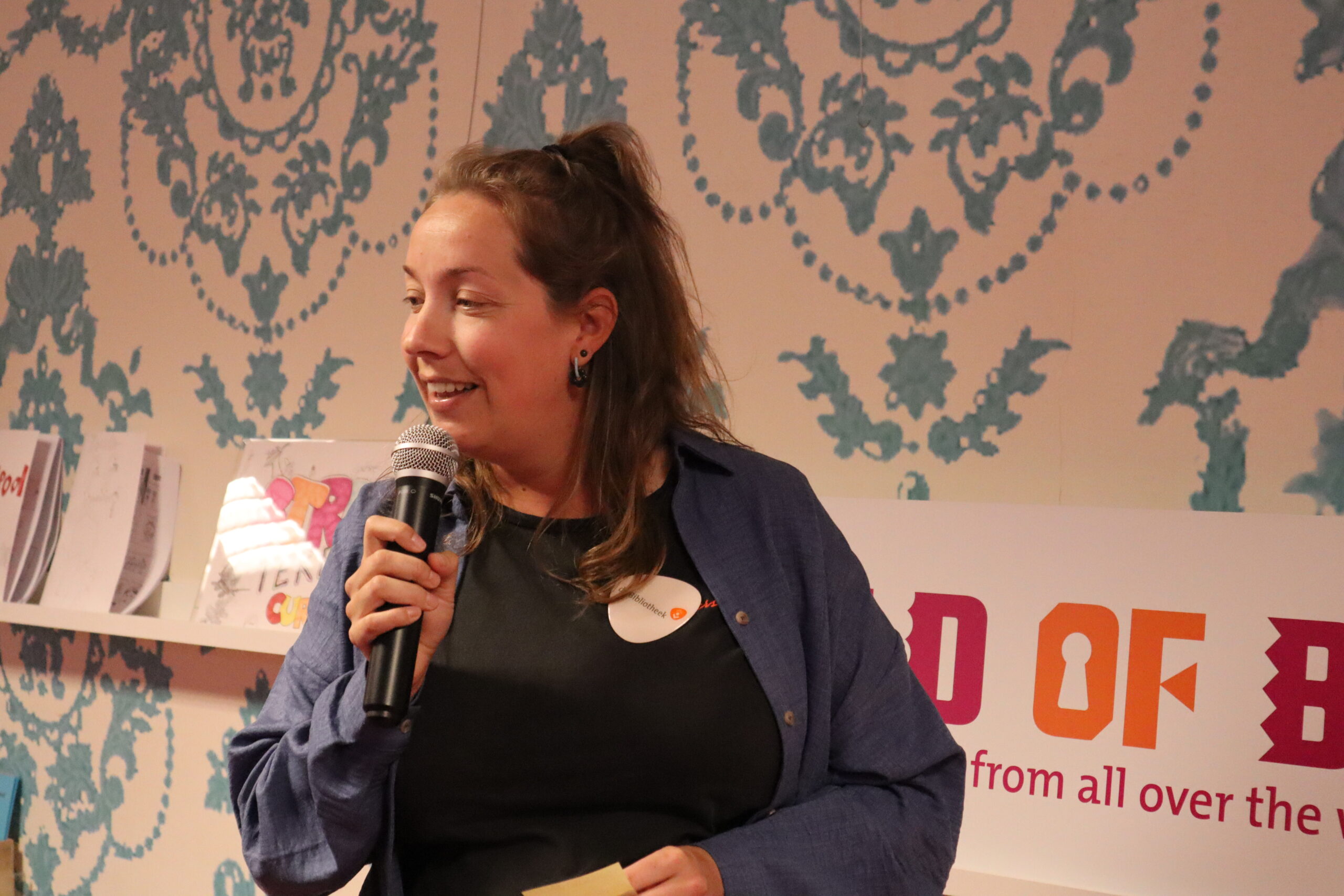 Floortje van Nes over de boekenkast ‘World of Books’ in bibliotheek van Oegstgeest.