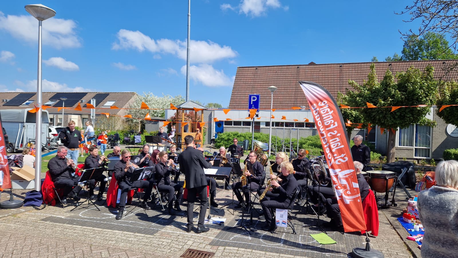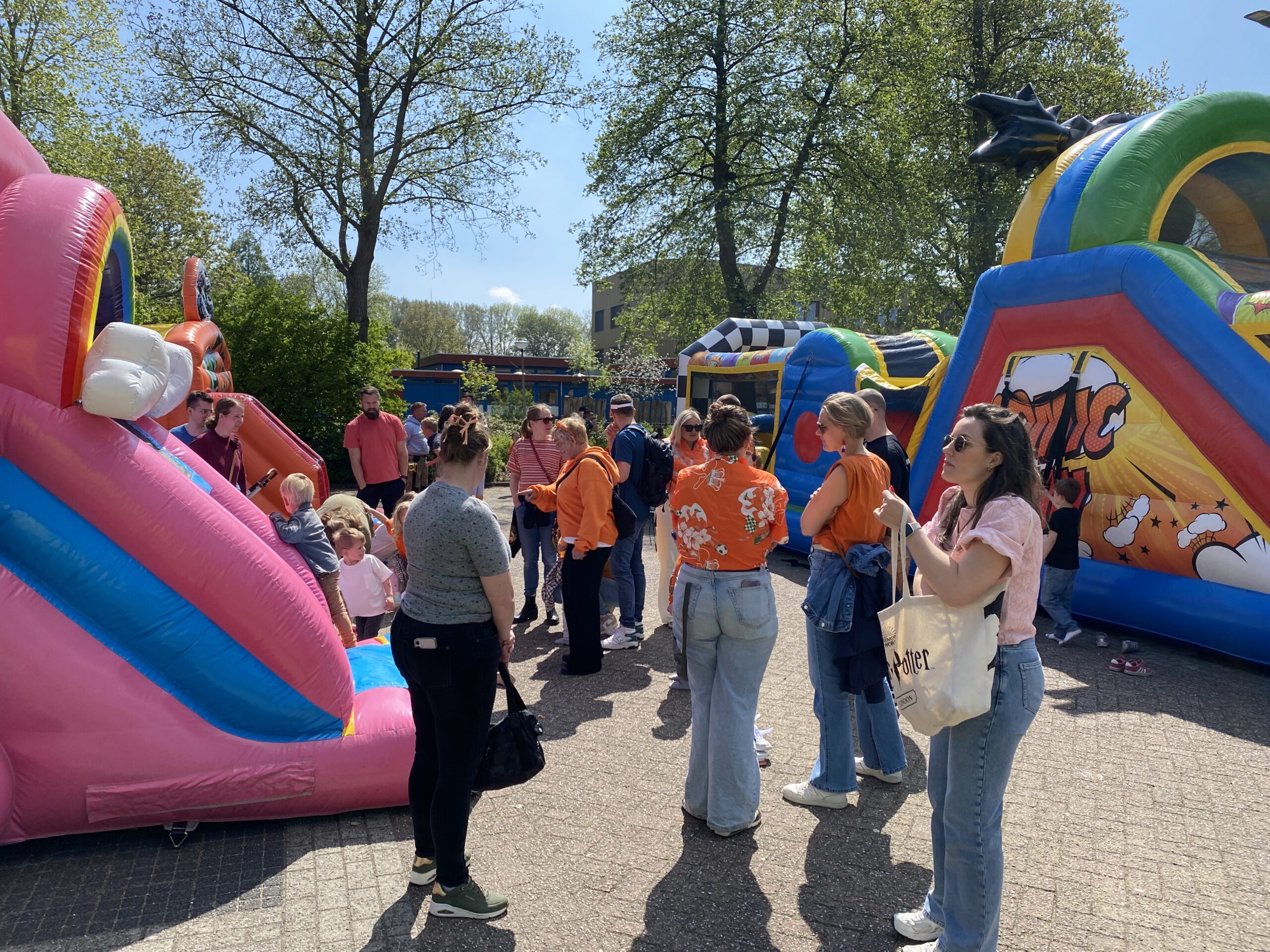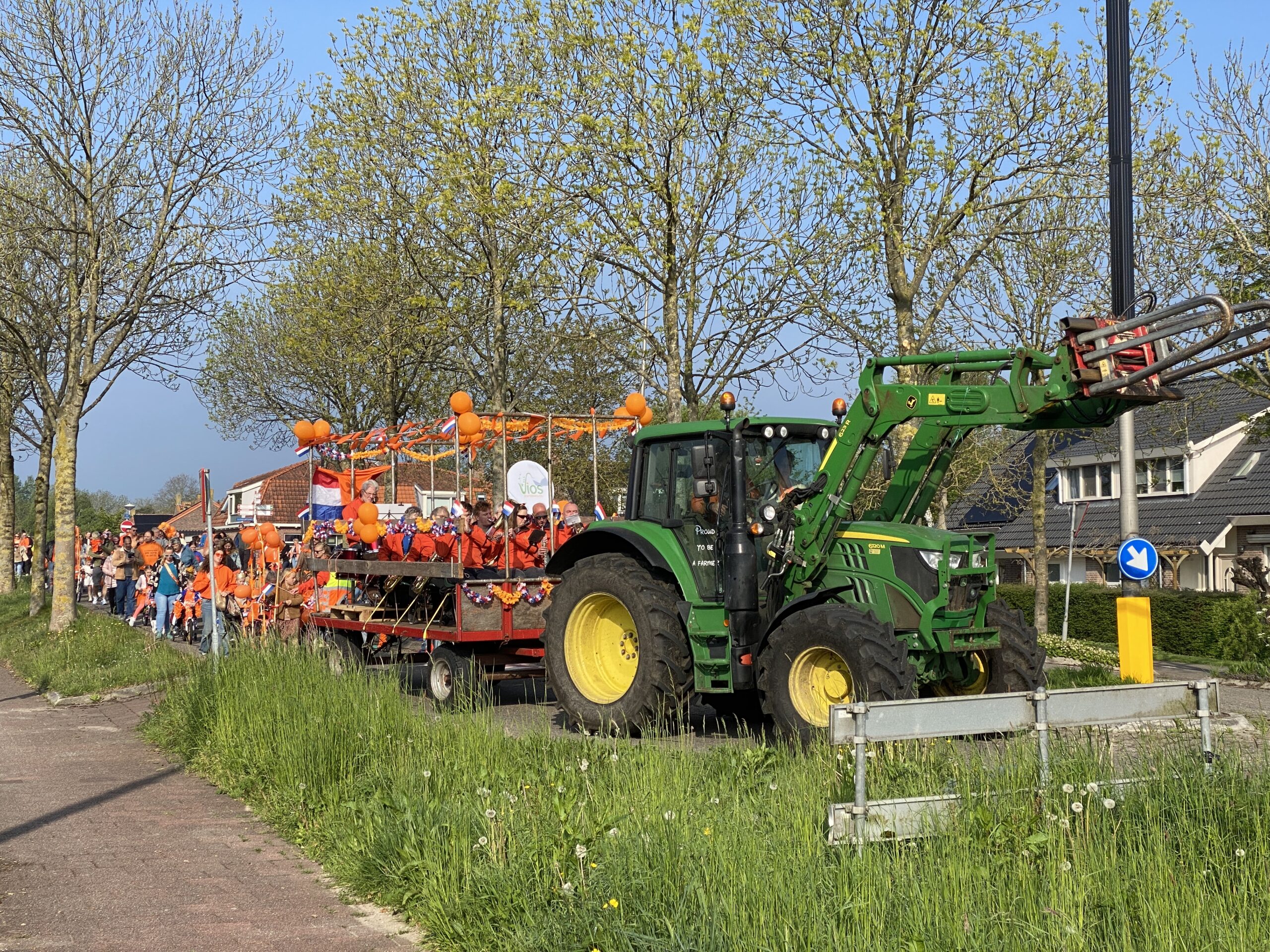 Traditioneel start de viering van Koningsdag met een optocht van kinderen die hun fiets en/of zichzelf oranje versierd hebben en daarmee proberen om een prijs te winnen. De stoet werd voorafgegaan door de trekker van de familie Verboon. Achterhen liepen zo’n vijftig kinderen met hun ouders van het Muziekcentrum over de Schenkelweg, Dr. Kortmannstraat, de Dorpsstraat en ’t Watertje naar voetbalvereniging SJZ aan de Nieuwe Weg in Zoeterwoude-Dorp.