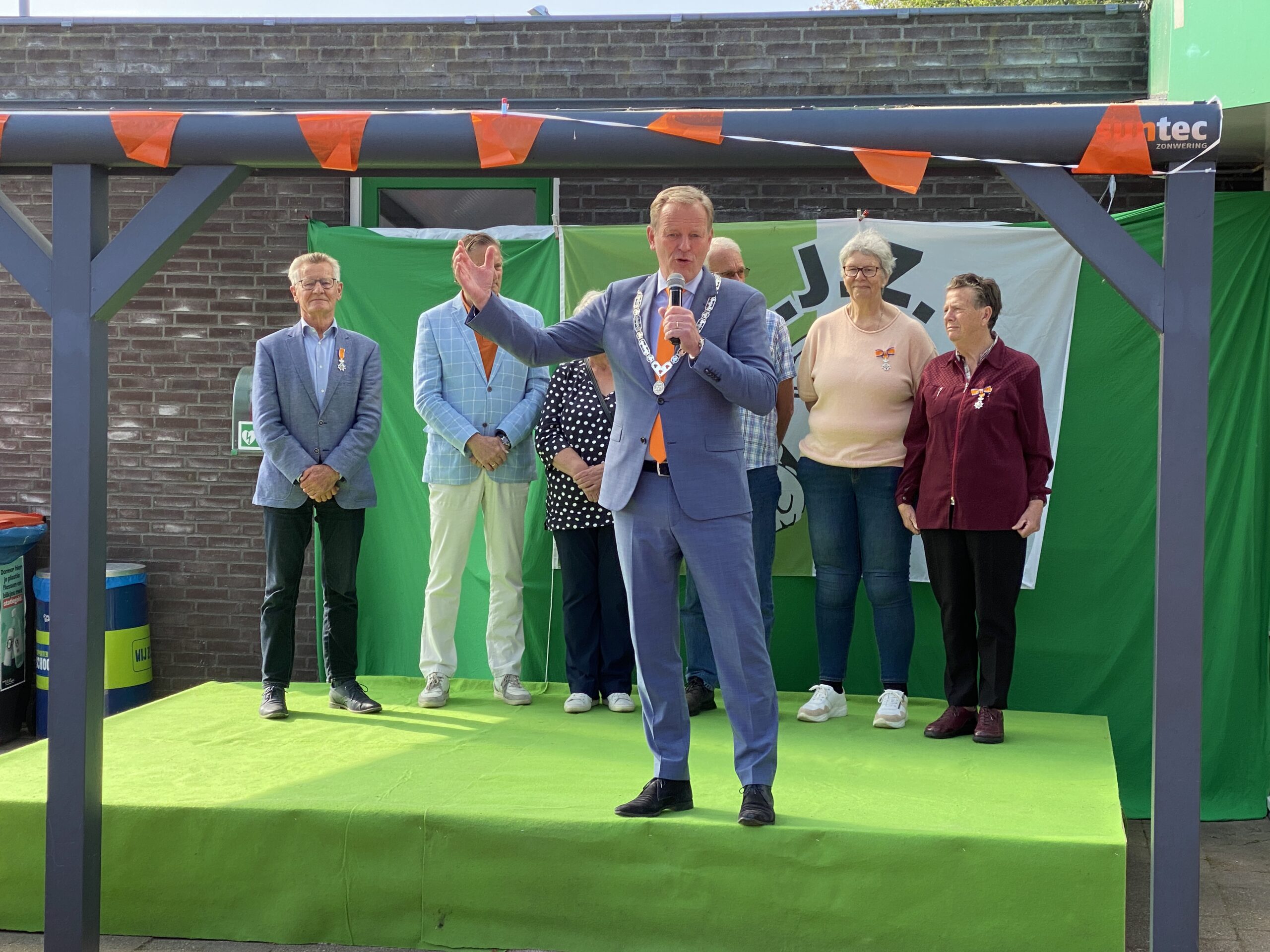 Daarna stelde de burgemeester de aanwezige kersverse gedecoreerden aan de rest van Zoeterwoude voor. Dit jaar had het de Koning behaagd om maar liefst zeven inwoners van Zoeterwoude een lintje te geven. Een record! Na de huldiging klonk het Wilhelmus, gespeeld door VIOS, en waren er verschillende kinderspelen. Ook werd de inschrijving voor de penaltybokaal, waar traditiegetrouw later op de middag om wordt gestreden.