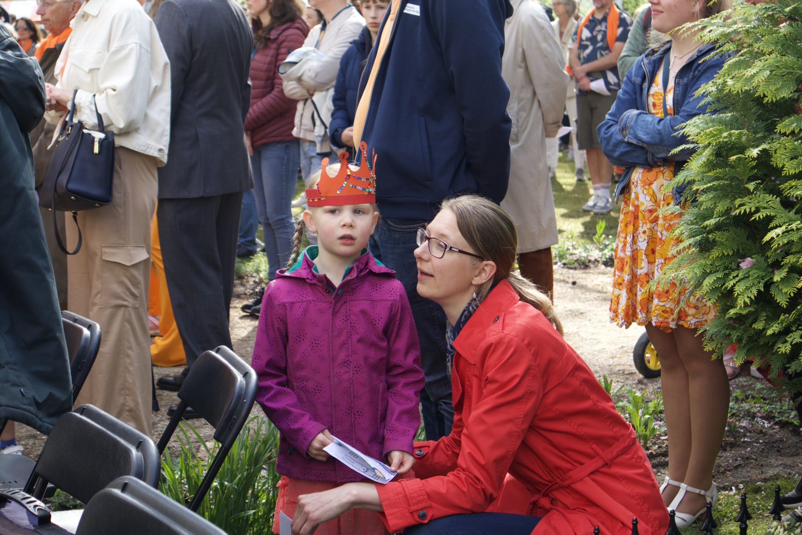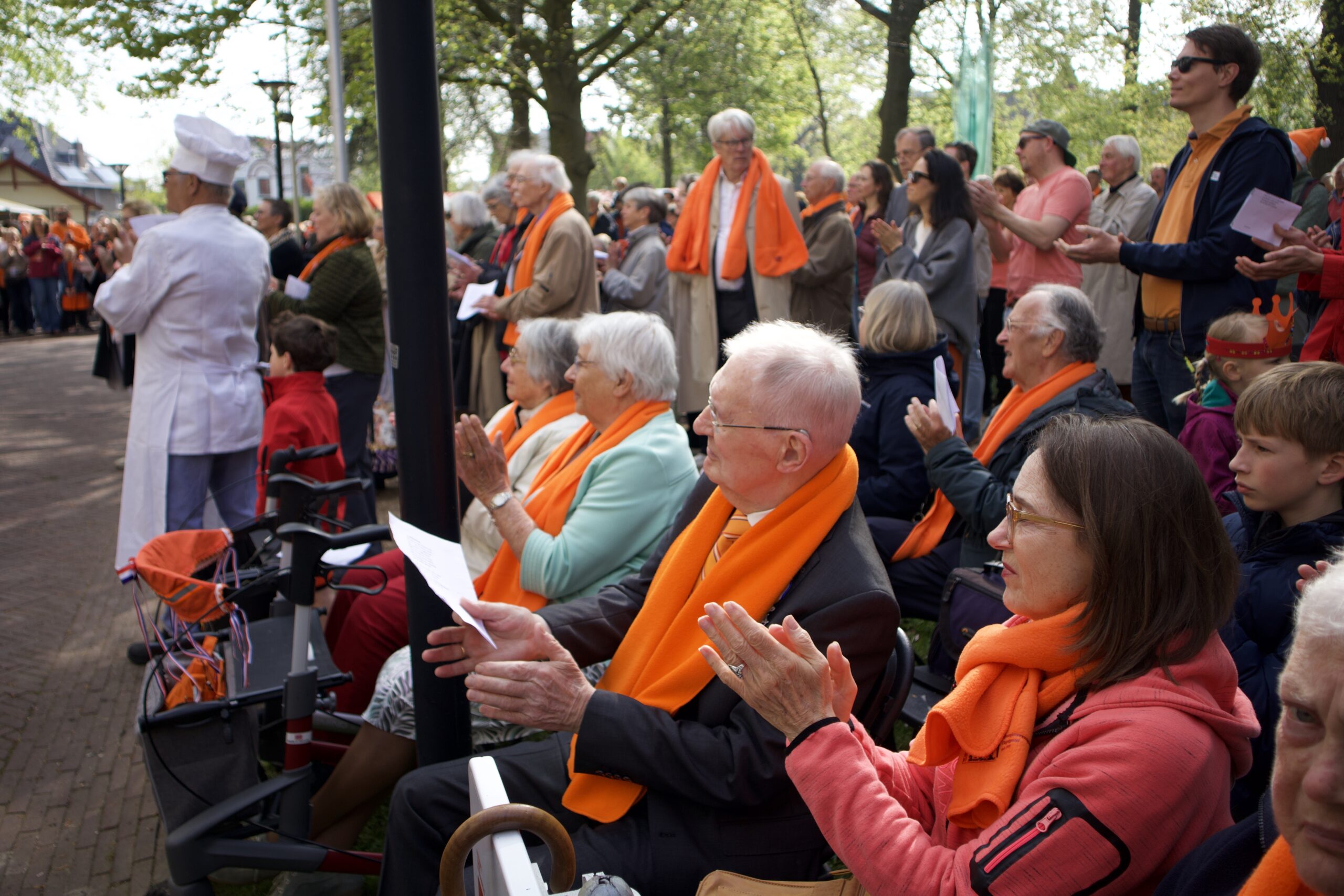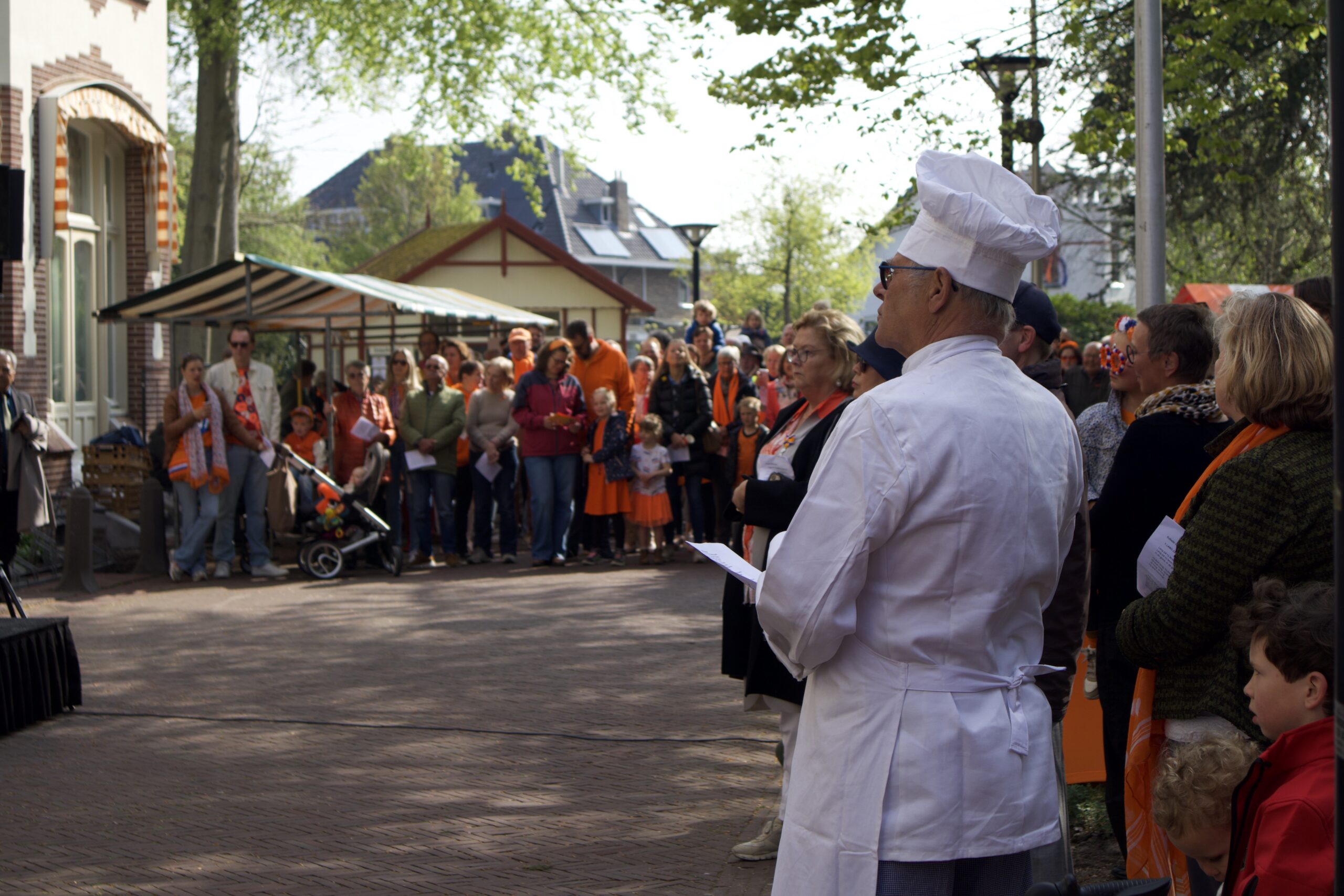 De sfeer zit er meteen goed in. Na de samenzang worden de inwoners die vrijdag 25 april een lintje ontvingen door de burgemeester in het zonnetje gezet. Aansluitend is het tijd voor de opening van de kinderspelen. Een bakker betreedt het podium en weet direct alle kinderen te betrekken. “Ik mag dit jaar een taart maken voor de koning, maar ik ben mijn recept kwijt! Willen jullie mij helpen zoeken?” roept hij. Een luid “Jaaa!” schalt over het plein, waarna de kinderen massaal richting de spelletjes trekken.