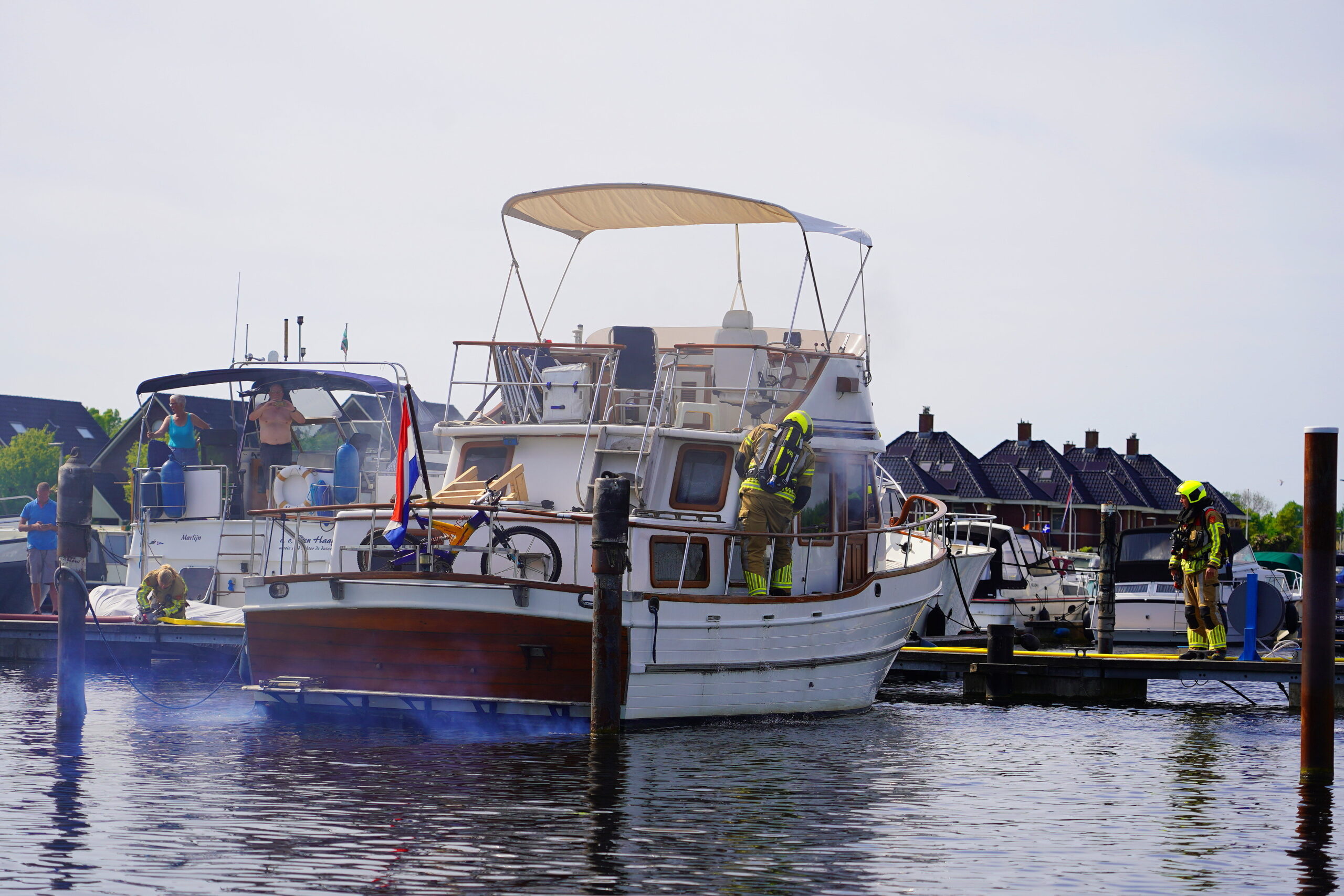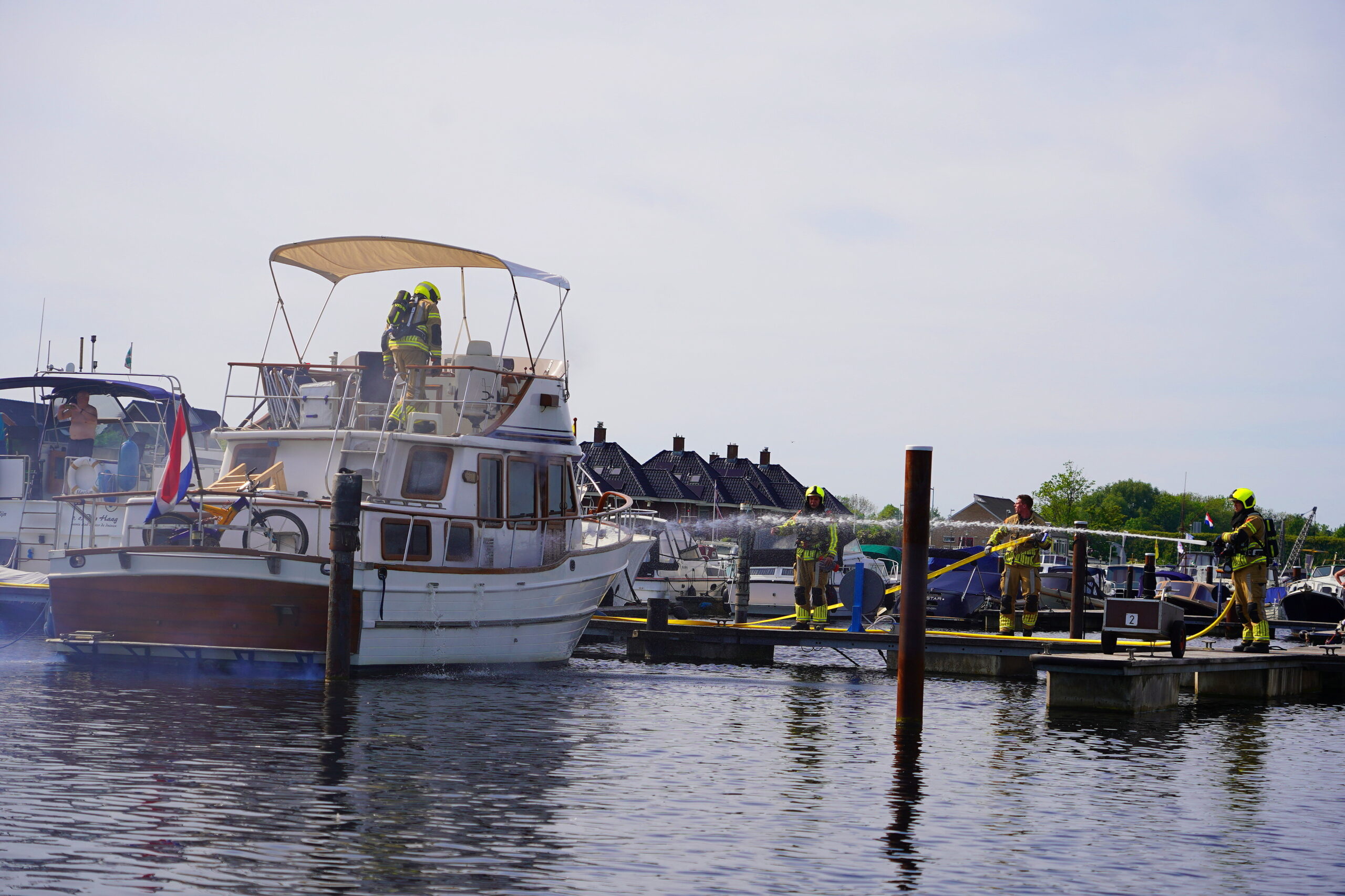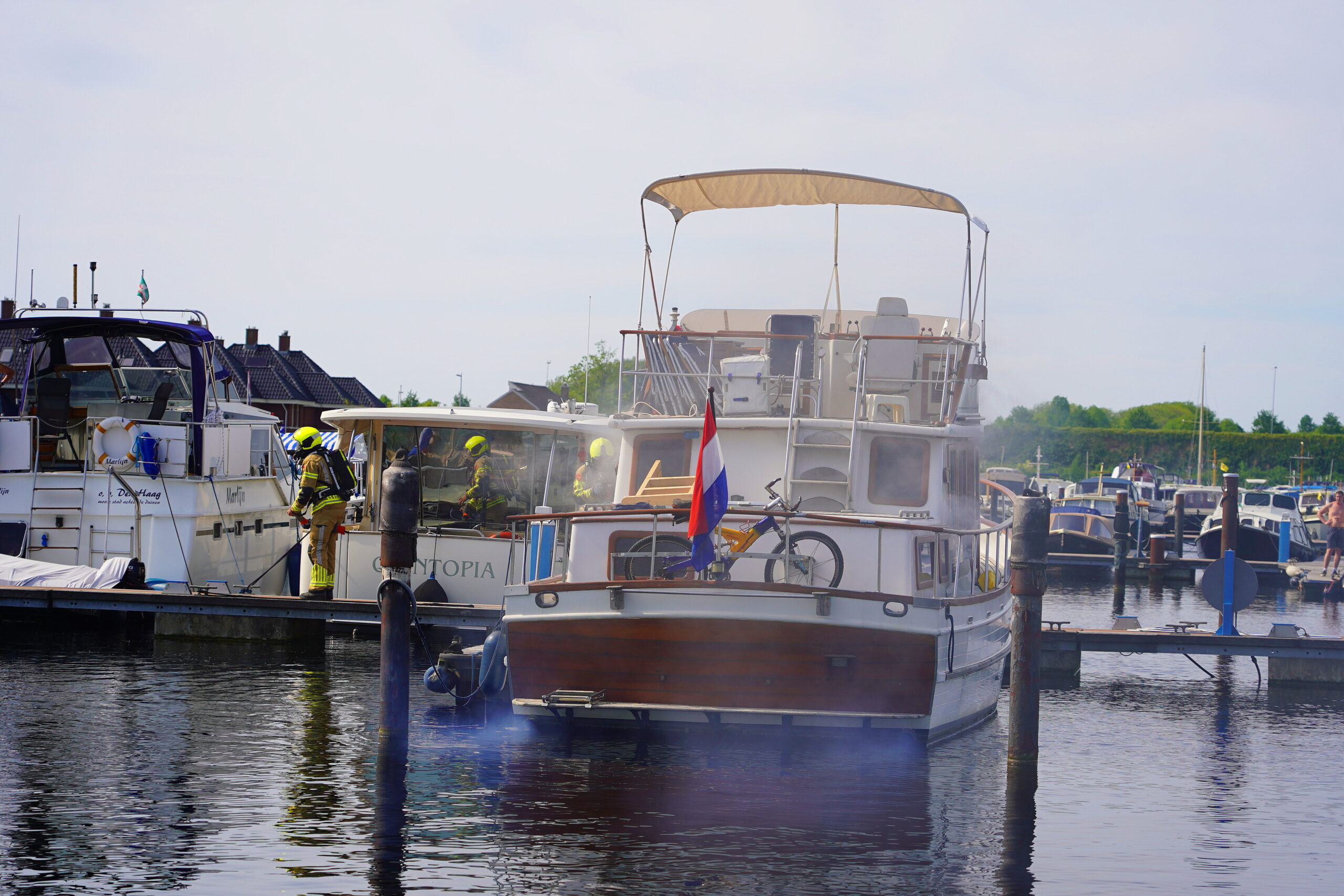 Een plezierjacht is donderdagmiddag rond 15.50 uur in brand gevlogen aan de Windrust in Leiderdorp. De boot lag op het moment dat de brand uitbrak aangemeerd in de haven.