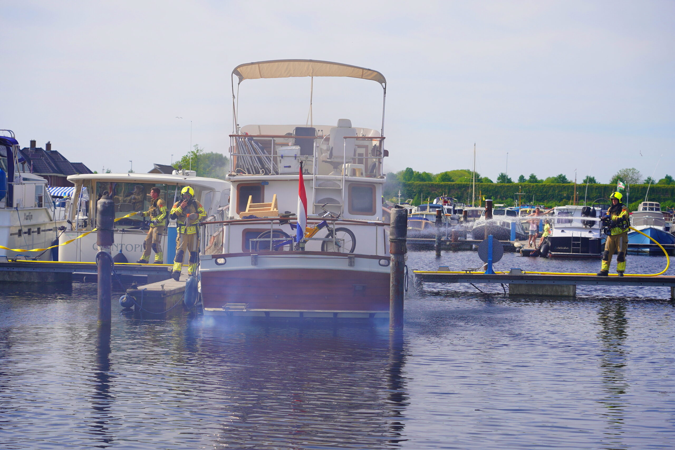 Er zijn geen gewonden gevallen. De brandweer bluste de brand vanaf een steigertje naast de boot. Het vuur was snel onder controle. Waarom er brand uitbrak op het schip wordt nog onderzocht.