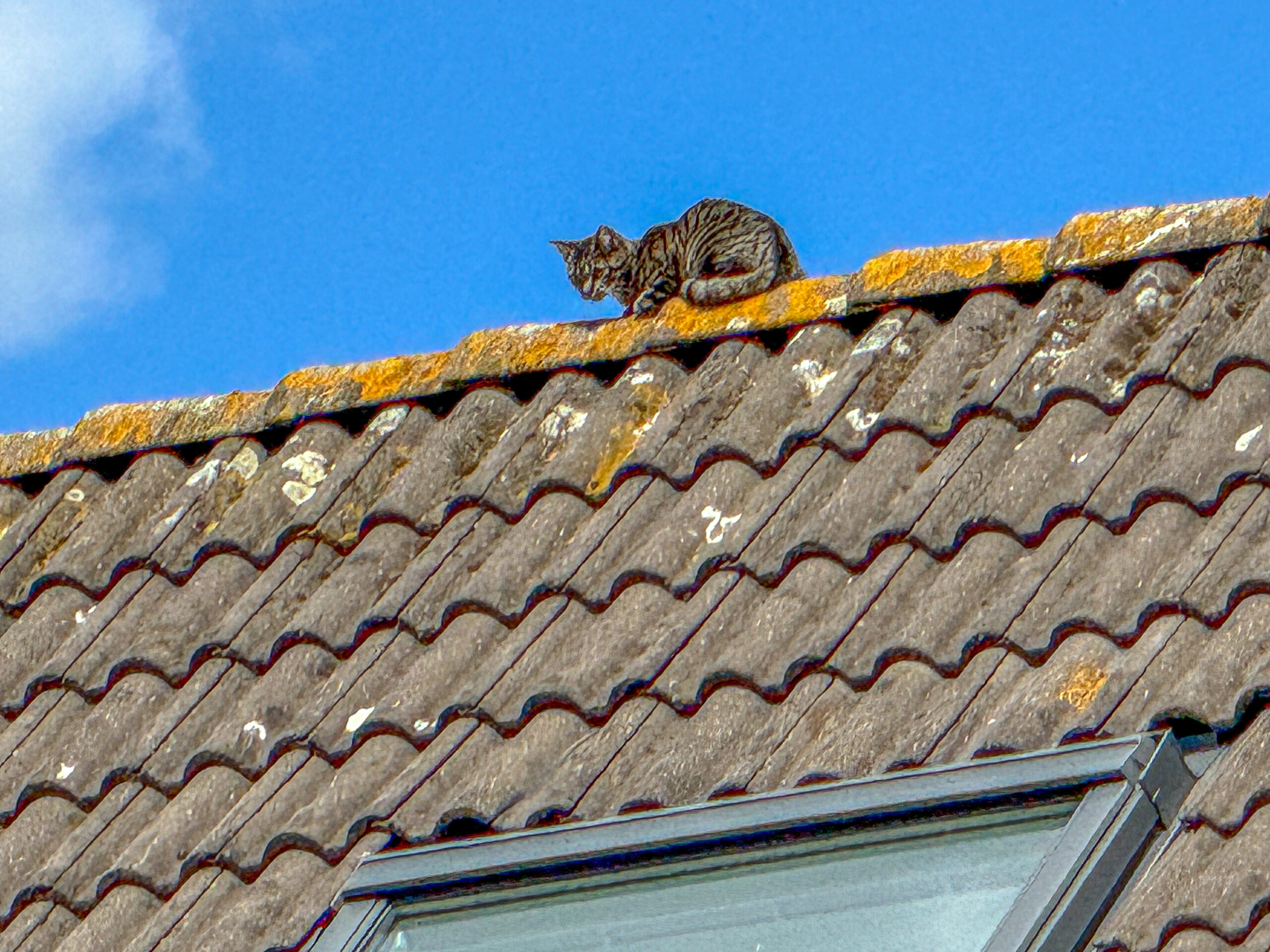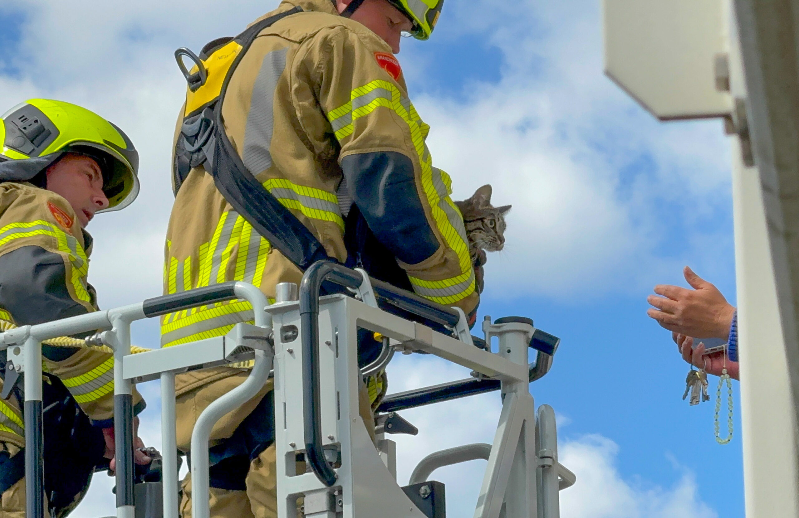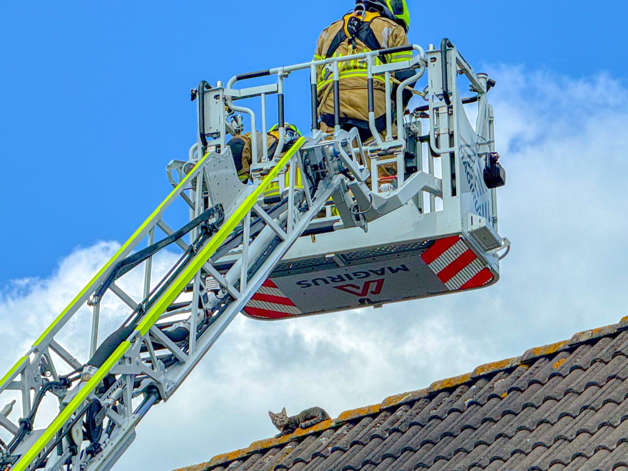 Nadat het de eigenaar niet lukte om zijn huisdier van het dak te krijgen, belde hij de brandweer. Deze hebben de kat, met hulp van een ladderwagen, uit de benarde positie bevrijdt en teruggegeven aan de ongeruste eigenaar.
