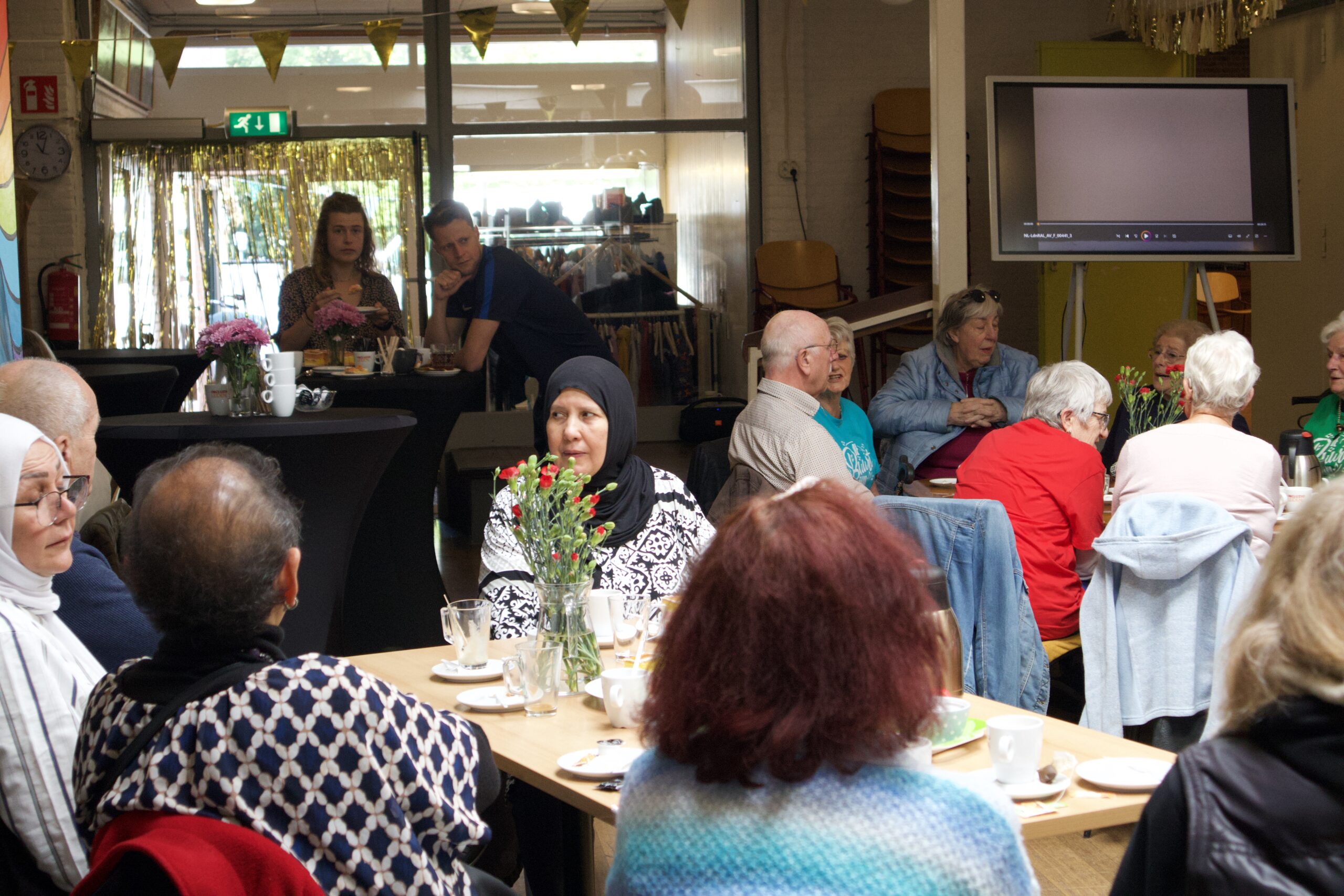 Onder de bezoekers waren ook enkele oude bekenden. Aafje Nieuwenburg en Franz Bronsgeest, beiden jarenlang vrijwilliger, zaten aan een lange tafel te kletsen en foto’s te bekijken. Nieuwenburg liet beelden zien van kinderkampen die ze in het verleden organiseerde. “Het was een ontzettend leuke tijd”, zegt ze. Tien jaar lang was ze actief in het buurthuis. Door een verhuizing naar de Stevenshof raakten ze de binding met de wijk kwijt. “Dat vinden we allebei nog steeds jammer”, voegt Bronsgeest toe.