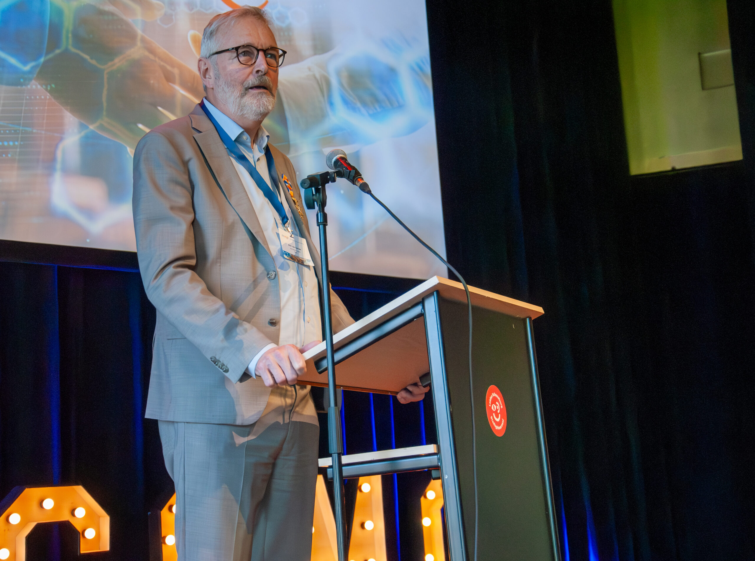 Hoogleraar Klinische Neuropsychofarmacologie Joop van Gerven is vrijdag 9 mei tijdens zijn afscheidssymposium in de Leidse Stadsgehoorzaal verrast met een koninklijke onderscheiding. Burgemeesters Jan van Zanen (Den Haag) en Nadine Stemerdink (Voorschoten) reikten hem de titel van Officier in de orde van Oranje-Nassau en de versierselen uit. “Ik had het echt niet verwacht”, glundert Van Gerven.
