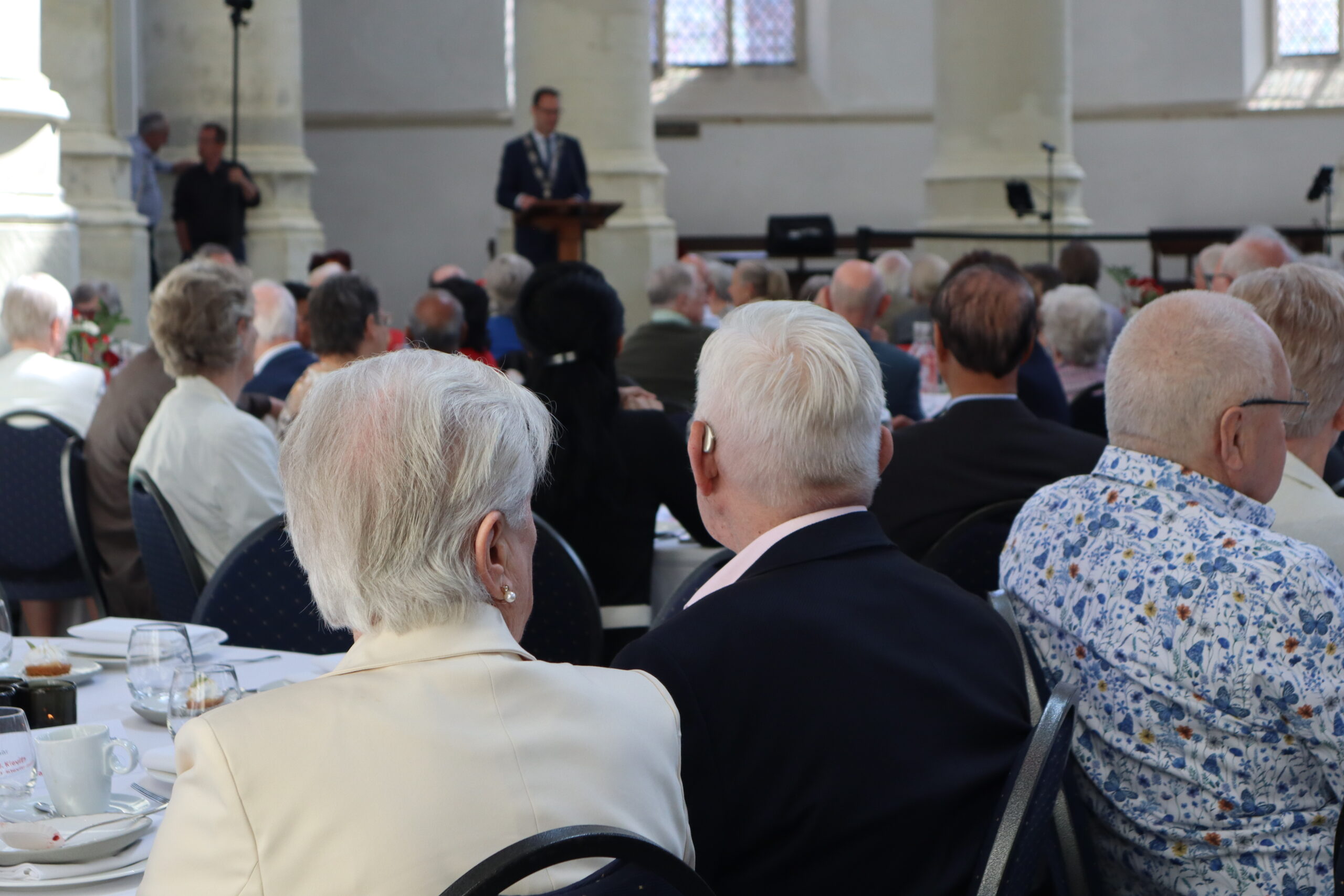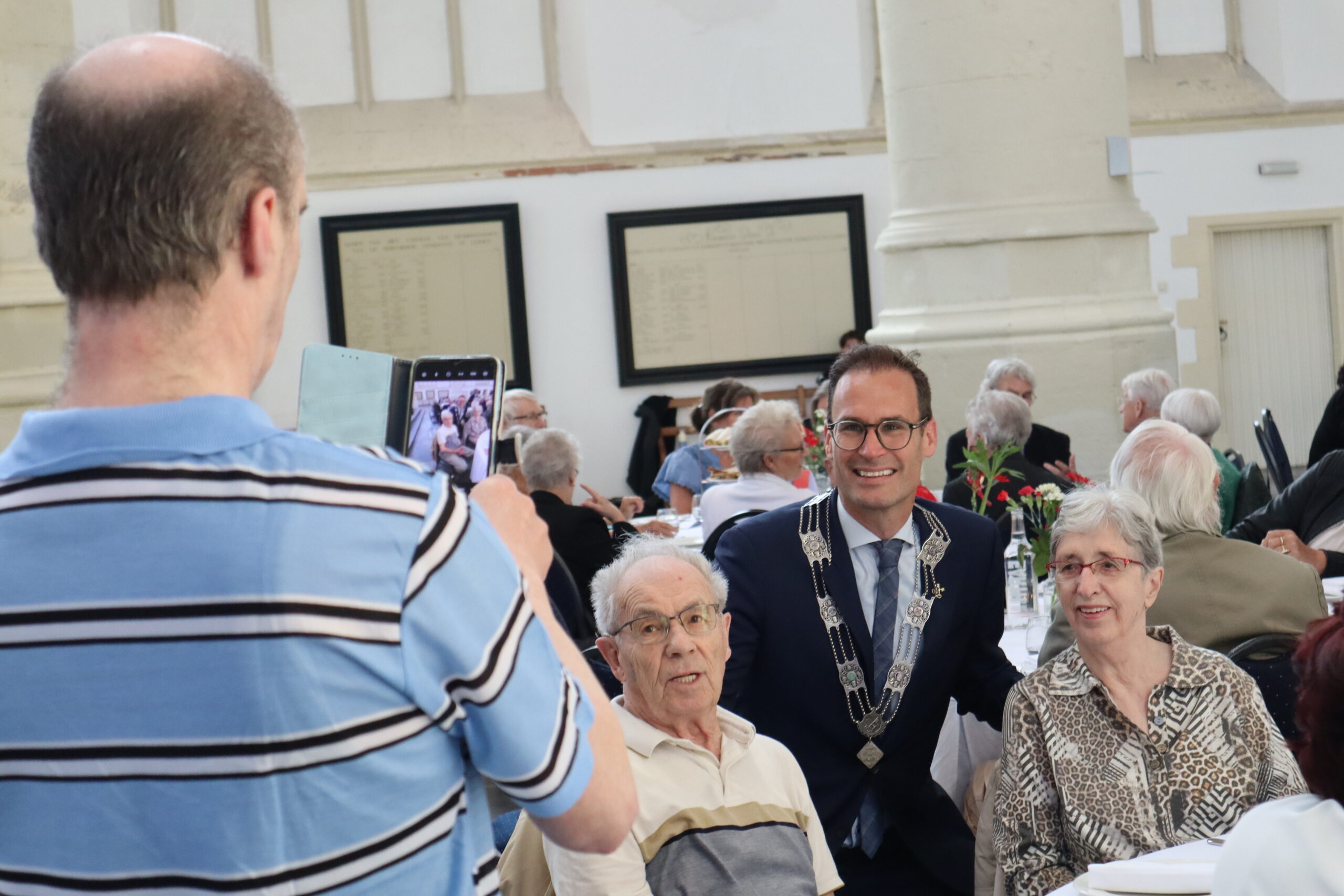 De jubilerende echtparen — waarvan de meesten zestig en sommigen zelfs zeventig jaar getrouwd zijn — werden ontvangen met koffie, gebak en een feestelijke lunch. Burgemeester Peter Heijkoop heette de gasten welkom: “Wat een vitale groep. Volgens mij worden ouderen steeds fitter”, grapte hij, waarna hij stilstond bij de kracht van langdurige relaties.