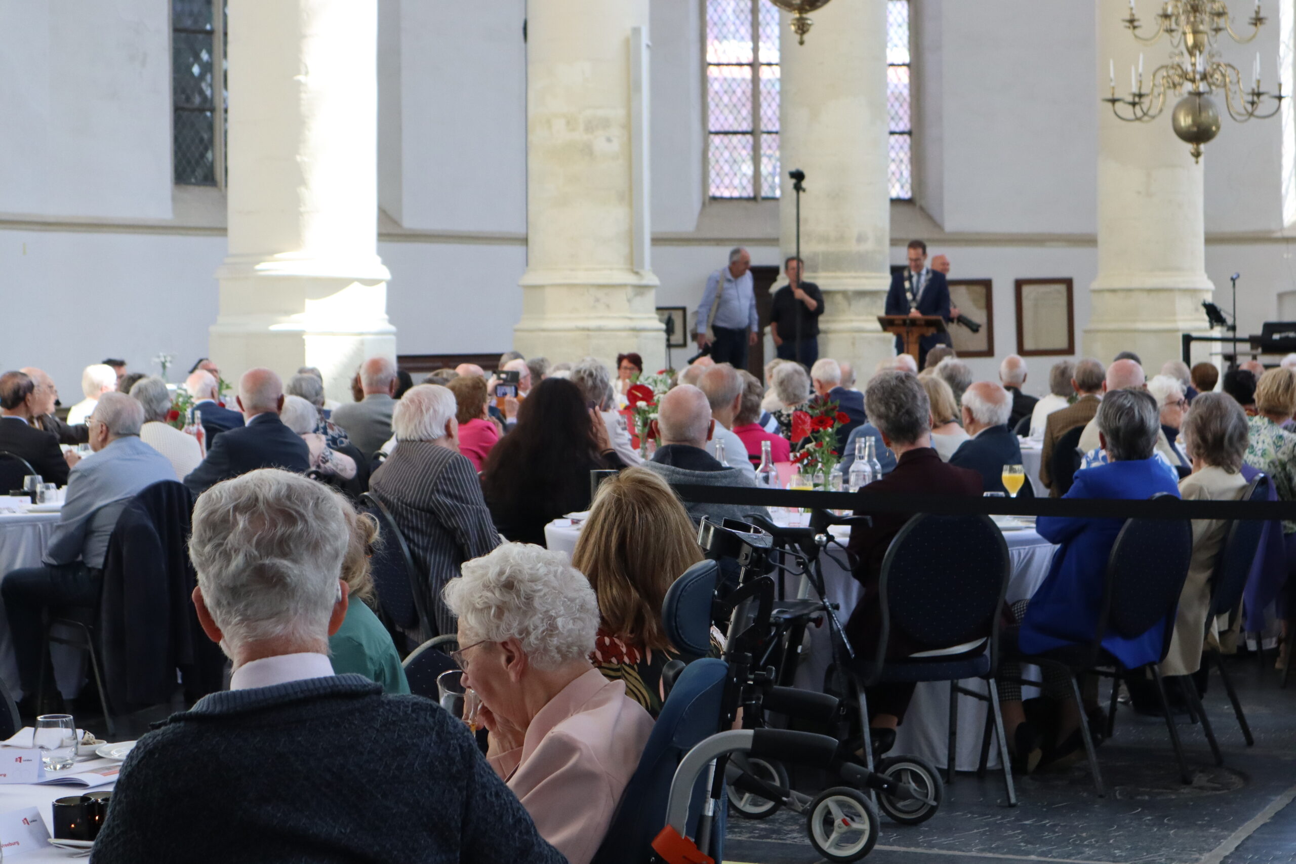 De sfeer in de kerk was warm en gemoedelijk. Er werd gelachen om oude anekdotes, zachtjes meegezongen met bekende liedjes en teruggekeken op jaren van liefde, strijd, groei en trouw. “Blijf niet te lang boos, blijf optimistisch en laat elkaar niet los”, vatte de burgemeester de levenslessen van de aanwezige stellen samen.