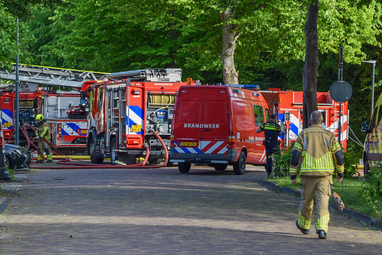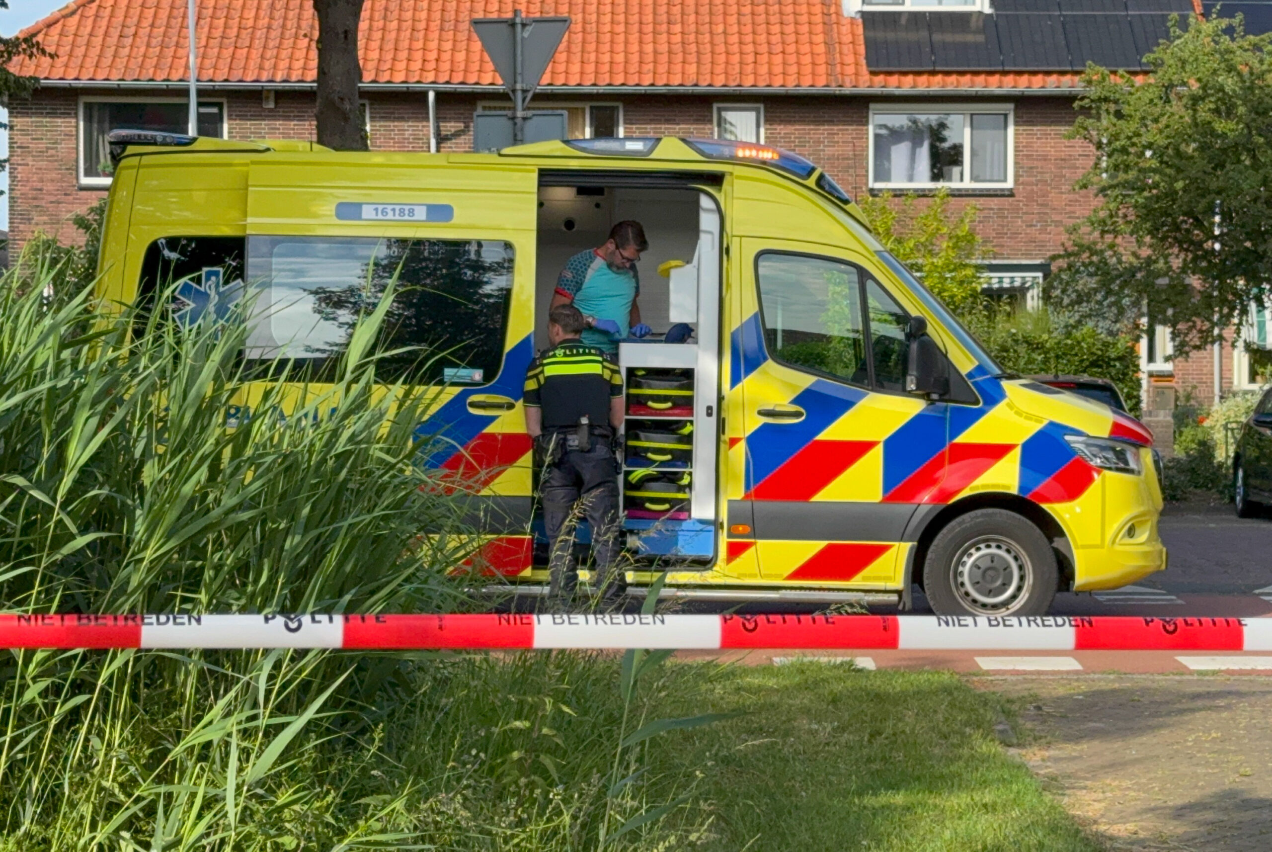 De beneden verdieping en de eerste verdieping van de woning stonden aan het begin van de avond volledig in brand. Het is niet bekend waarom de bewoner mee moest naar het ziekenhuis.