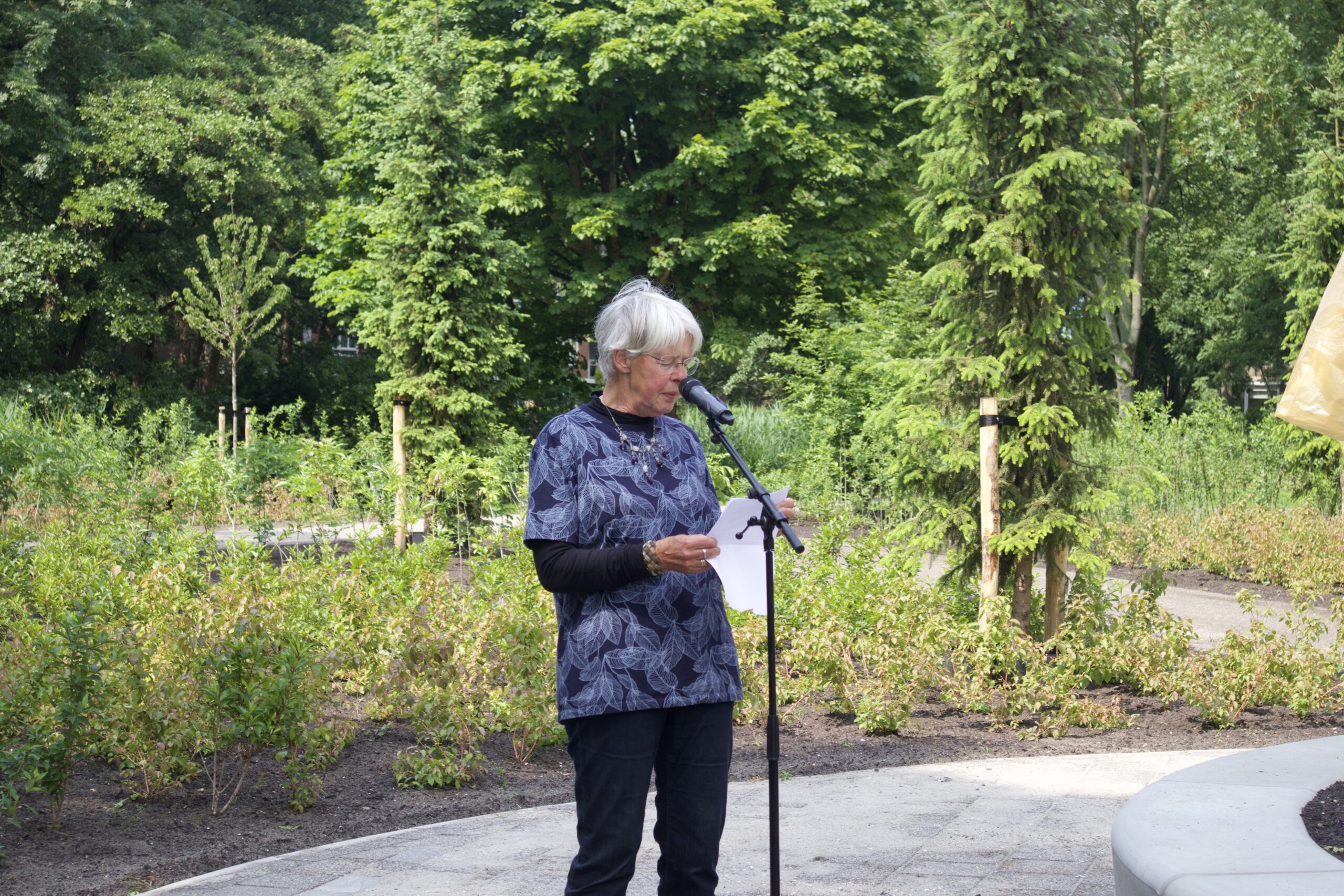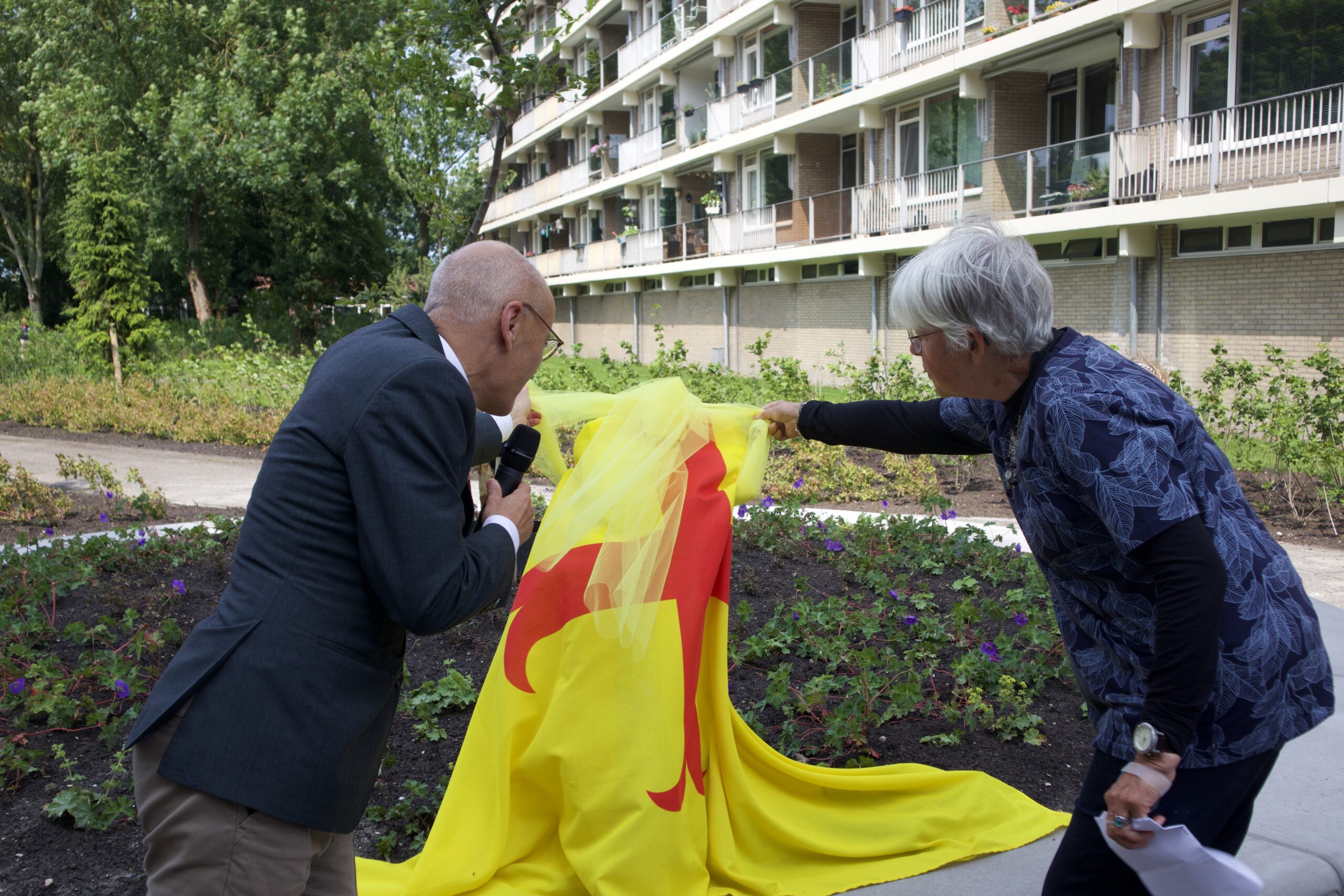 Het pleintje waar de boom nu staat, kreeg voorafgaand aan de onthulling een flinke opknapbeurt. “Het was eerst een groot grijs plein”, vertelt een buurtbewoner. “Ik ben ontzettend blij dat het nu vooral groen is en er zoveel mooier uitziet — zeker omdat ik er ook op uitkijk.”