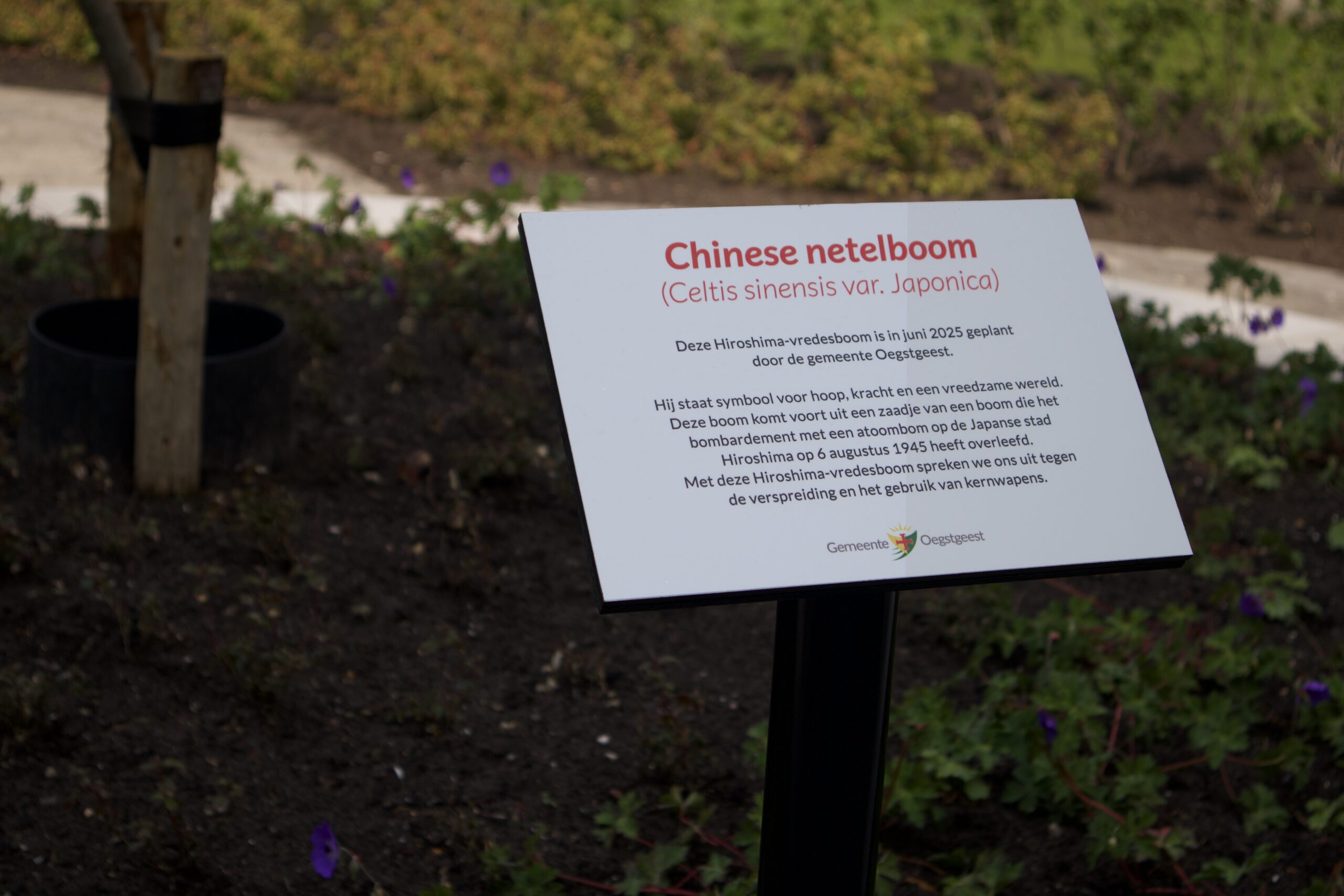 Verspreid over Nederland worden Hiroshimabomen geplant als vredessymbool. In steden als Leiden staat al zo’n boom. De boom in Oegstgeest is inmiddels de 23e in het land. Er staan nog drie nieuwe aanplantingen op de planning.