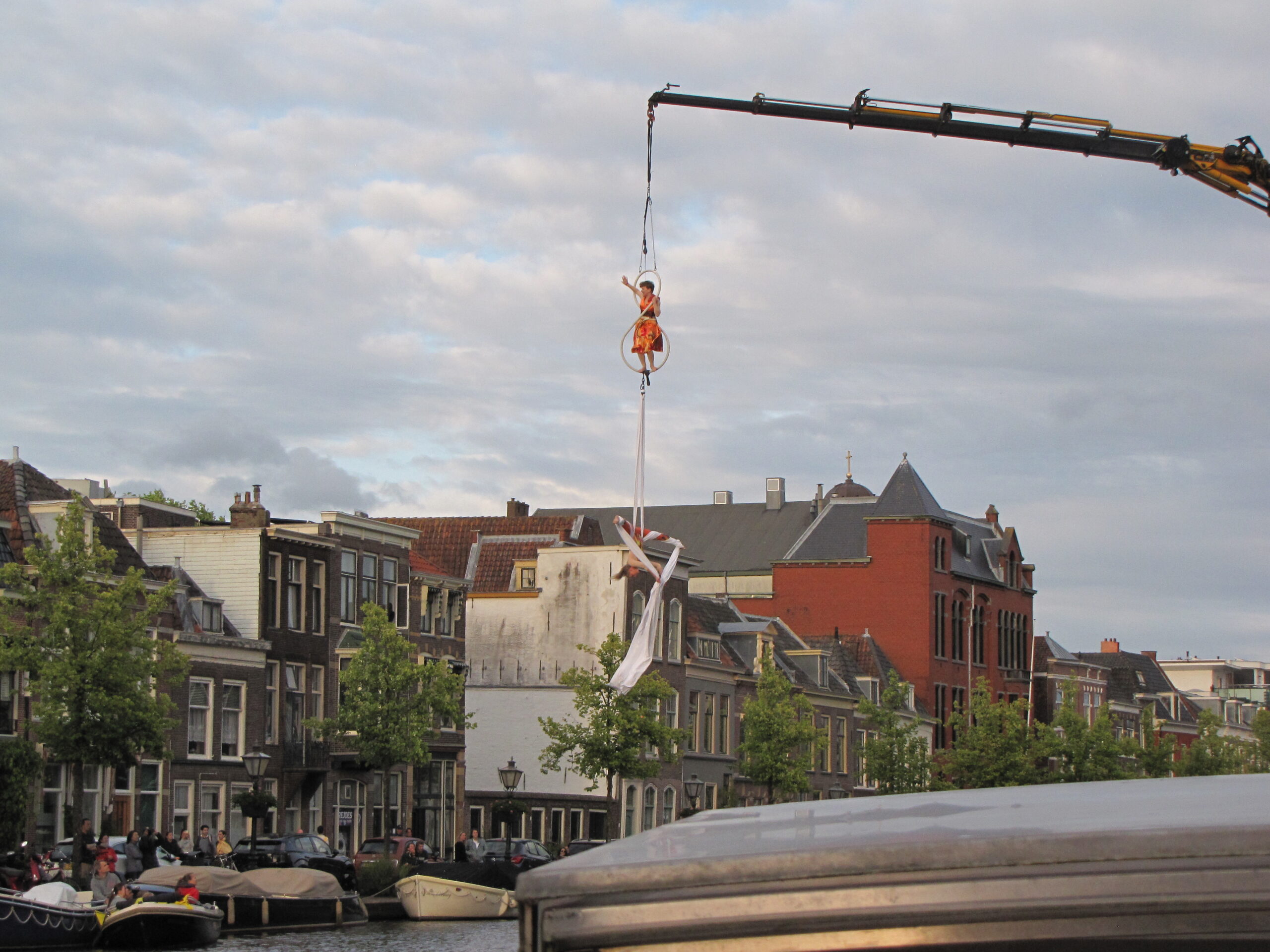 De 15e editie van Schemerstad werd vrijdag 6 juni spectaculair geopend. Aan de Apothekersdijk/Boommarkt werd een grootse luchtacrobatische performance gegeven door Sylvia Idelberger van Flying Artwork met live zang van Linda Jacobsen.
