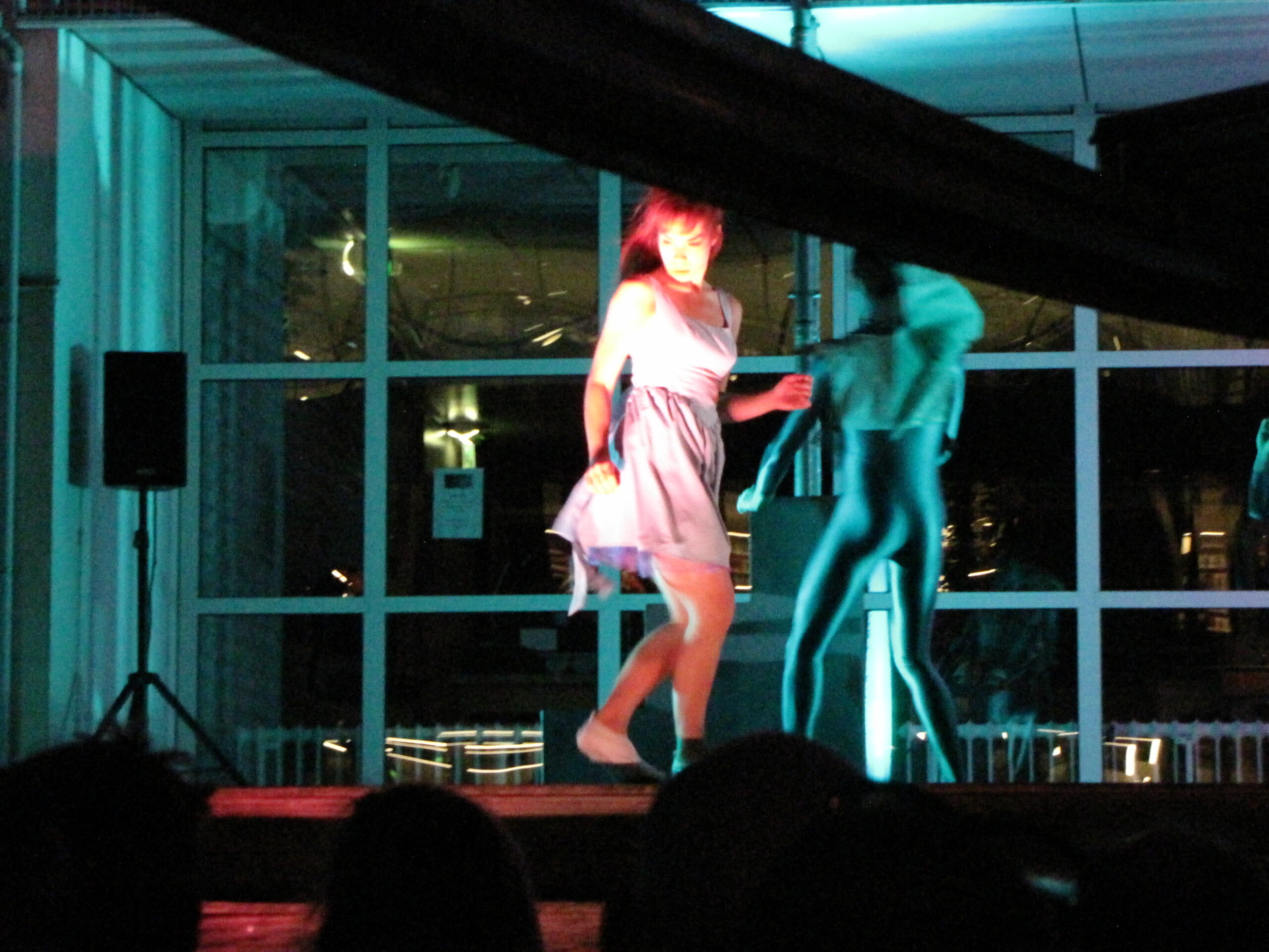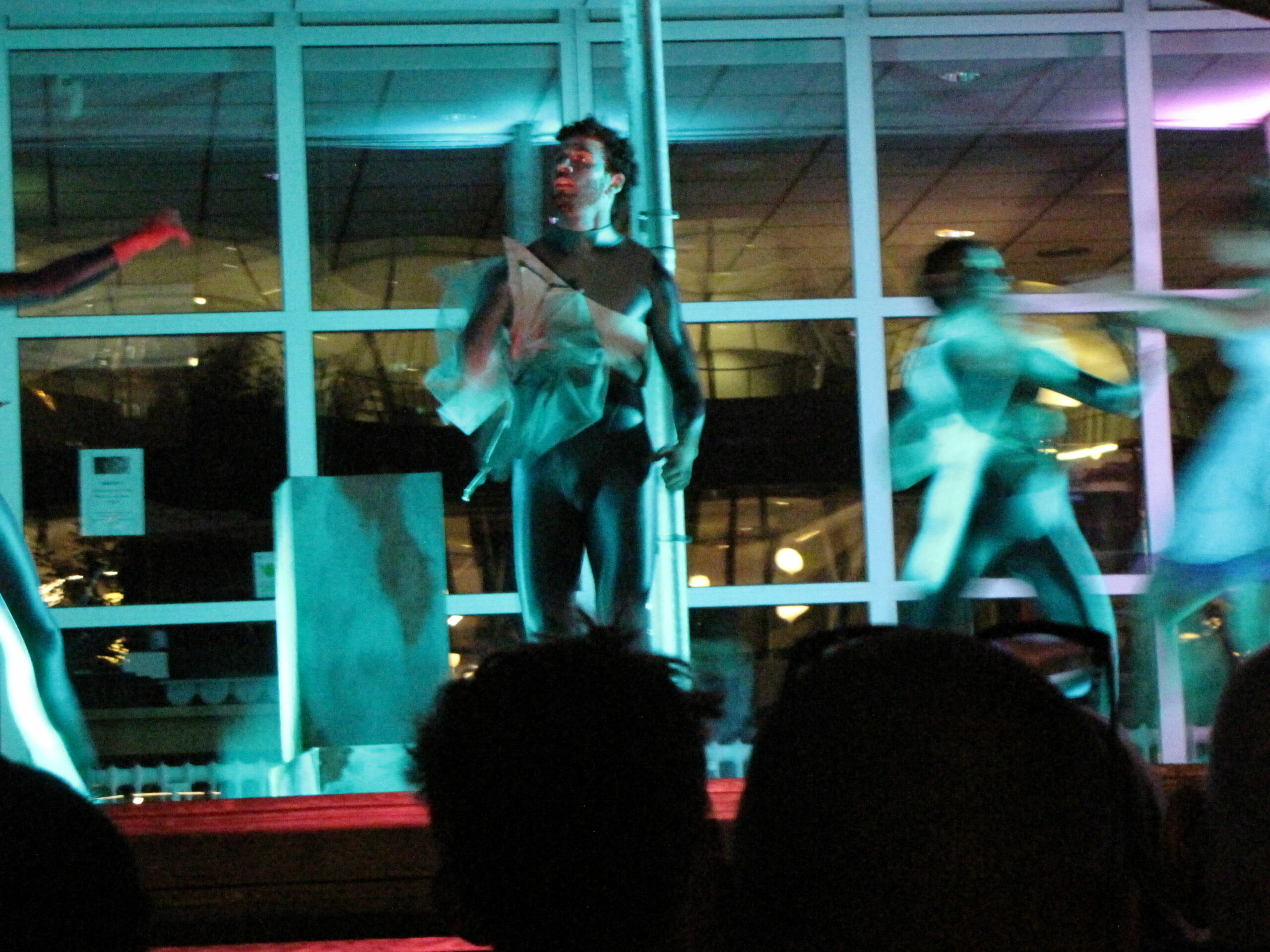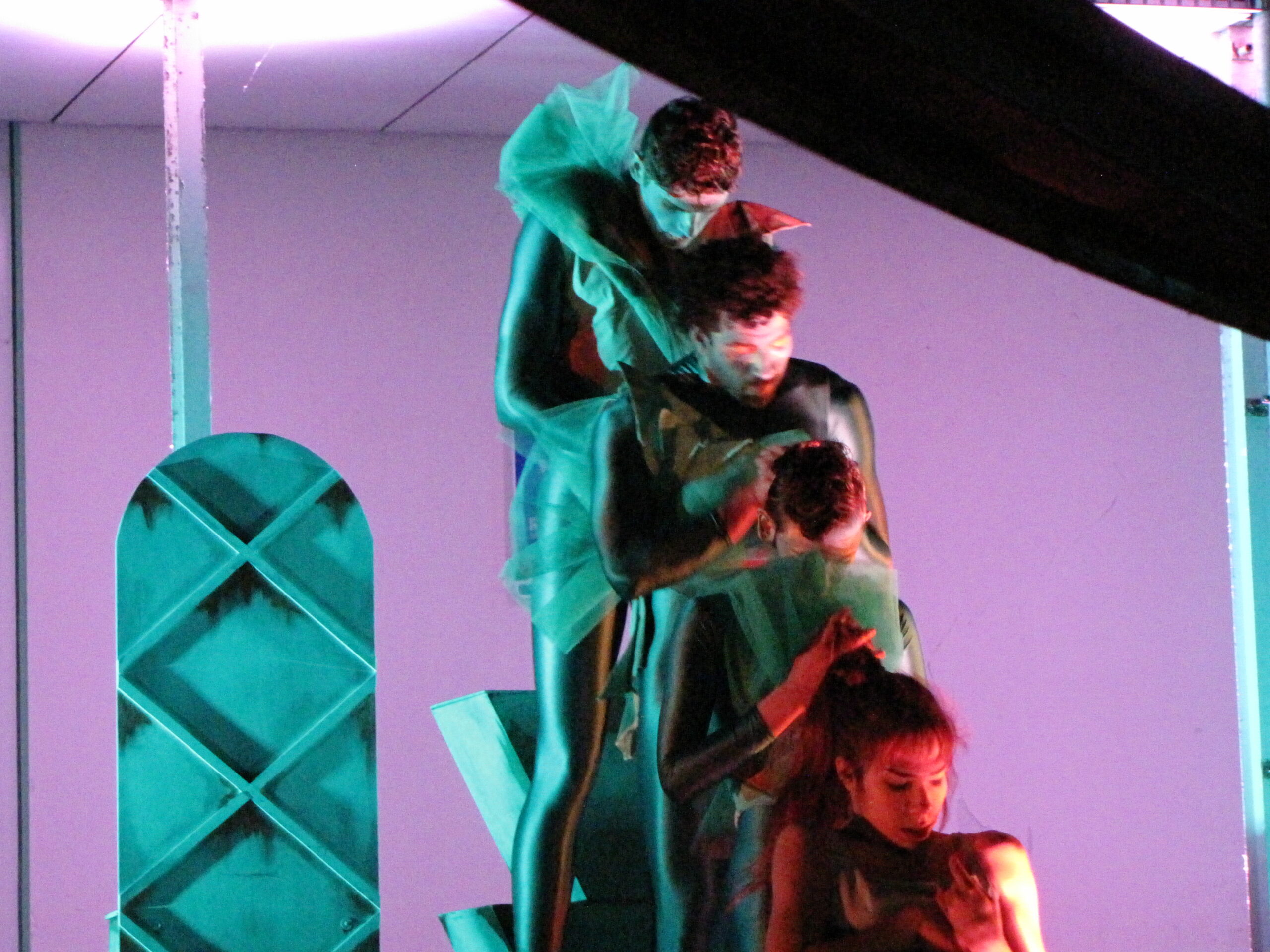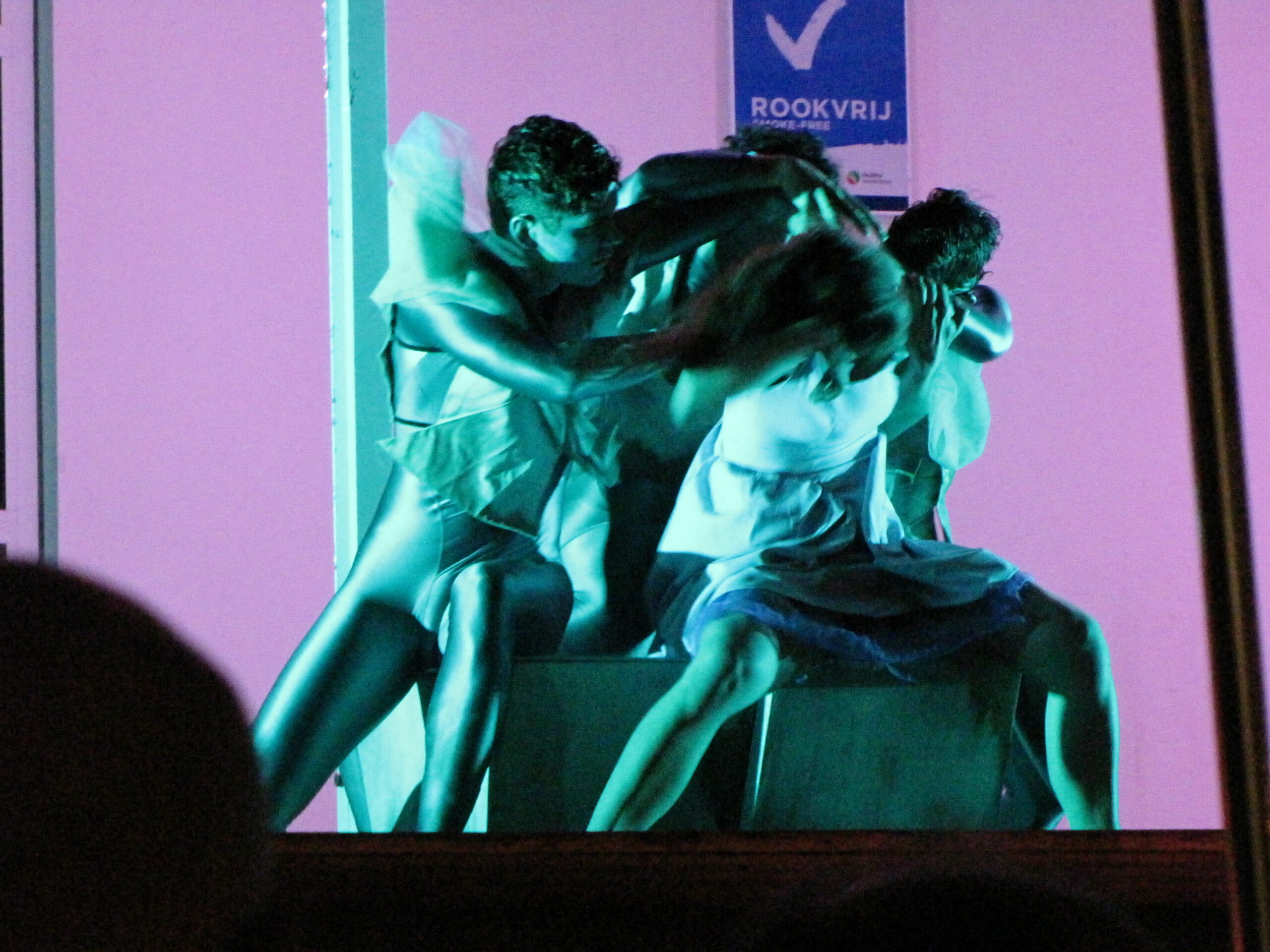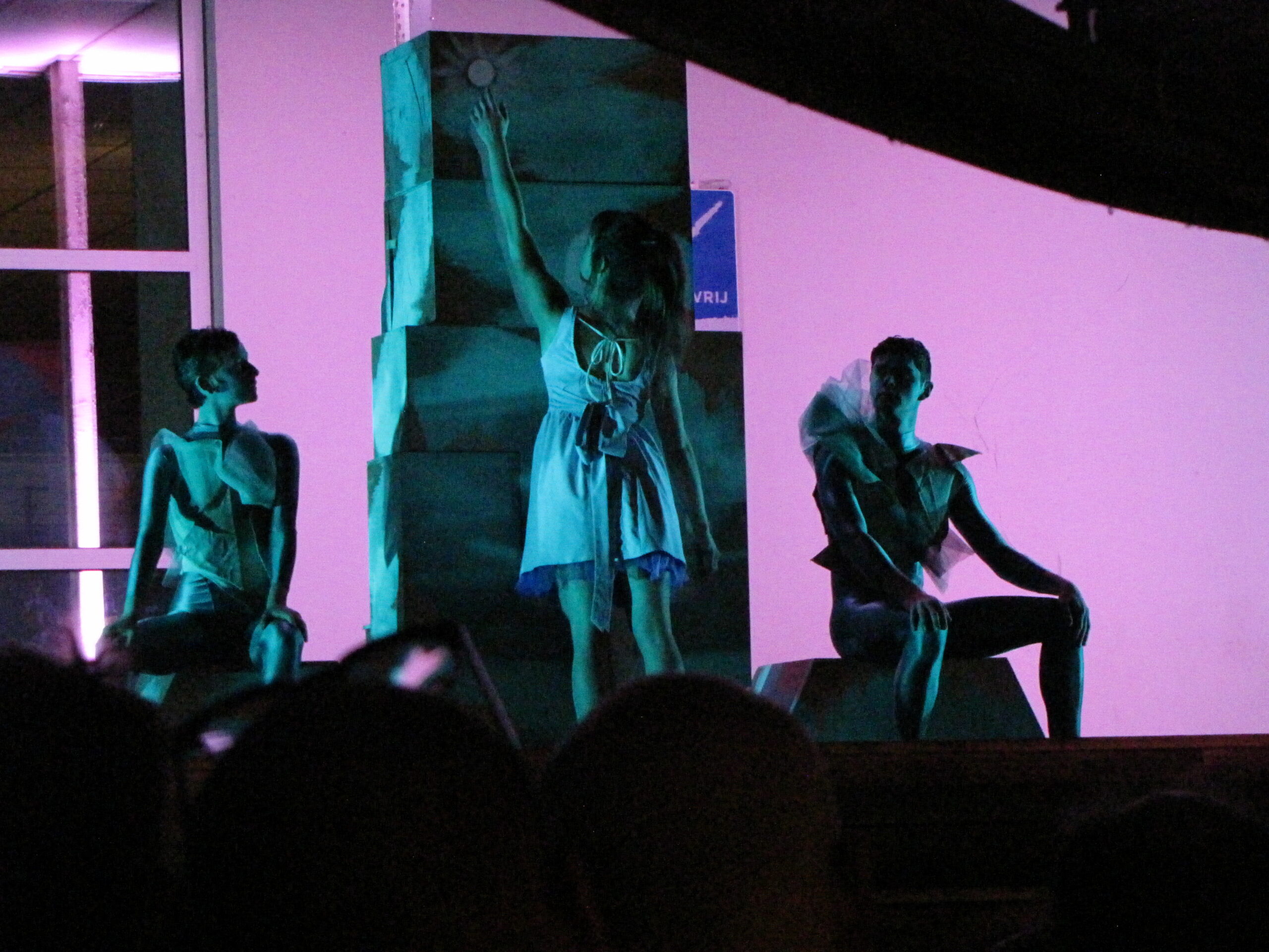 Voor ‘onze boot’ de laatste halte. Een optreden van Creative Company The Kitchen met ‘Monument.’ Dans- en bewegingstheater dat het verhaal vertelt van een prinses die al jaren in afzondering leeft, opgesloten in een raadselachtig blokkig paleis. Ze was gewaarschuwd voor de grote gevaren van de buitenwereld en binnen de muren zou ze veilig zijn. Op een dag wint het verlangen het van de angst. Ze zet één stap naar buiten en niets is nog wat het lijkt. Wat volgt is een magische reis vol verwondering en verwarring. Met de verandering van de omgeving van de prinses, verandert ook haar zelfbeeld. Wat is echt en wat is illusie? Dans door Arturo Vargas, Danai Papadopoulou, Martijn Schipper en Paola Martire.