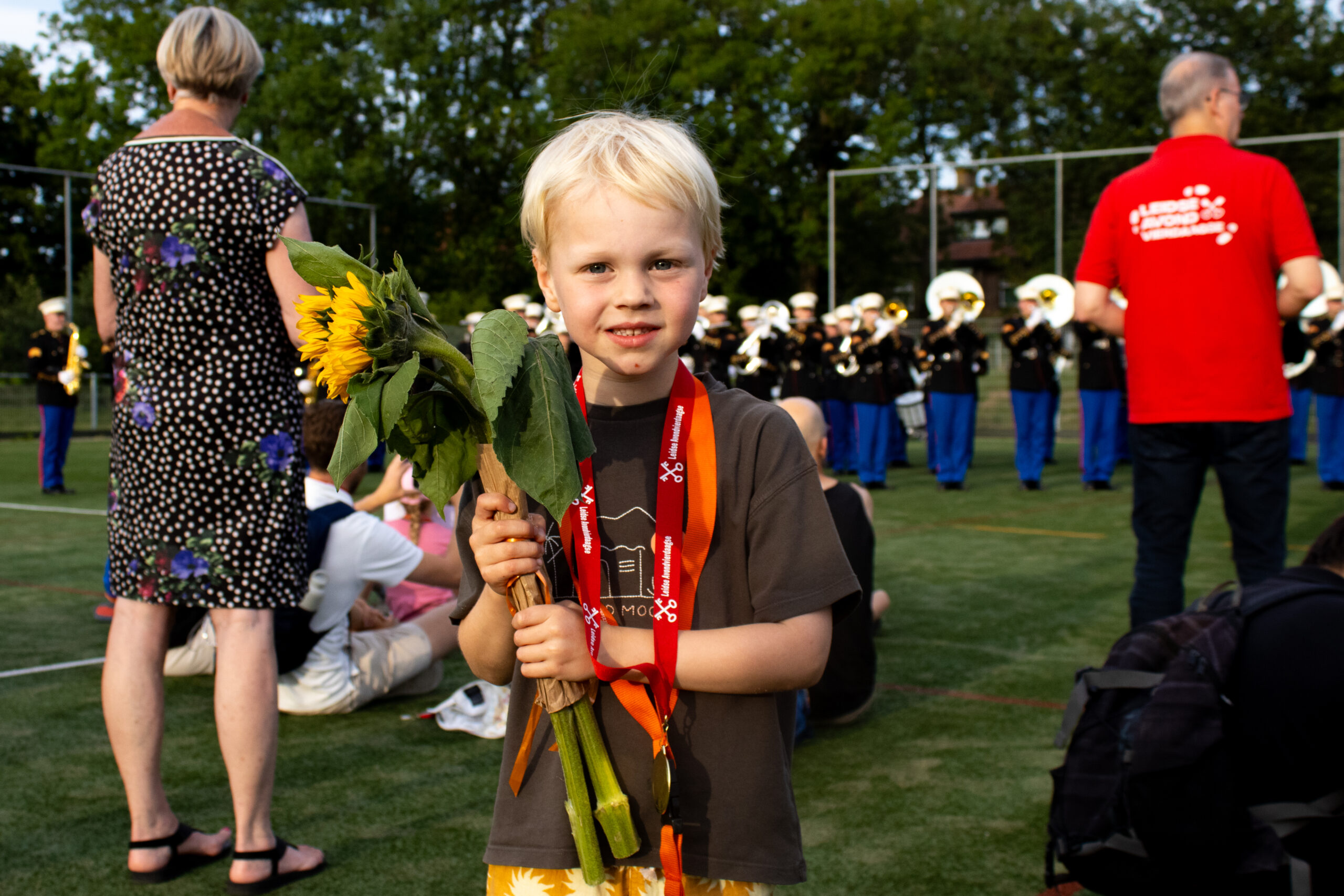 “Het was vooral erg druk”, vertelt organisator Jeroen Weijermars. Dankzij het mooie weer werd een extra grote opkomst verwacht. Onder begeleiding van het K&G liep de bonte stoet richting het finishterrein. “Voor de kinderen draait het maar om één ding: die welverdiende medaille”, zegt Weijermars lachend. Als hij het evenement in twee woorden moet samenvatten? “Domweg fantastisch.”