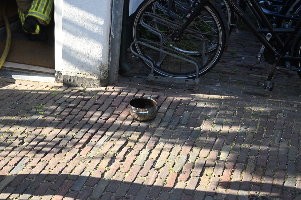 Een vergeten pan op het vuur heeft zaterdagochtend gezorgd voor flinke rookontwikkeling en stank in en rondom een woning aan de Narmstraat in Leiden. Door de pan uit de woning te halen en daarna goed te ventileren was de situatie snel onder controle.