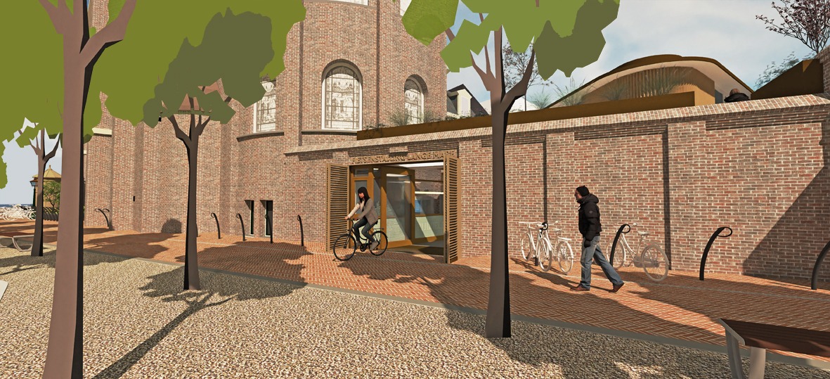 Uniek is dat op het dak van de fietsenstalling een nieuwe Romanuszaal komt met een sedumdak. Dit groene dak en grote plantenbakken rondom dragen bij aan biodiversiteit en geven het gebouw een aantrekkelijke uitstraling. Een lichtstraat langs de muur van het koor van de Hartebrugkerk zorgt voor voldoende daglicht in de fietsenstalling.