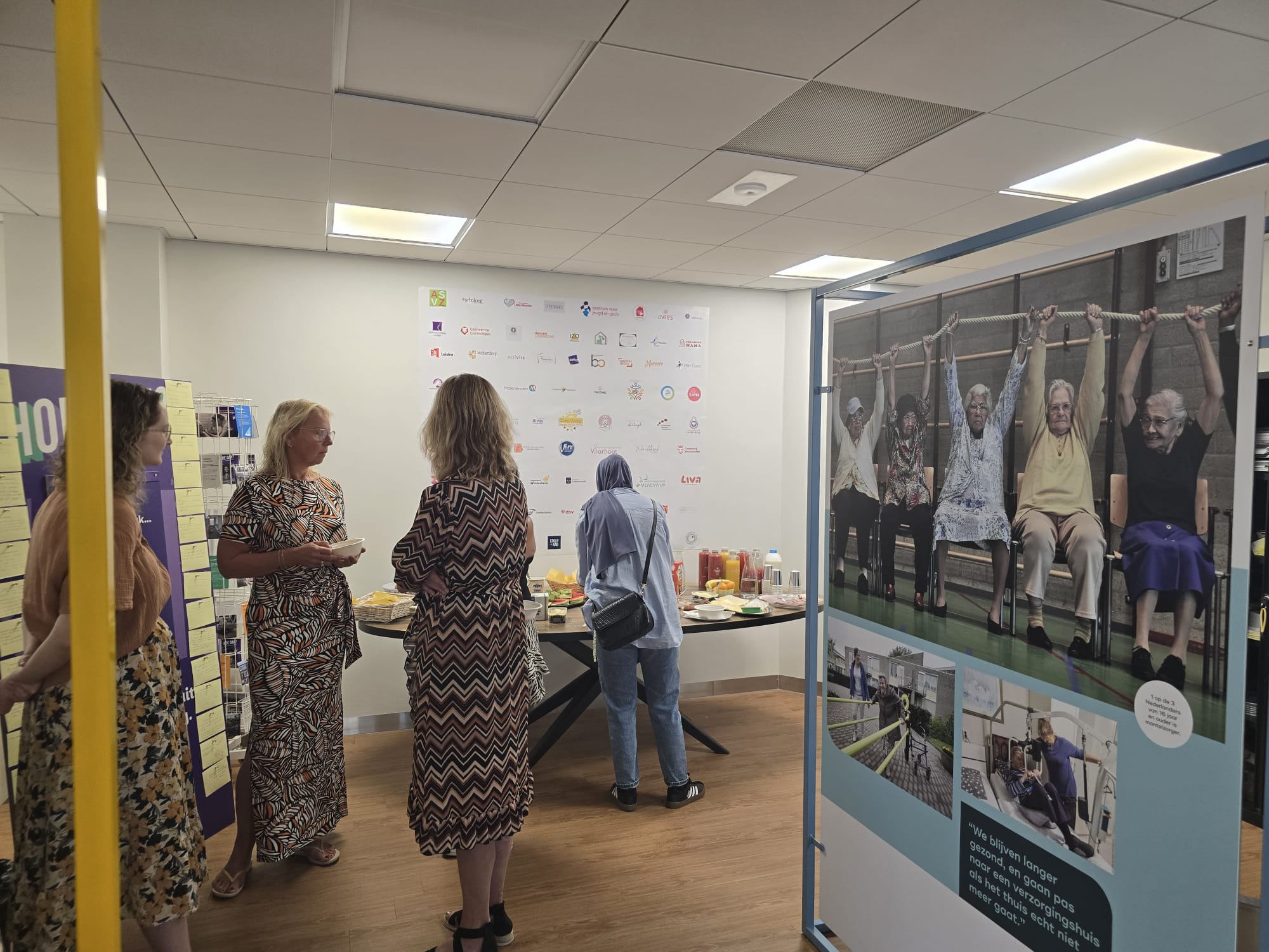 In de middag kwamen verschillende samenwerkingspartners langs voor de borrel. De bezoekers konden daarnaast een foto-expositie bekijken over de toekomst van werken in zorg en welzijn of deelnemen aan een ouderdomssimulatie. “Ook is er voldoende tijd om elkaar te ontmoeten en samen te praten over de zorg en haar toekomst.”