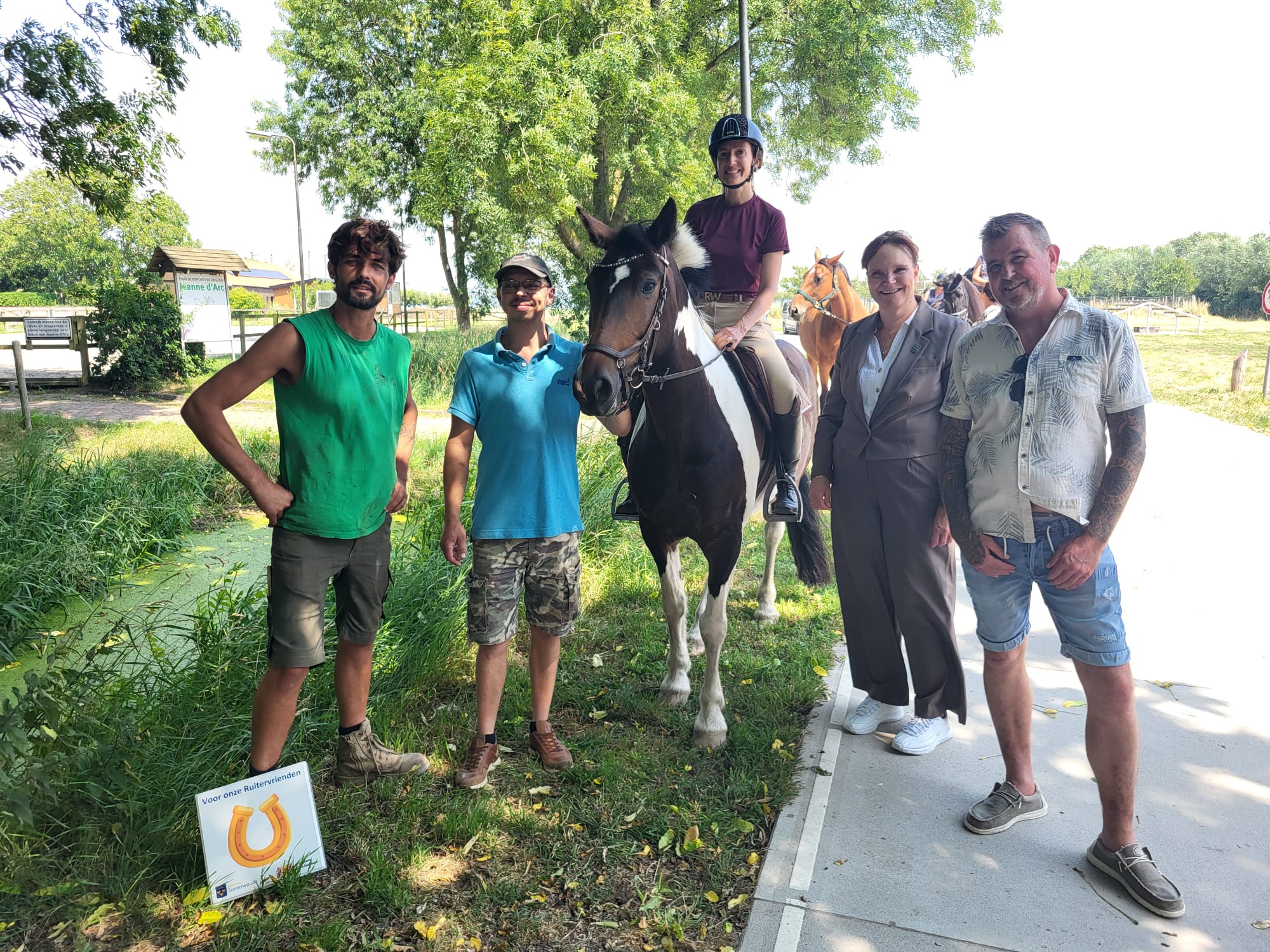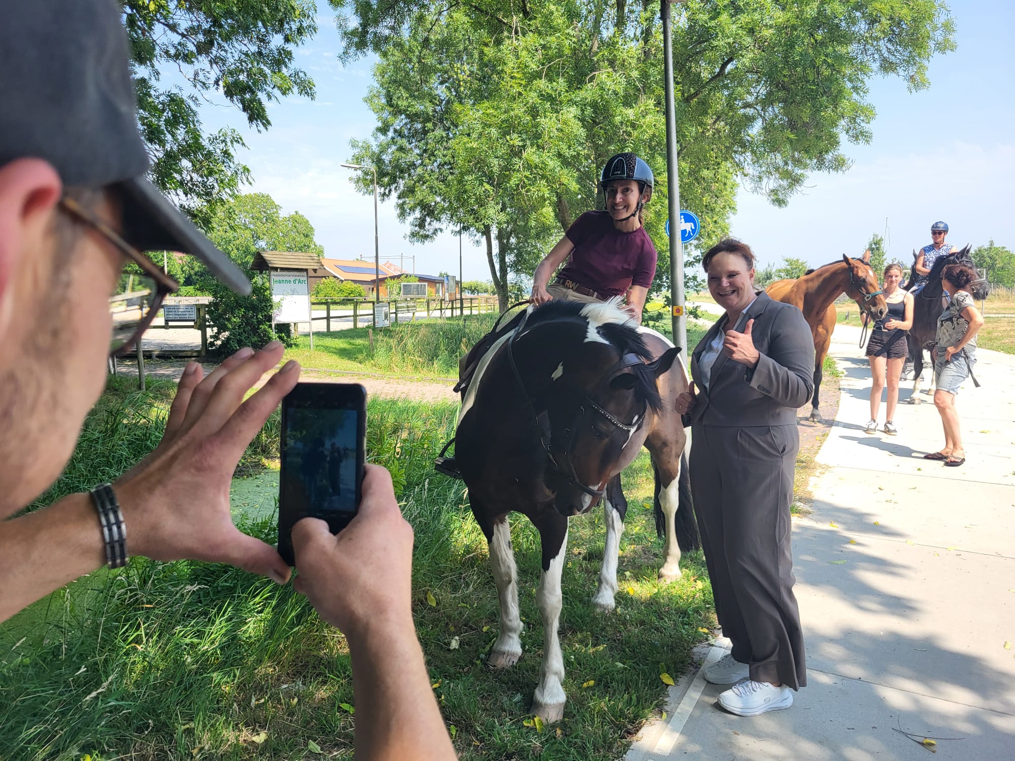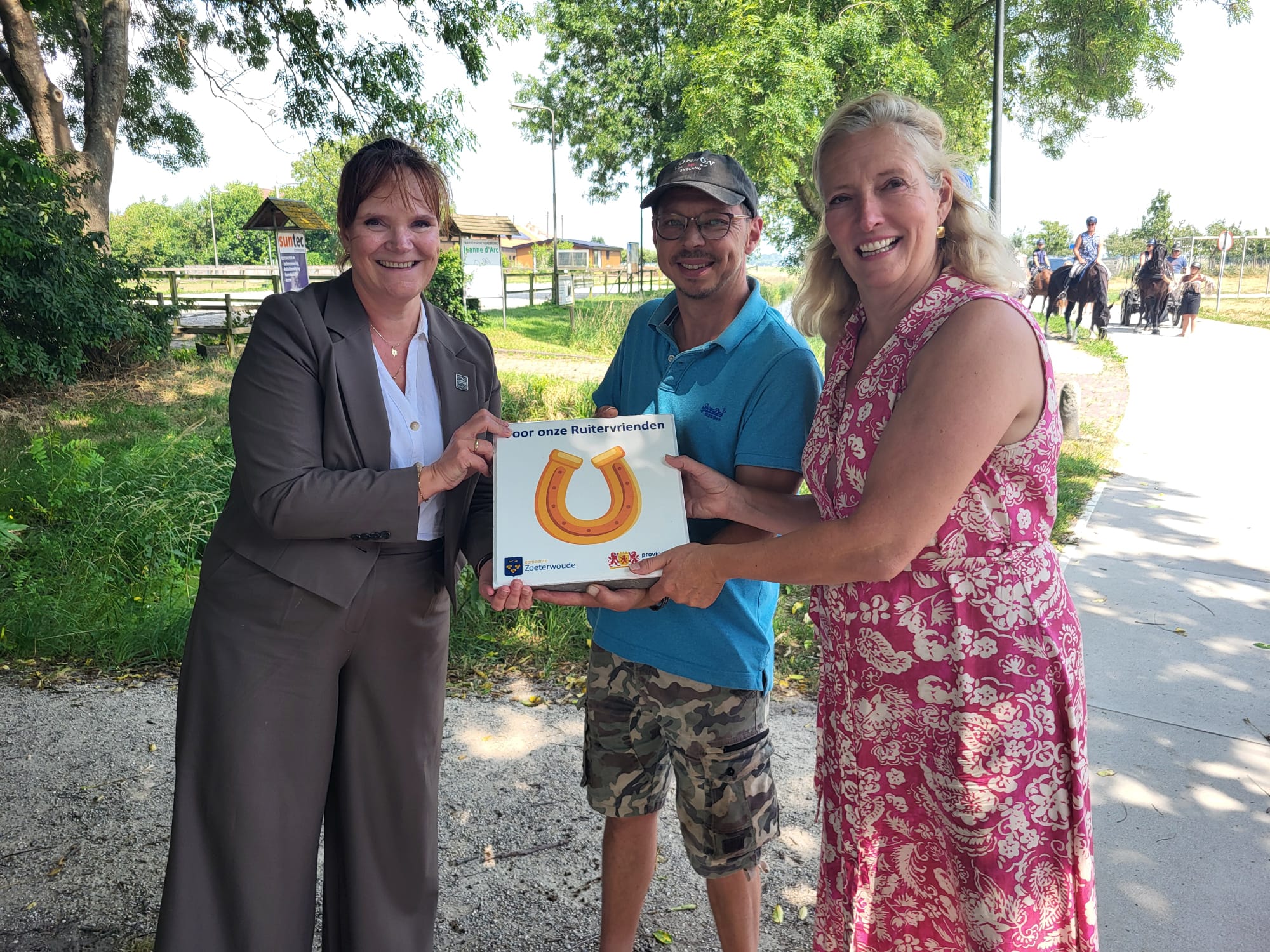 Wethouder Angelique Beekhuizen nam het pad, samen met een groep ruiters en hun paarden het ruiterpad officieel in gebruik. En de wethouder kwam niet met lege handen. Namens de gemeente overhandigde Beekhuizen twee tegels met daarop onder andere een hoefijzer en de tekst ‘Voor onze Ruitervrienden’.