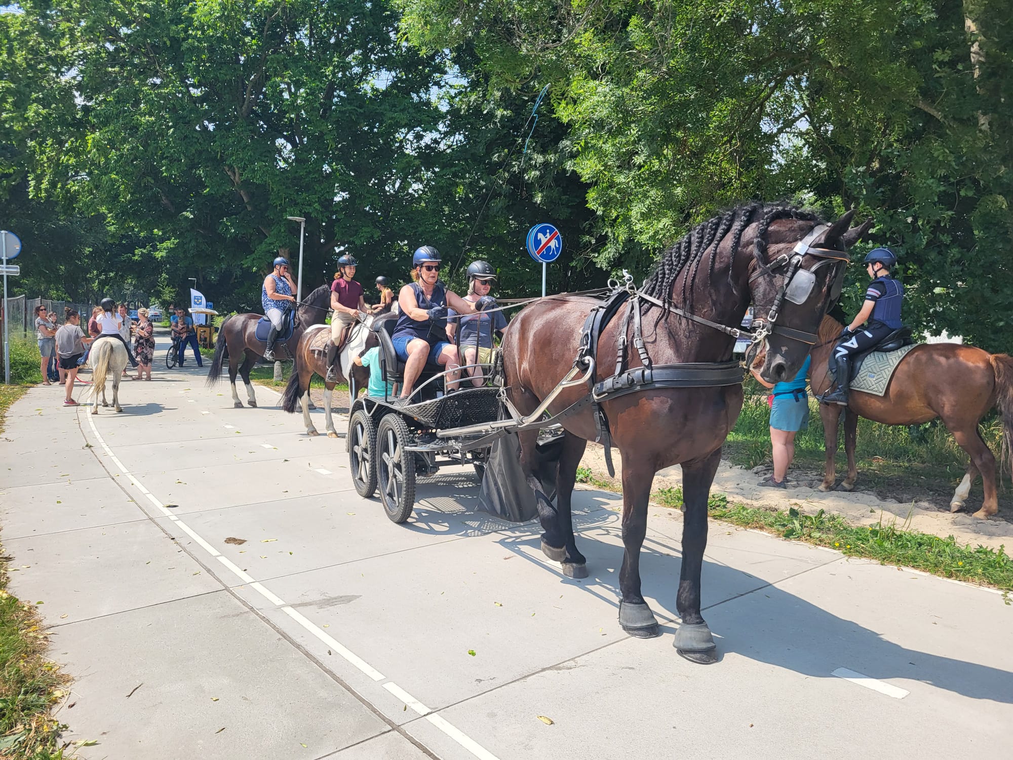 Onder het genot van een waterijsje (voor de ruiters) werd de opening van het ruiterpad extra feestelijk gevierd.