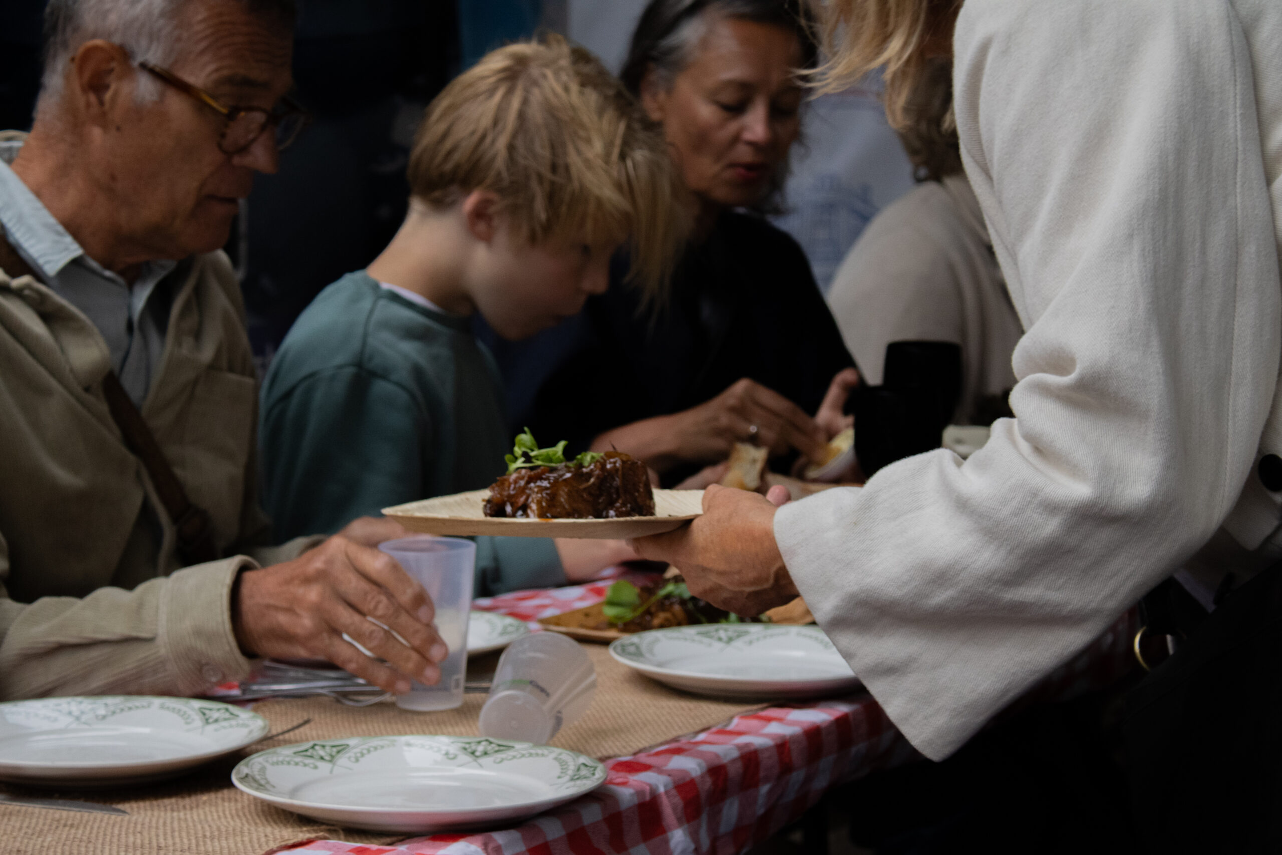 De geur van gegrild vlees, Franse muziek op de achtergrond en één lange tafel langs het water. Leiden Culinair vond weer plaats, maar deze editie in een vernieuwd jasje. Leiden kon weer genieten van een hapje en een drankje aan de langste tafel van Leiden. Ondanks de regen wisten veel bezoekers de weg te vinden naar de sfeervol aangeklede Boisotkade, tussen De Vriend en Petit Café Anna et Fred. Het evenement maakt onderdeel uit de Lakenfeesten, die dit weekend plaatsvinden.