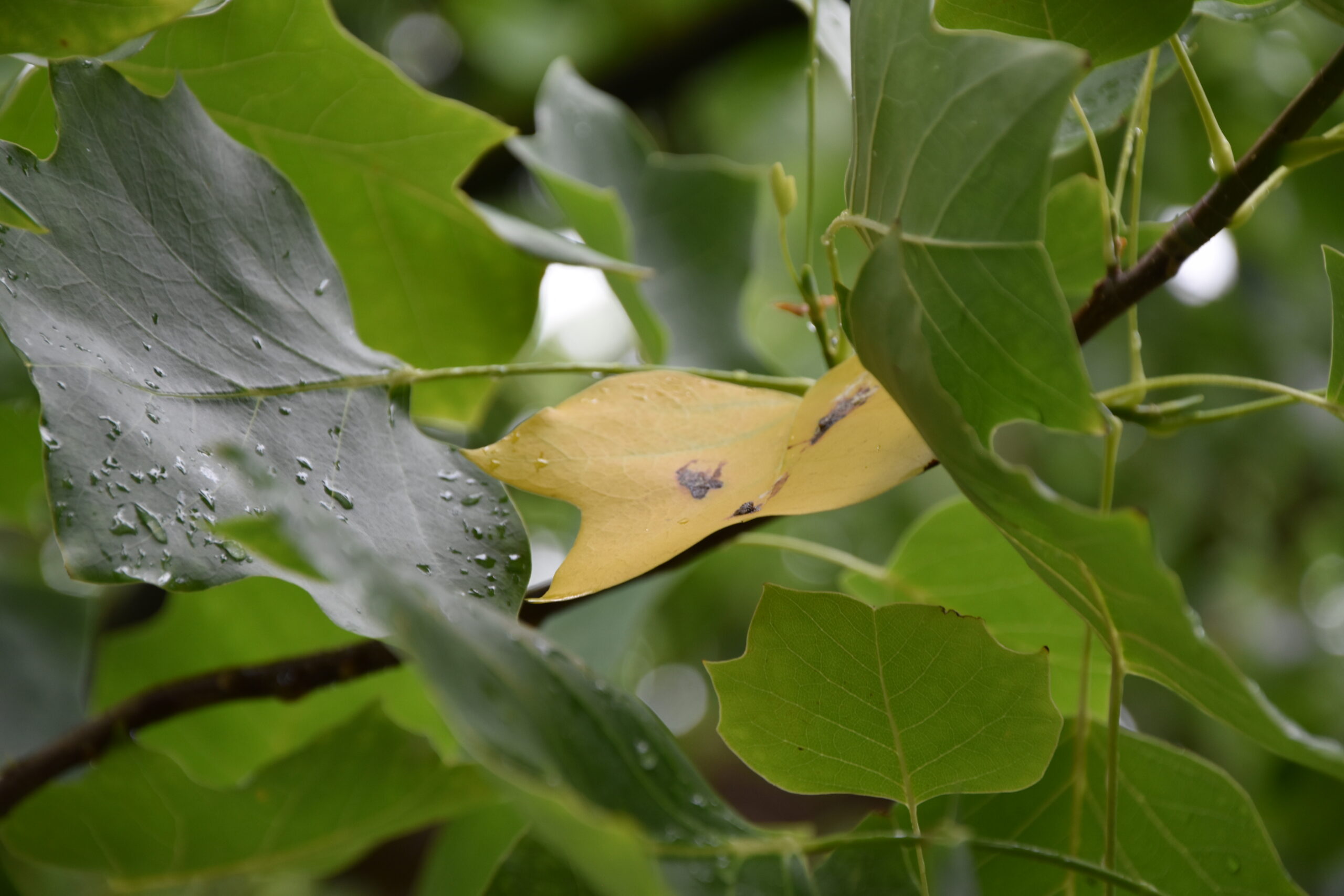 Deze tulpenbomen vormden de inspiratie voor Wolkers’ laatste grote schilderwerk uit 2006: het grote gele doek dat nu te bewonderen is in De Lakenhal. De cadmiumgele kleur van de herfstbladeren is duidelijk te herkennen in dit kunstwerk.
