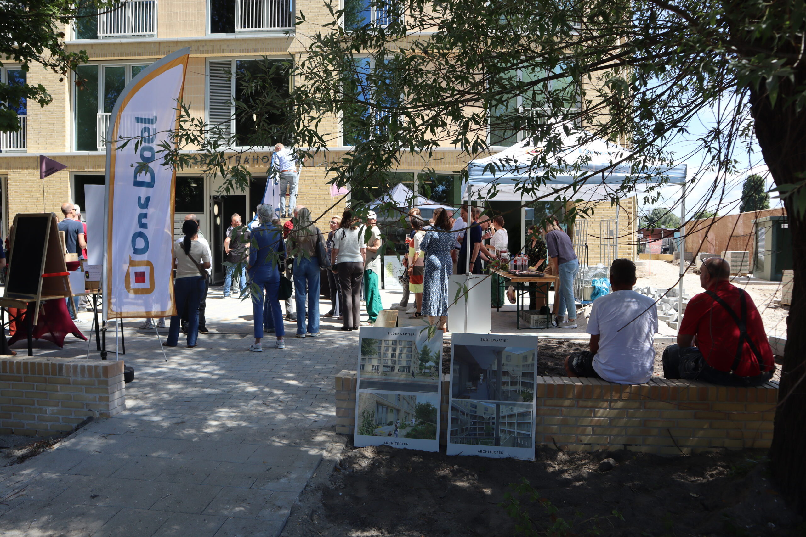 Op het voorplein van het hof kwamen tientallen mensen bijeen om de oplevering te vieren. Onder het genot van een hapje en een drankje maakten bezoekers kennis met elkaar en met het gebouw. Tijdens rondleidingen kregen ze een kijkje in de verschillende appartementen: van eenkamerwoningen tot ruime vierkamerappartementen.