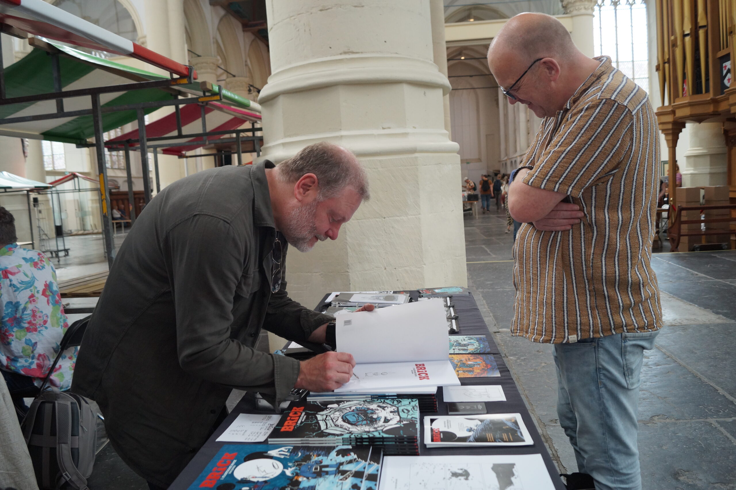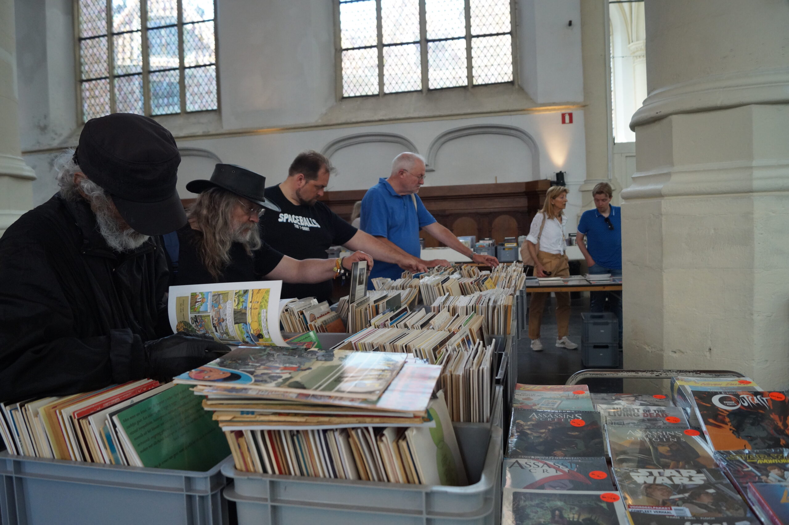 De Hooglandse Kerk stond vrijdag in het teken van strips. De eerste dag van de grote stripbeurs, het slotstuk van het Leids Strip Festival, kende een levendige start. Liefhebbers van strips konden terecht voor signeersessies, boekpresentaties en ontmoetingen met stripmakers.