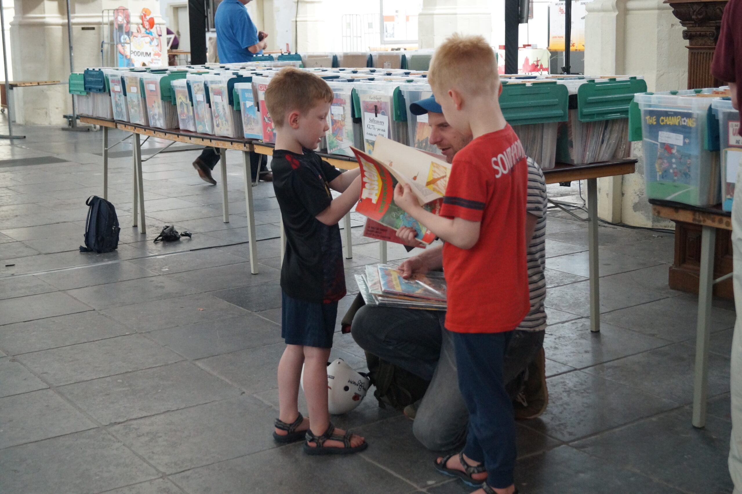 “We waren nog nooit bij zoiets geweest. Het is leuk om de afwisseling te zien van de makers en hun eigen werk, maar ook de handelaren die oude strips aanbieden,” zeggen twee enthousiaste bezoekers. “Het is een goede manier om nieuwe dingen tegen te komen, de makers te ontmoeten en prenten te krijgen.”