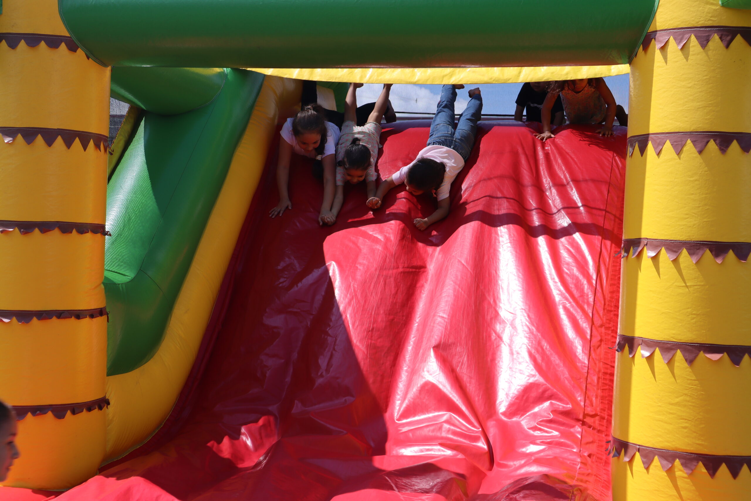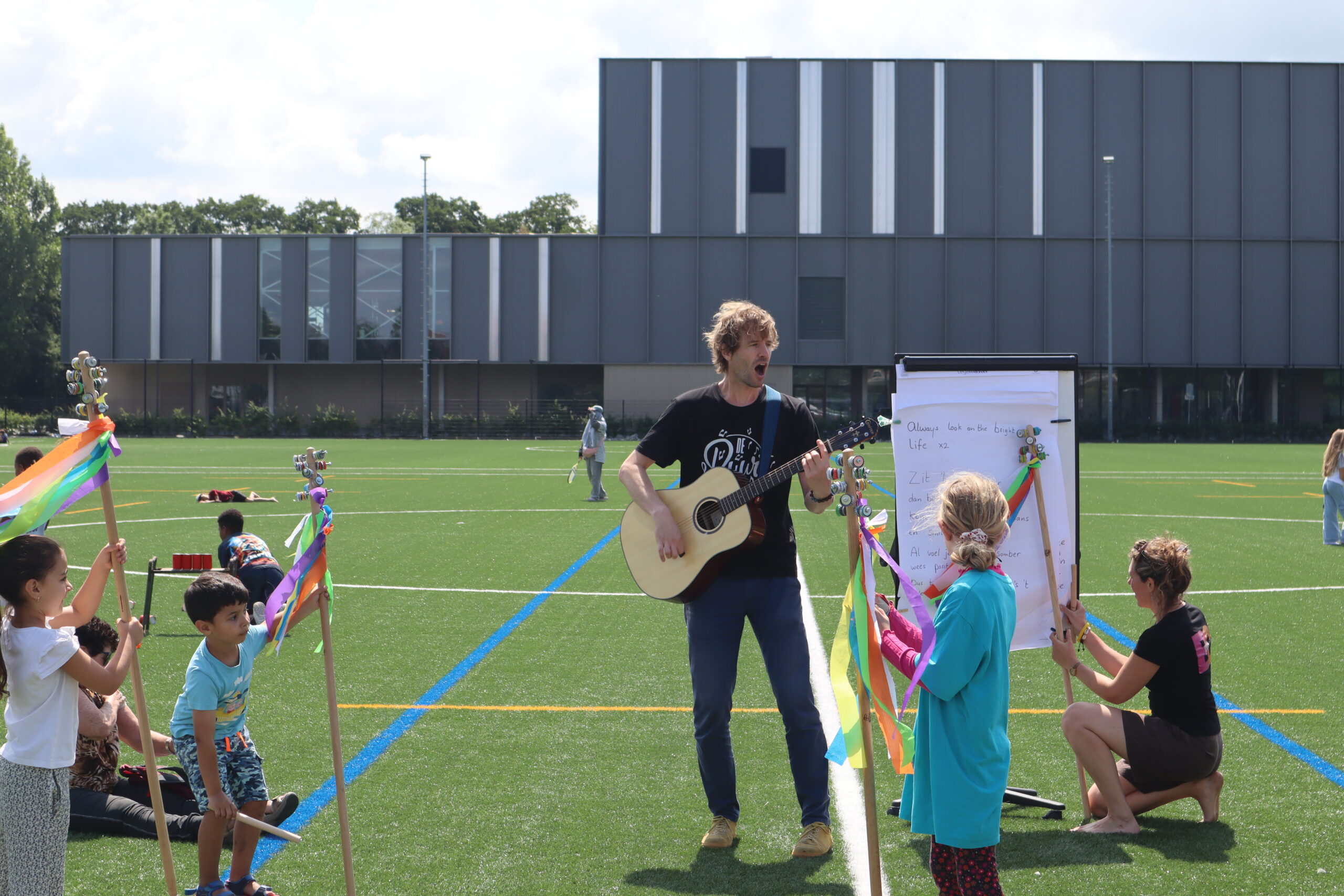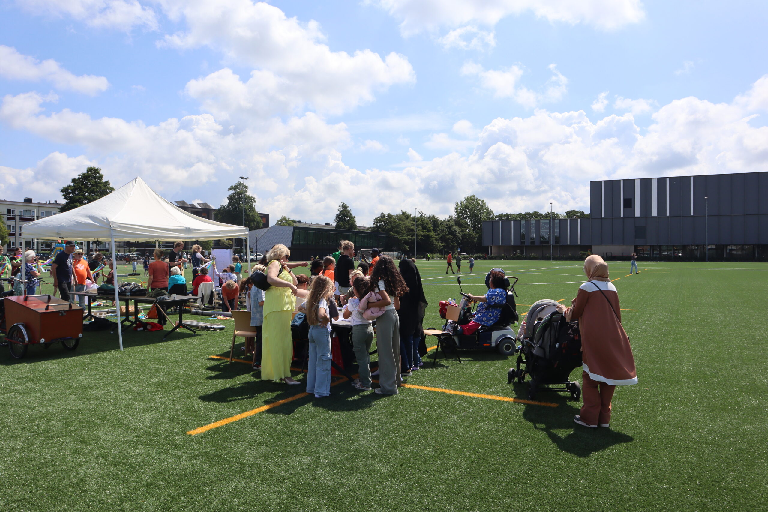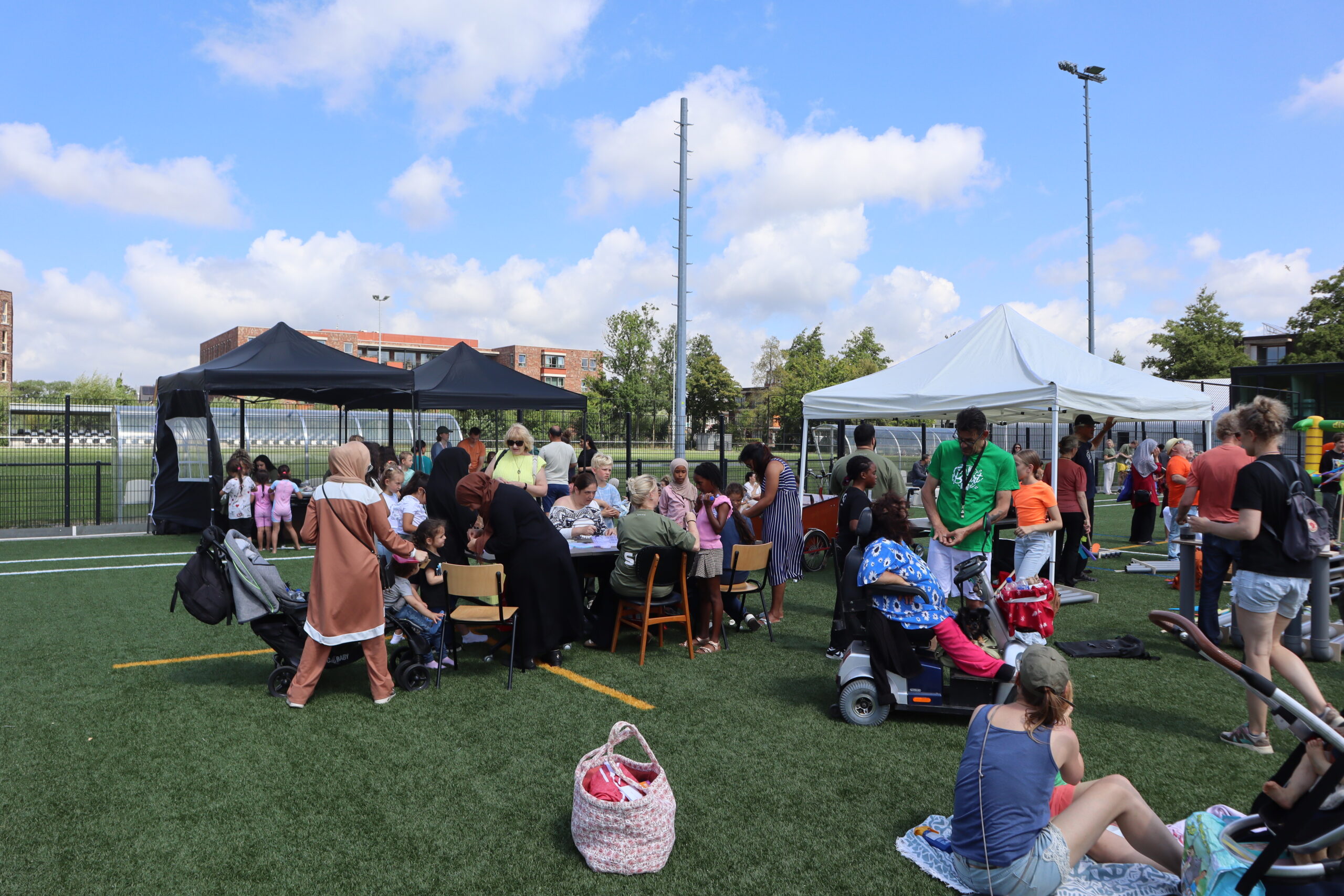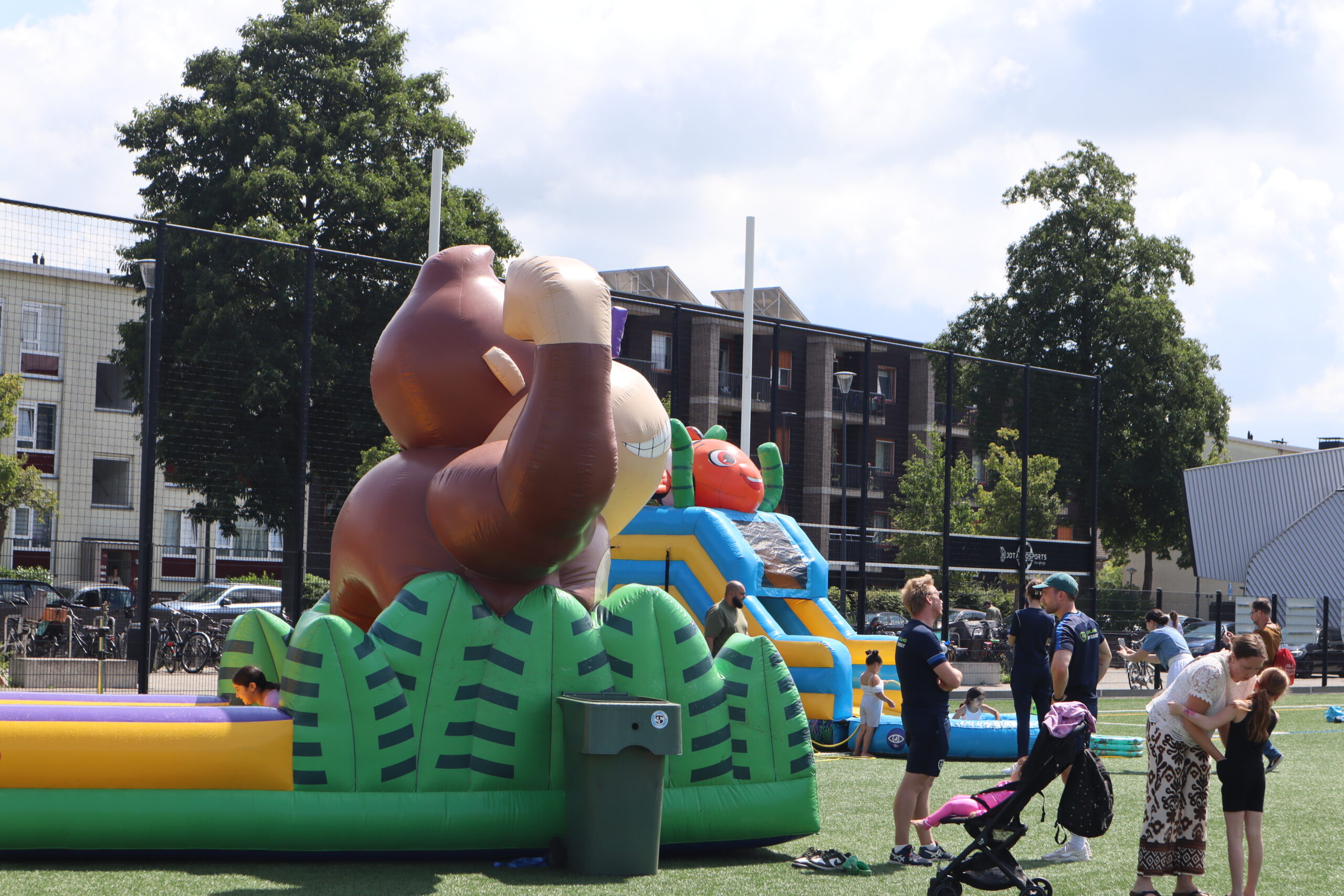Kinderen in zwembroeken en bikini’s rennen over het veld, van de ene activiteit naar de andere. Ook is de Buurtband aanwezig, en kinderen die dat willen, mogen een deuntje meespelen. Vooral de wateractiviteiten zijn een succes. “Dit is een hele goede manier om activiteiten voor het hele gezin te organiseren”, zegt Jeugd- en Jongerenmakelaar Geraldo Lindenberg.