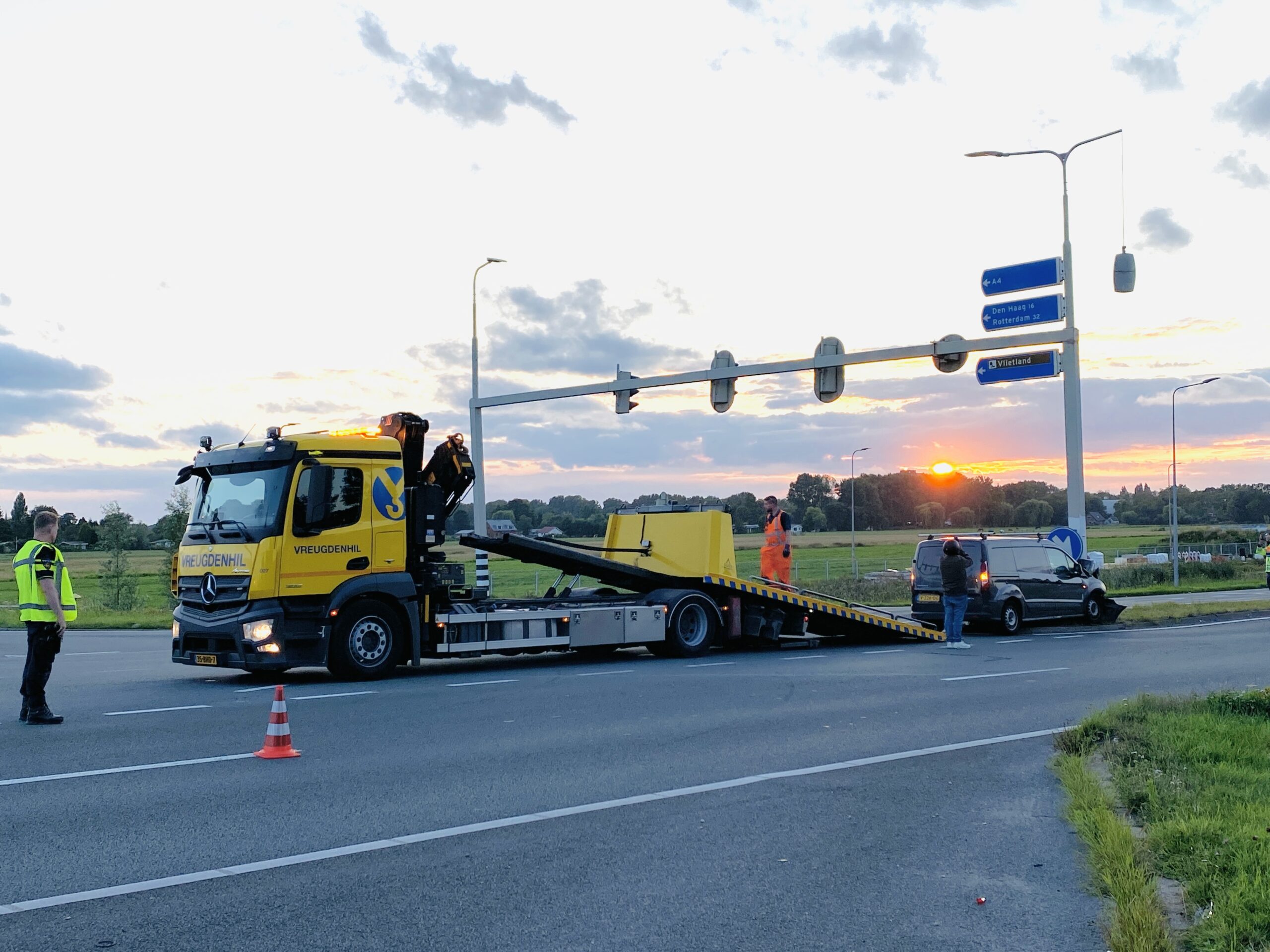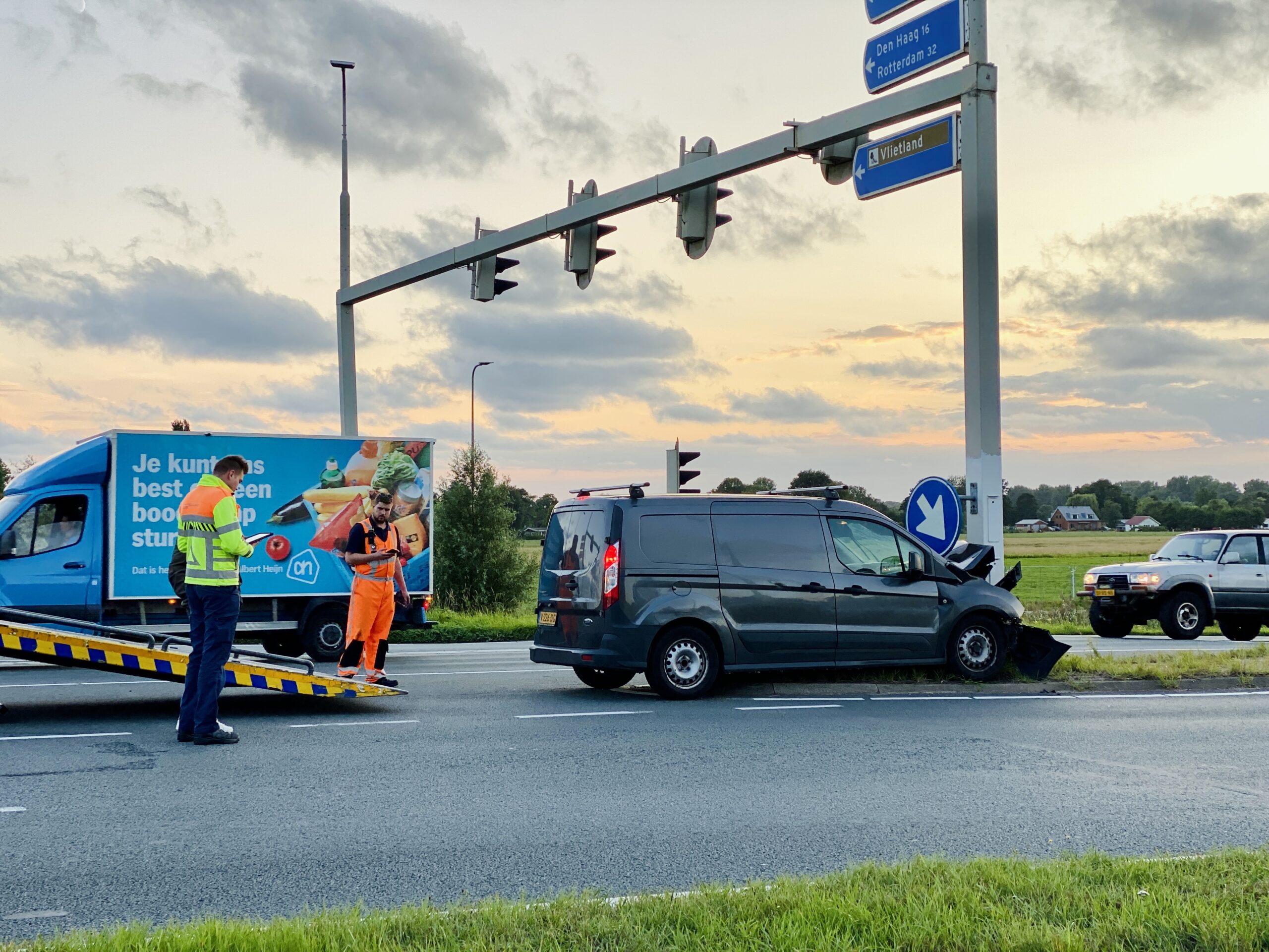 Door nog onbekende oorzaak heeft de bestuurder van een bestelbusje maandagavond een verkeerspaal geramd op de Europaweg N206 bij Zoeterwoude-Dorp. Op de kruising met de Hofvlietweg reed de bestuurder tegen de paal aan. Hij raakte bewond en is overgebracht naar het ziekenhuis.