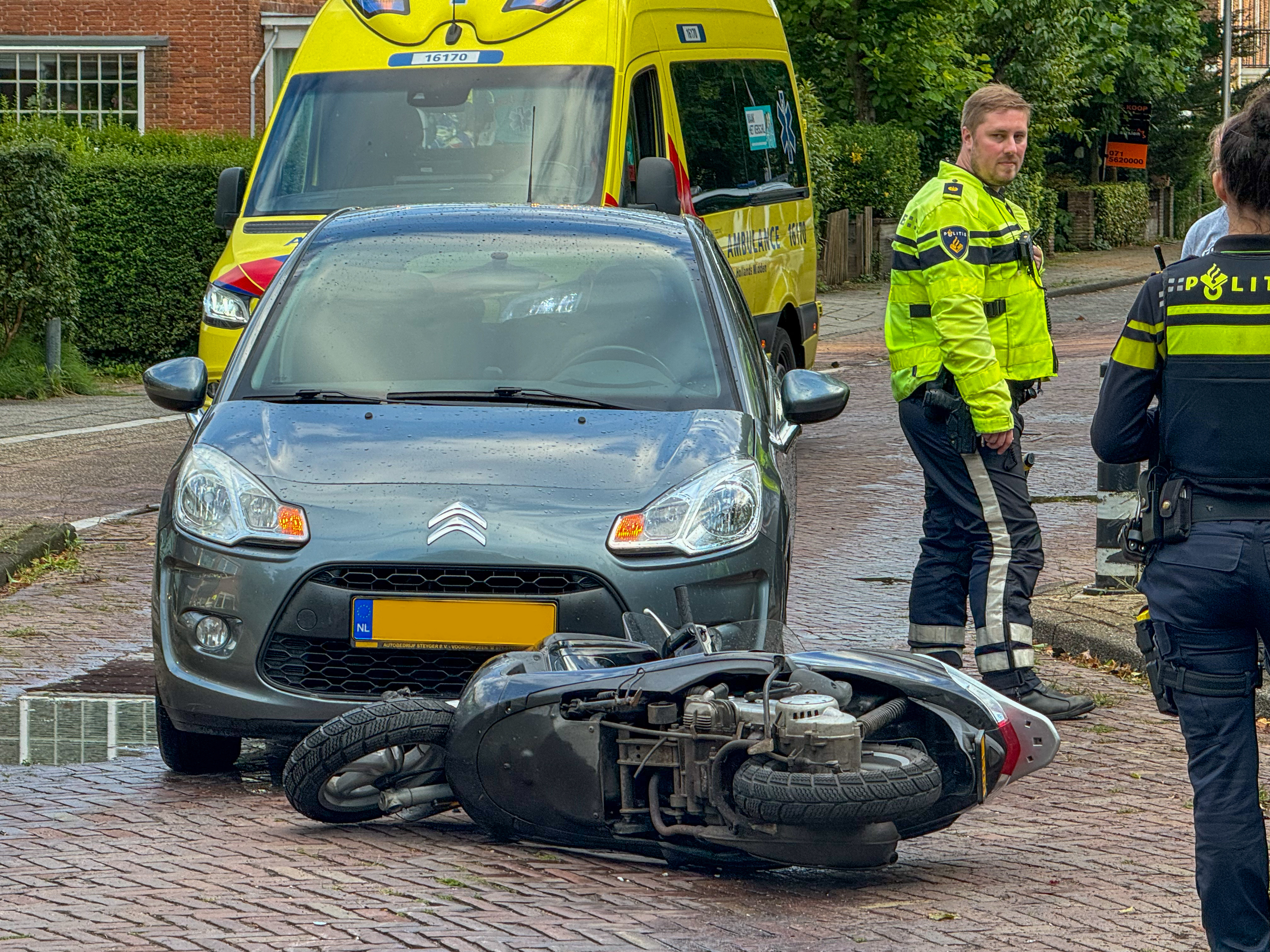 De bestuurder van een scooter is dinsdagavond gewond geraakt toen hij in botsing kwam met een personenauto. Op de Prins Bernhardlaan in Voorschoten botsten beide voertuigen op elkaar. De bestuurder van de scooter is door ambulancepersoneel nagekeken en daarna naar het ziekenhuis gebracht.